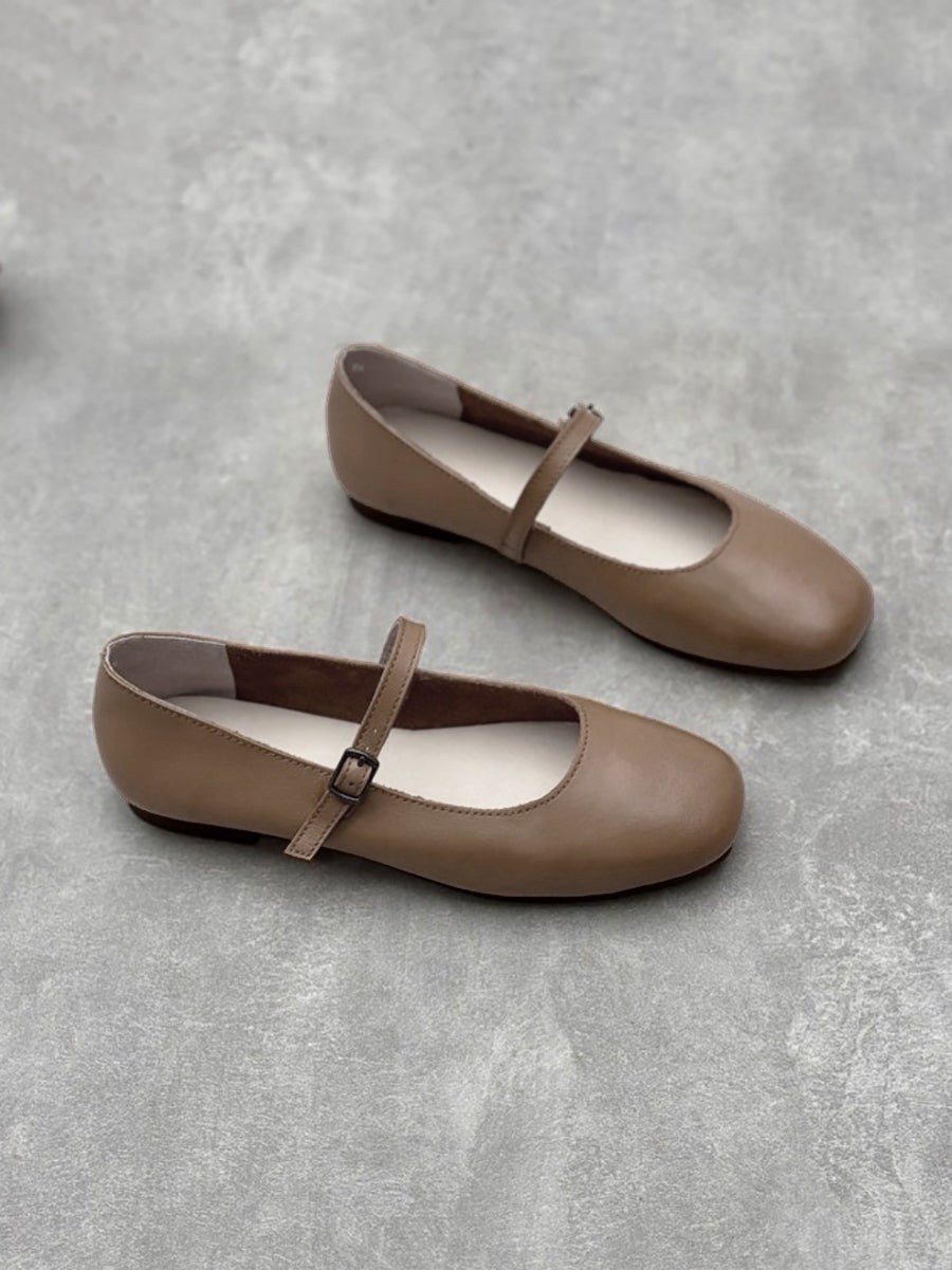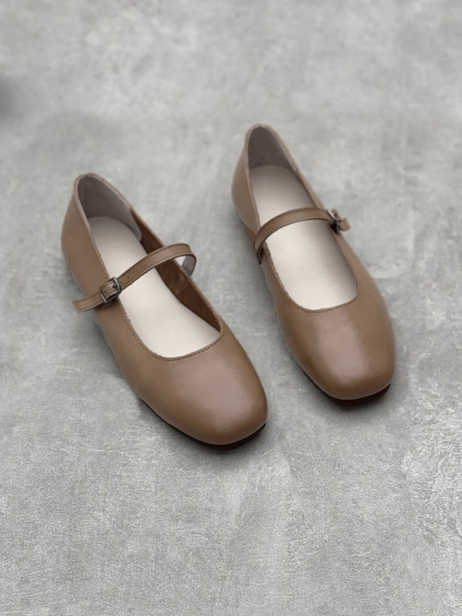 Women Elegant Solid Leather Low Heel Mary Jane Shoes