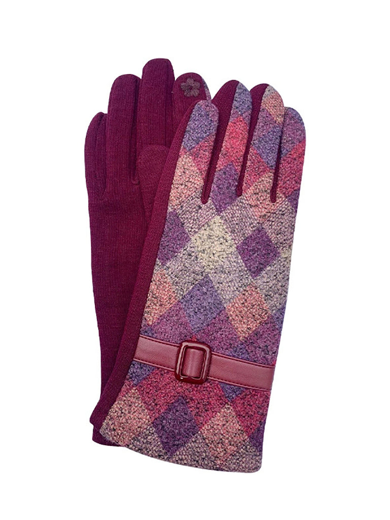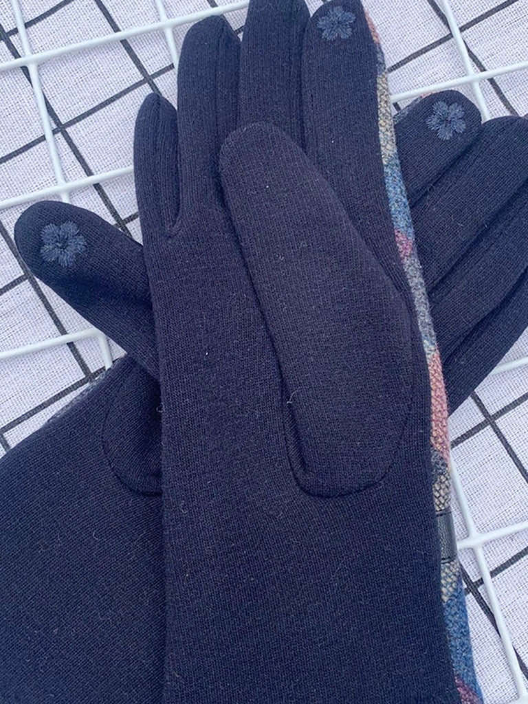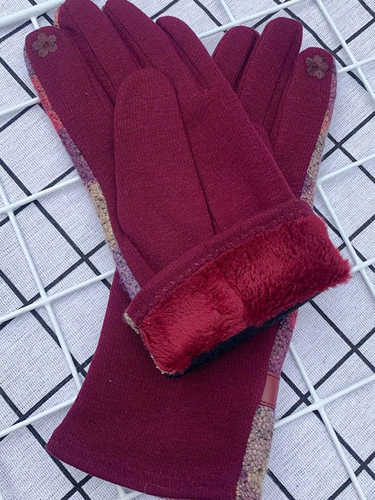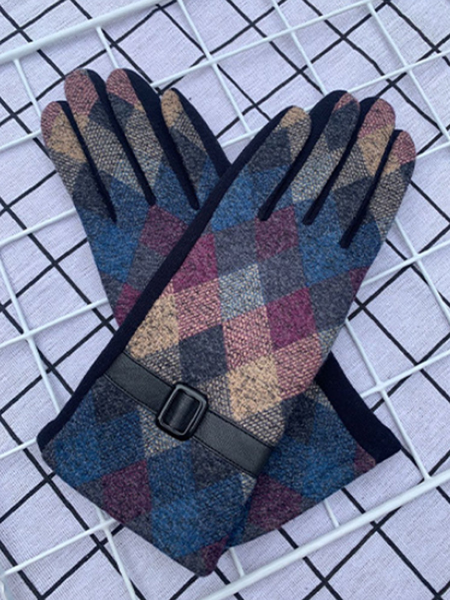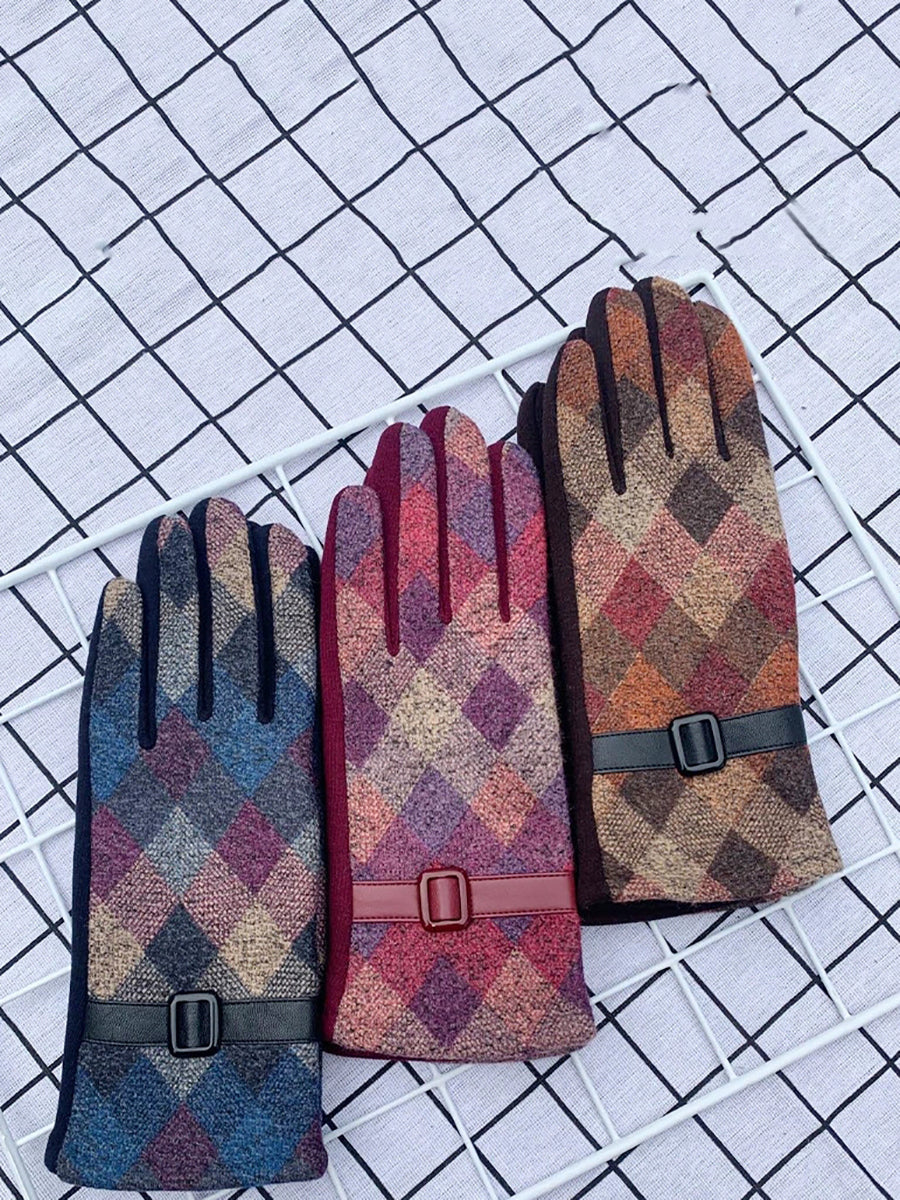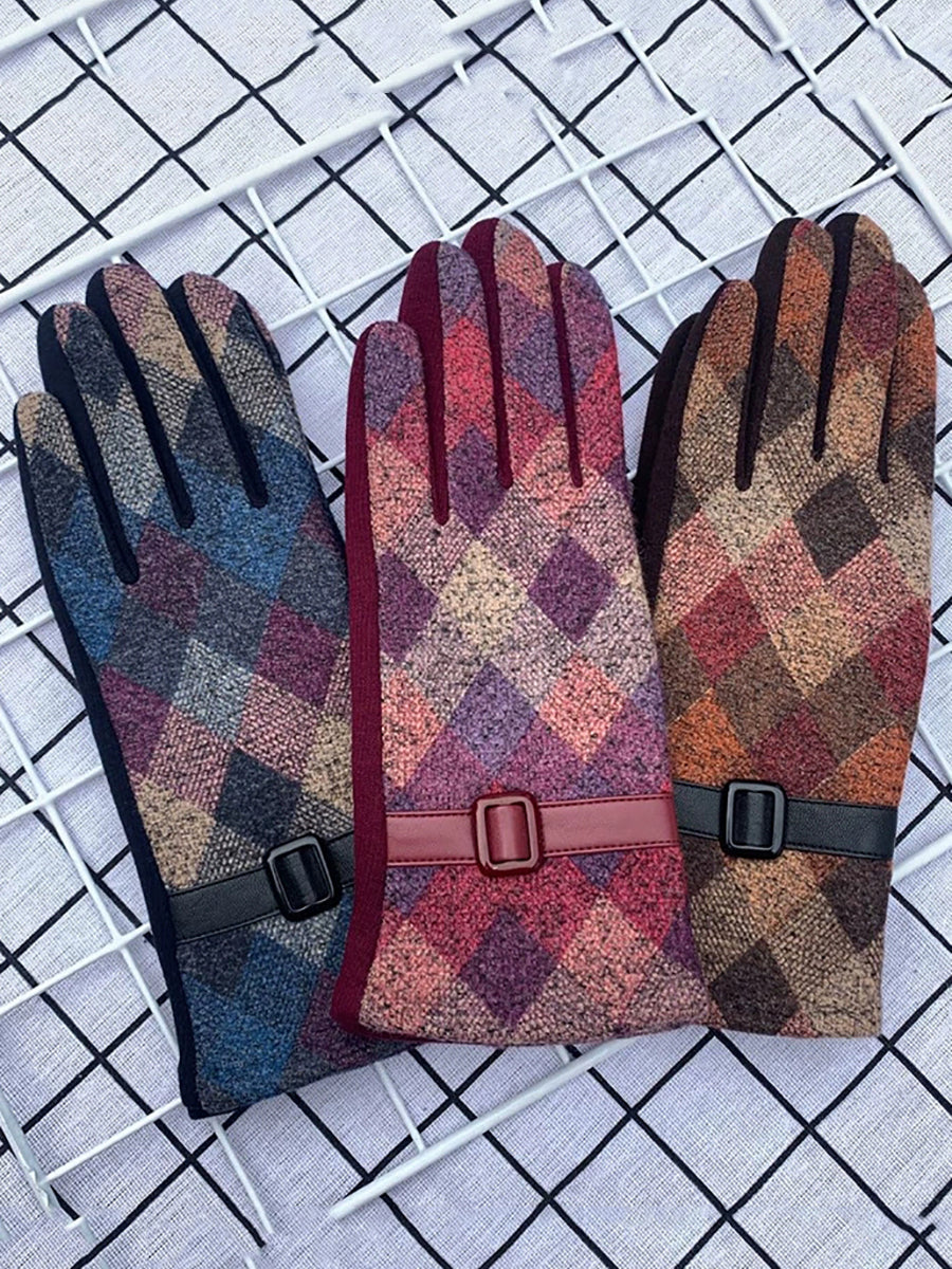Women Ethnic Plaid Warm Cycling Gloves
