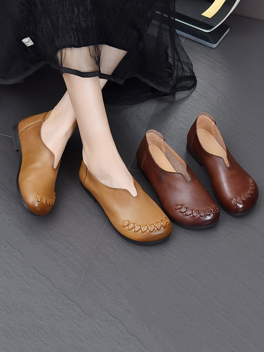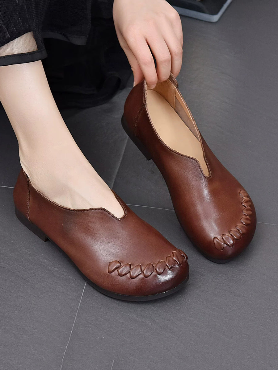 Women Genuine Leather Versatile Low Heel Shoes