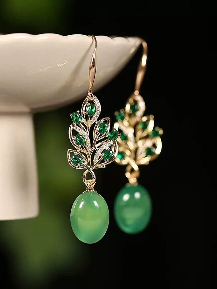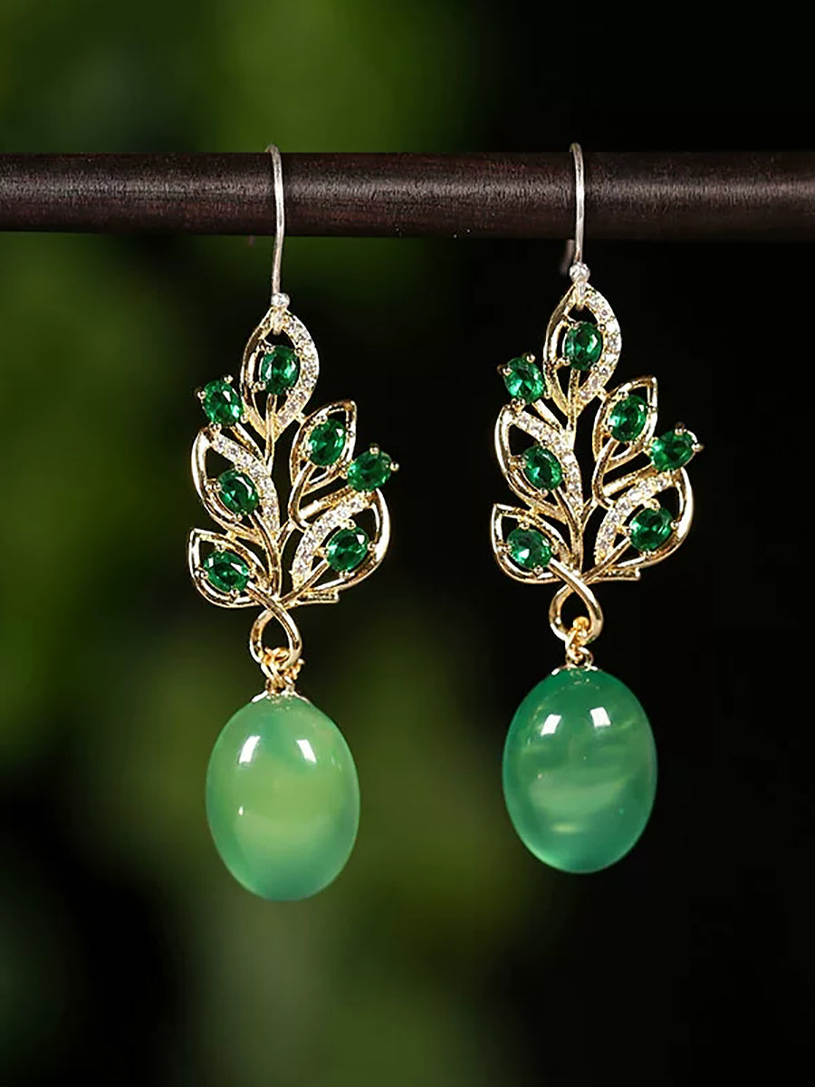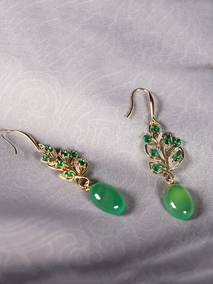 Women Green Agate S925Silver Earrings