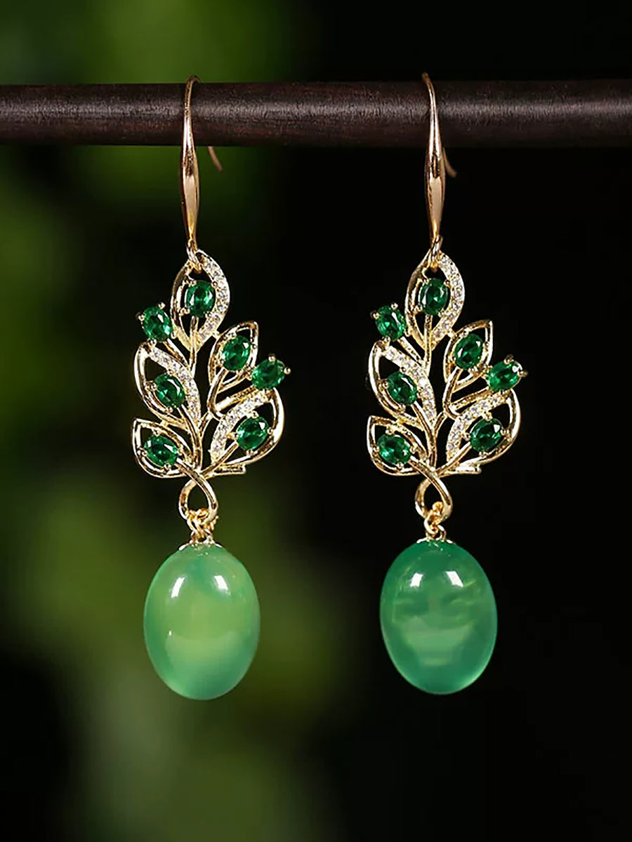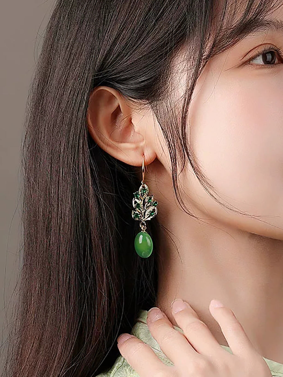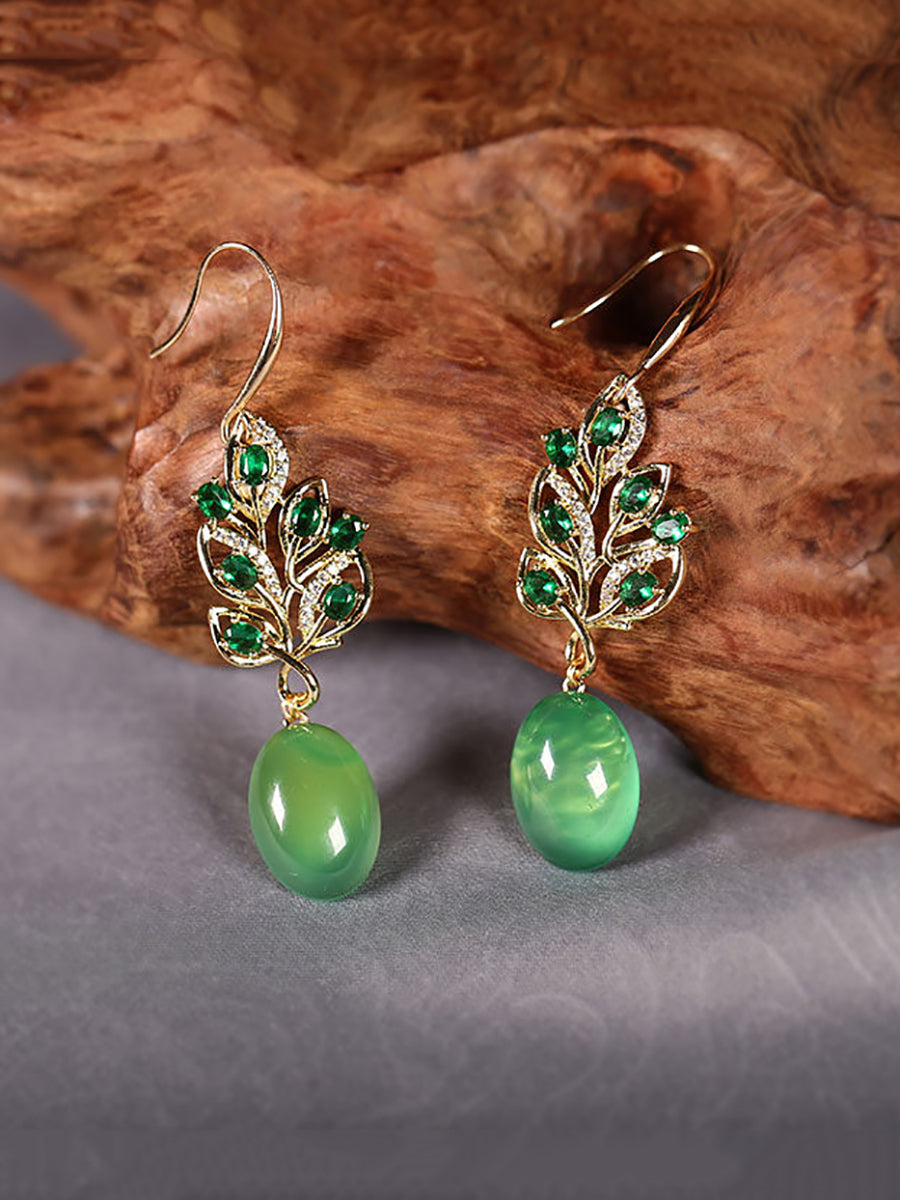 Women Green Agate S925Silver Earrings