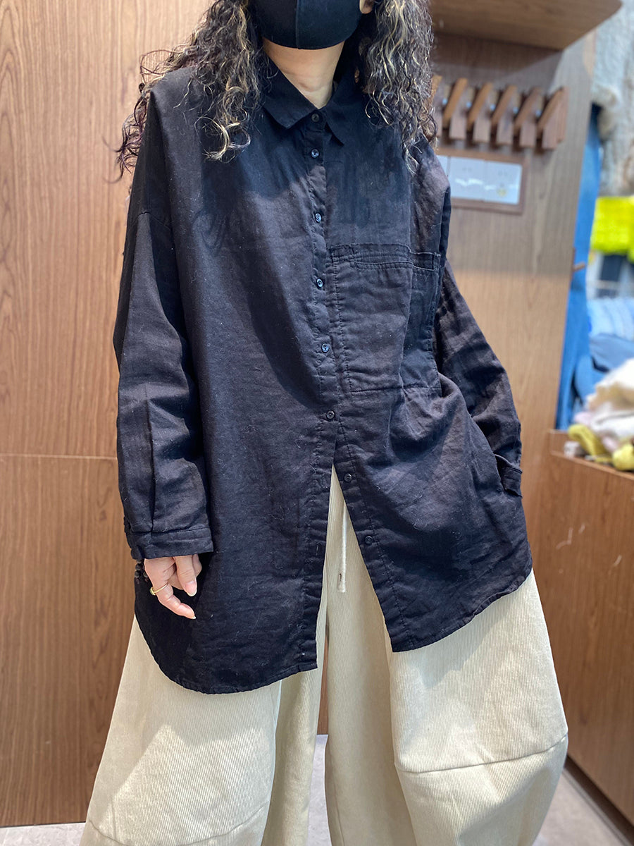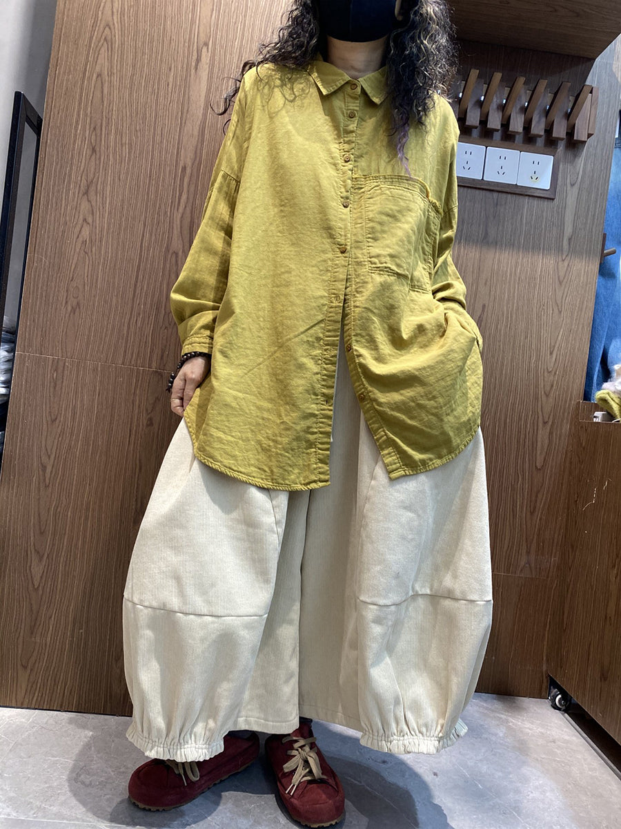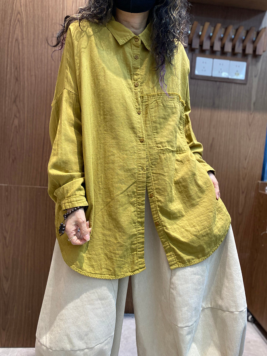 Women Spring Artsy Pure Color Turn-down Collar Shirt