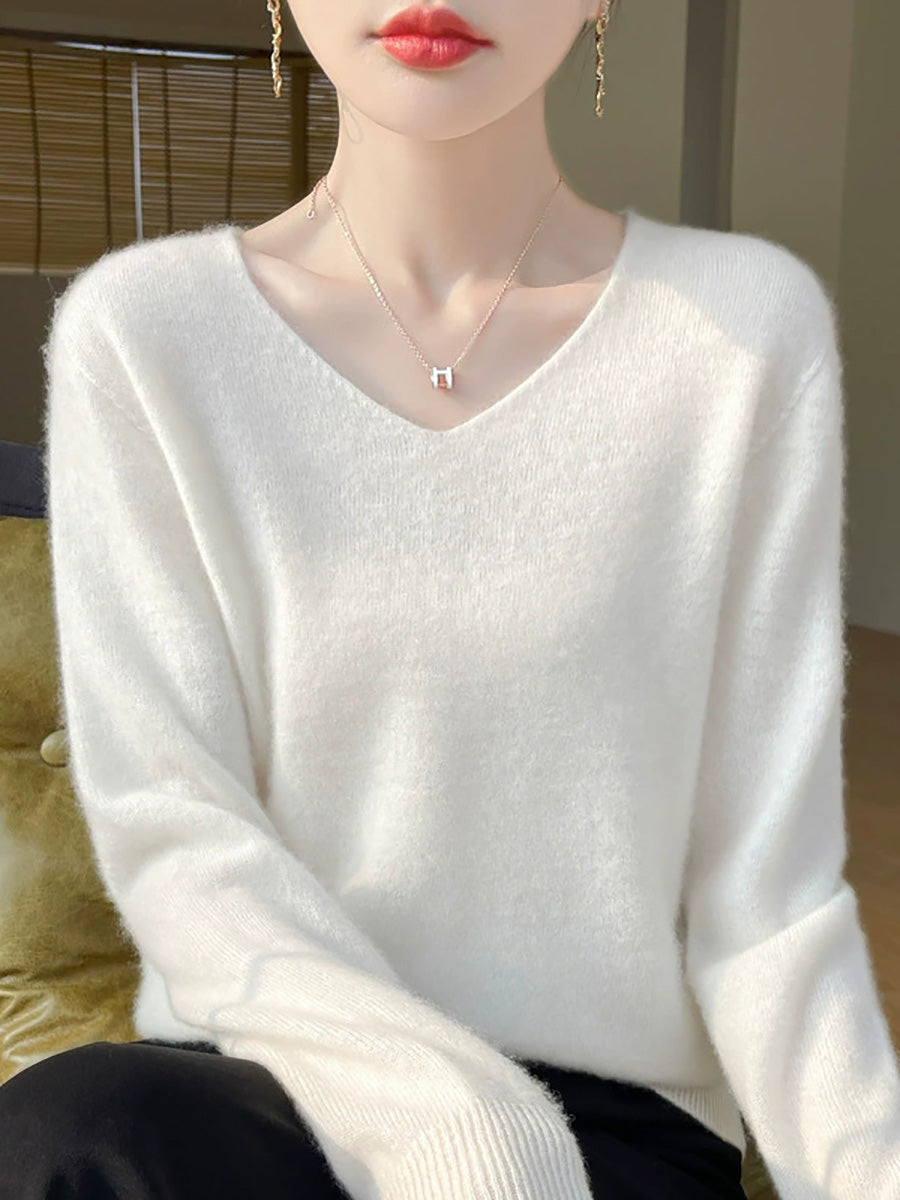 Women Spring Artsy Pure Color V-Neck Sweater