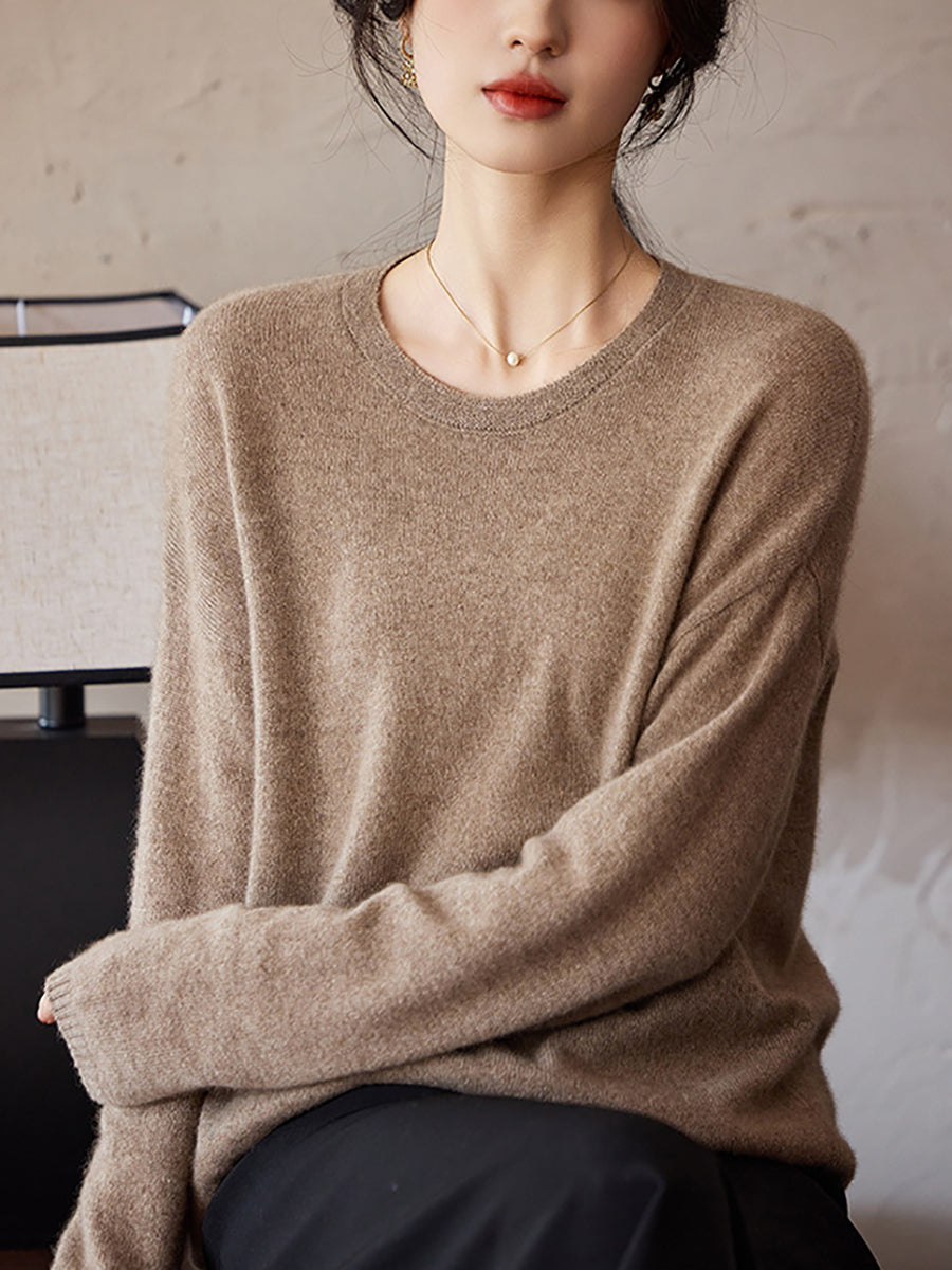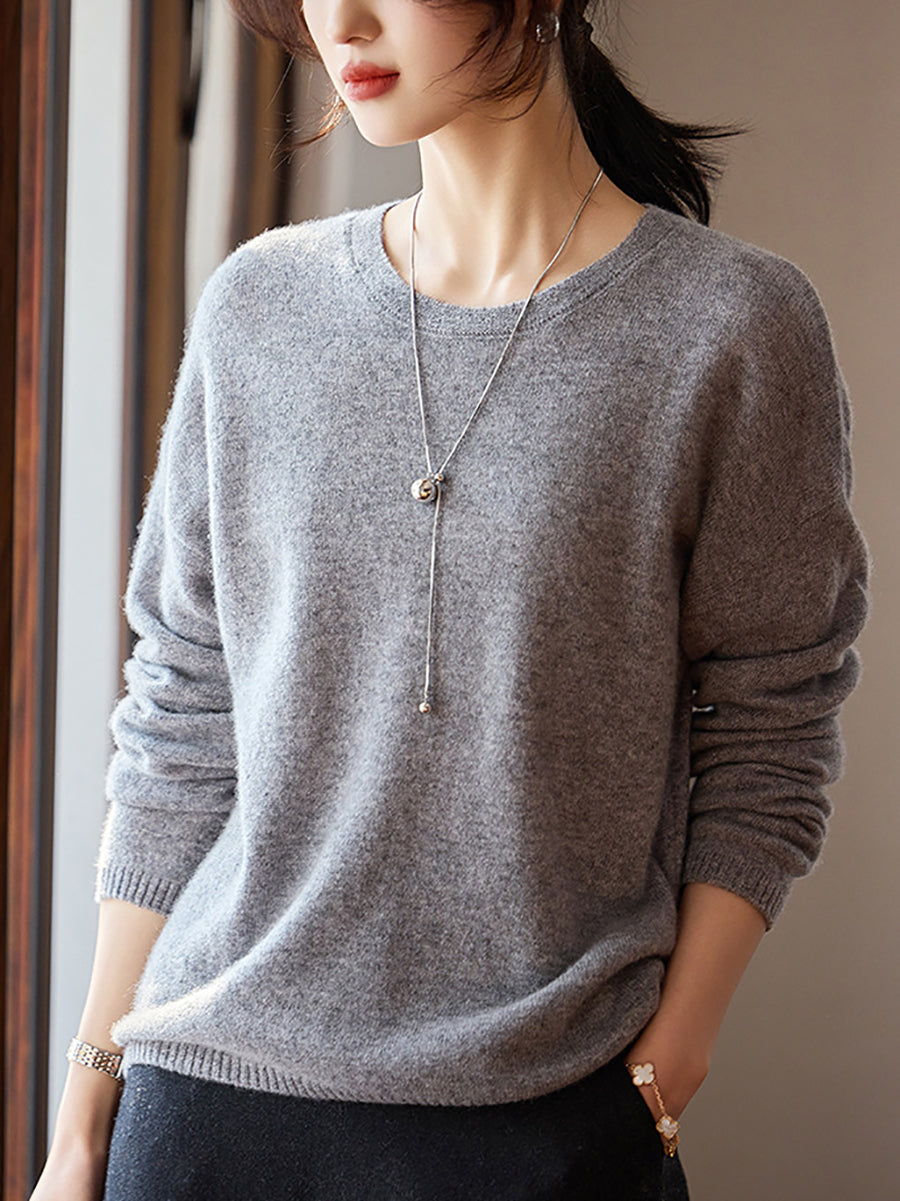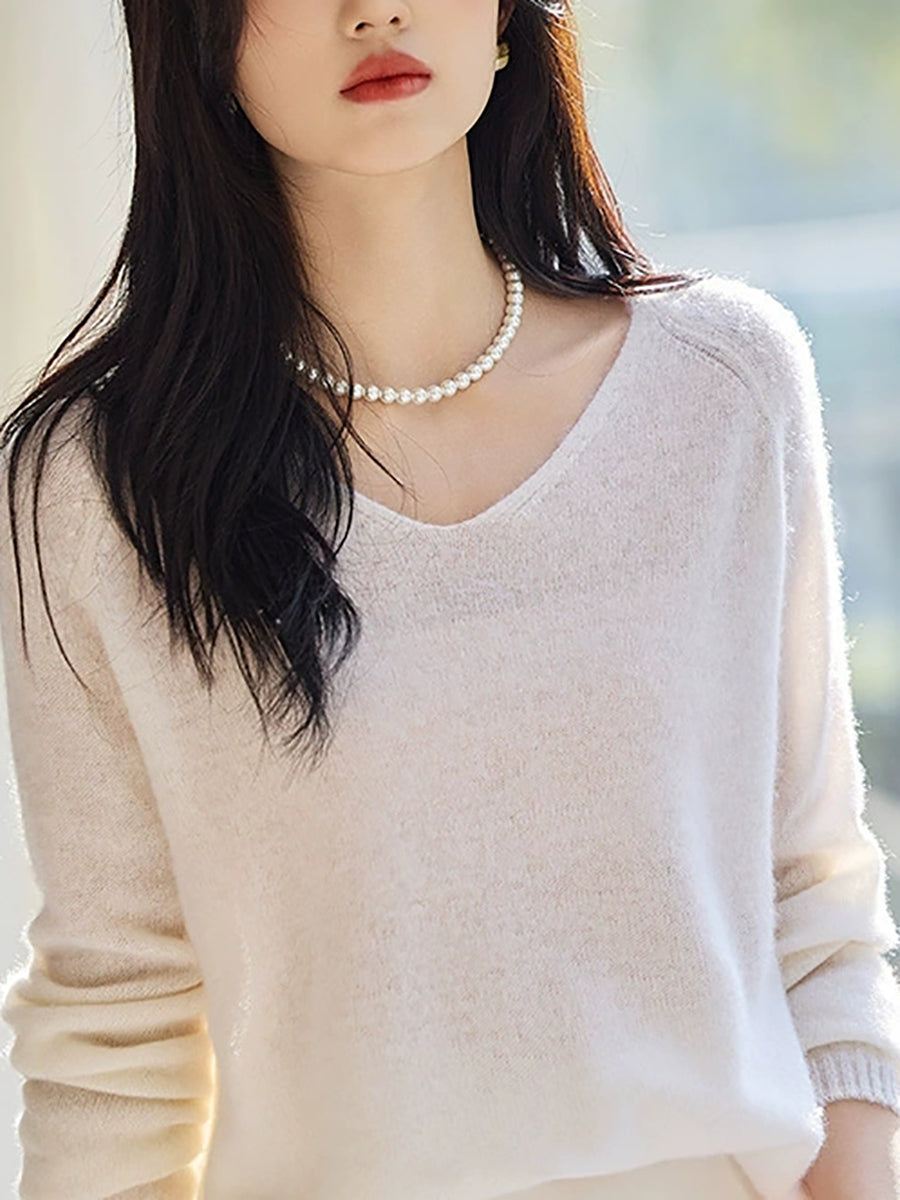 Women Spring Artsy Pure Color V-Neck Wool Sweater