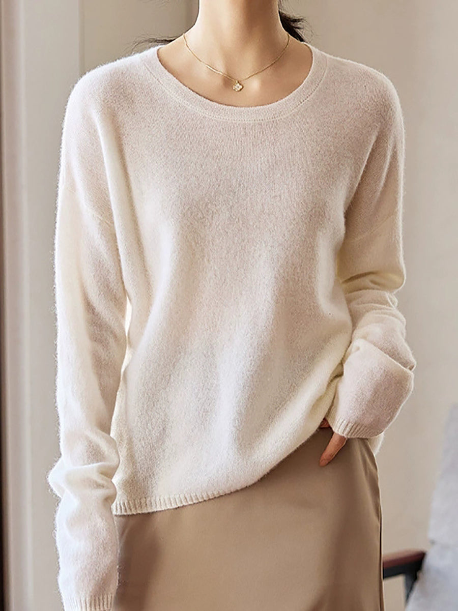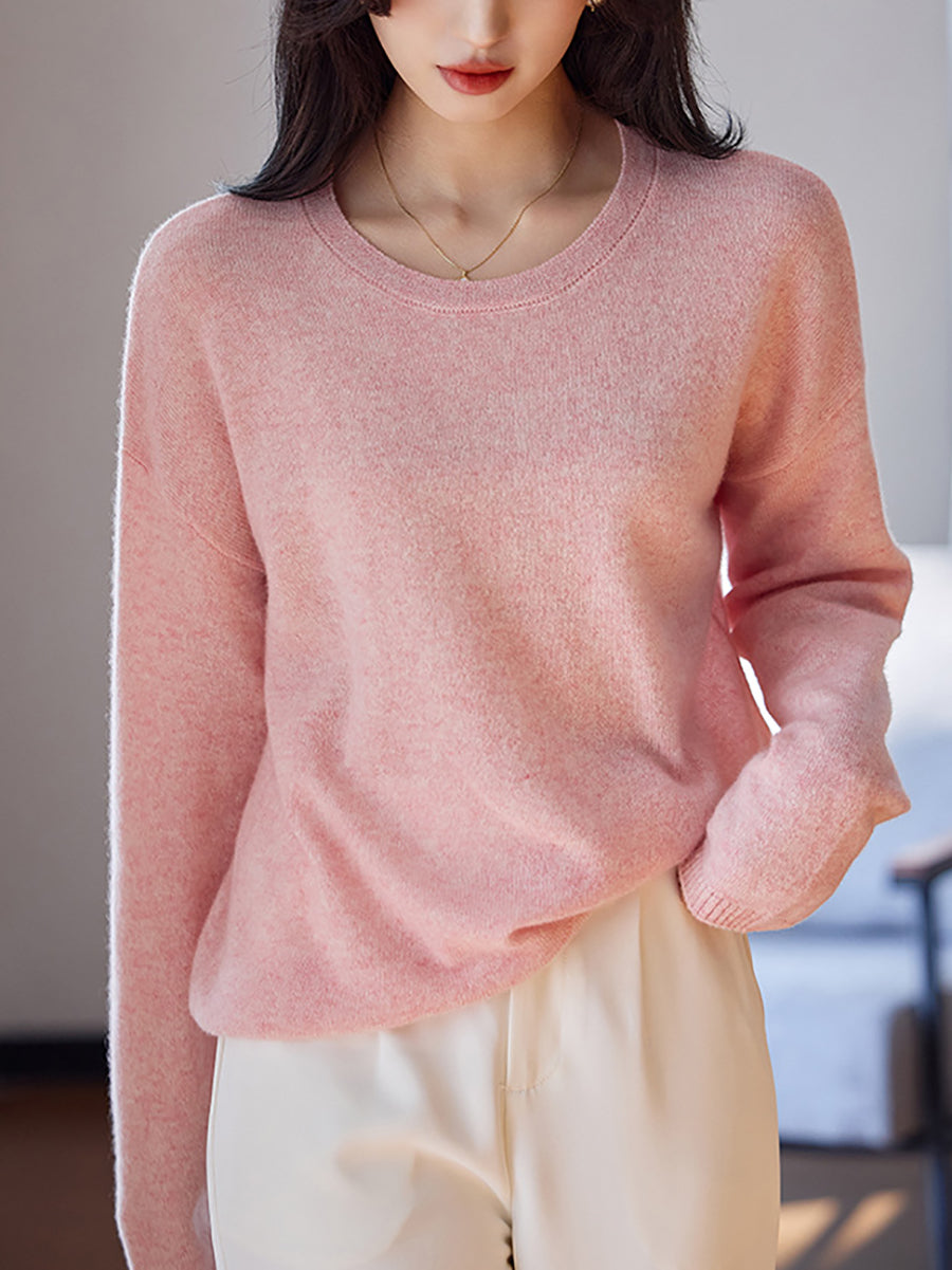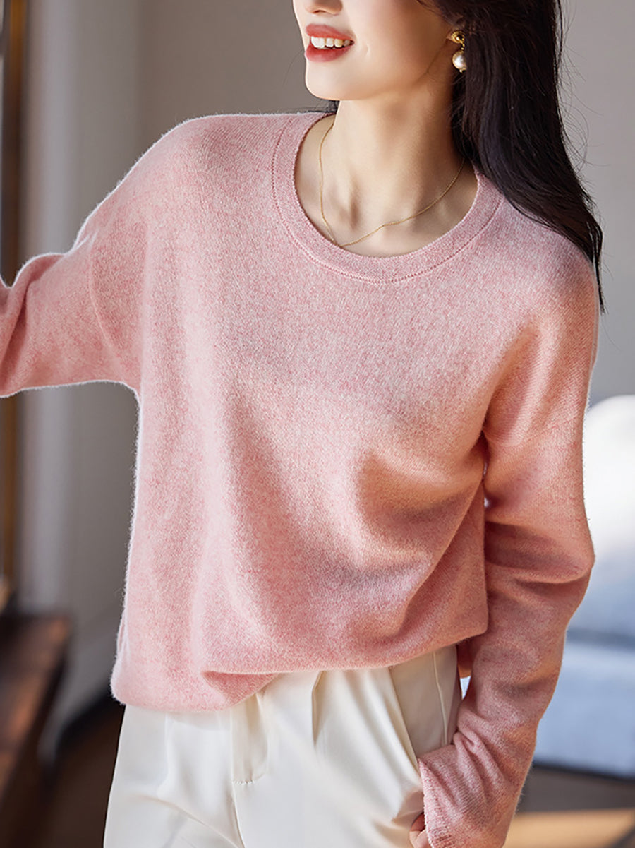 Women Spring Artsy Pure Color V-Neck Wool Sweater