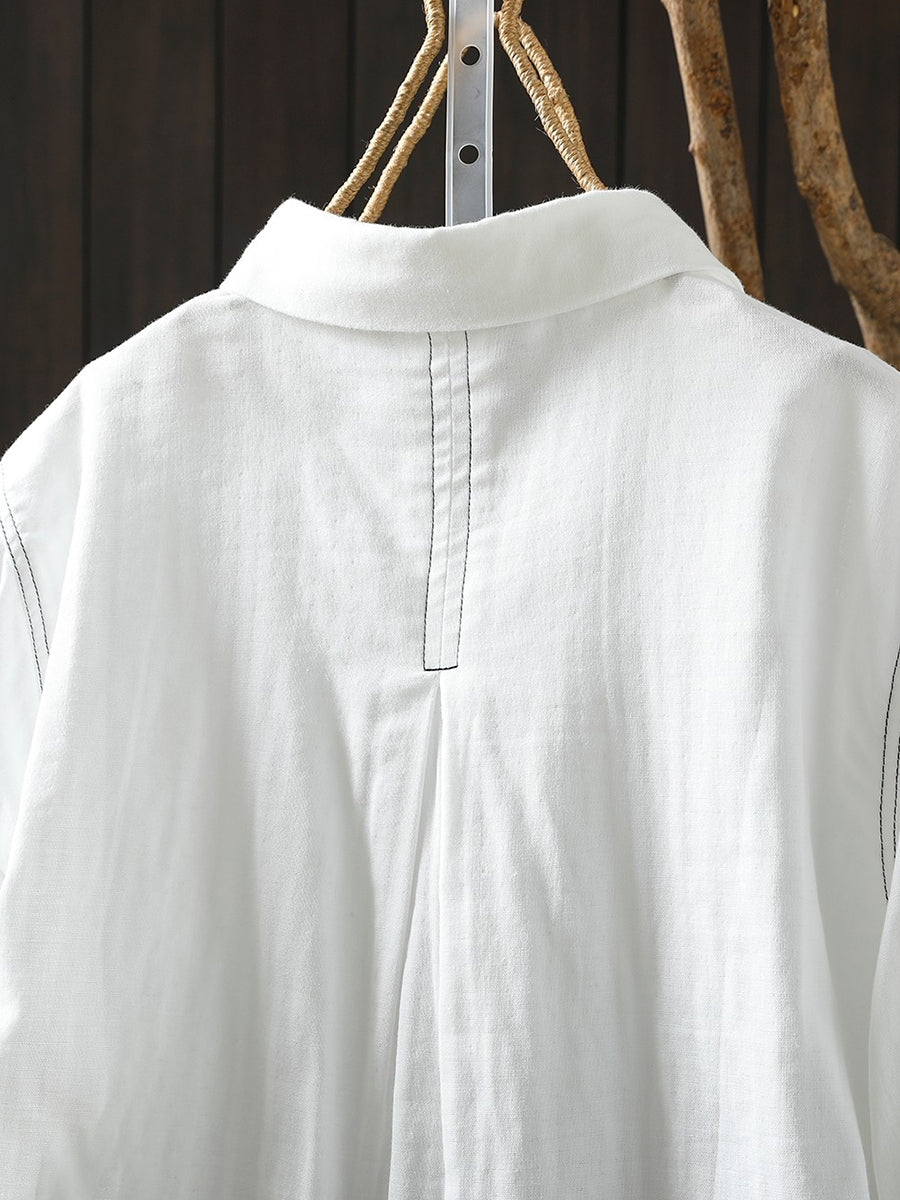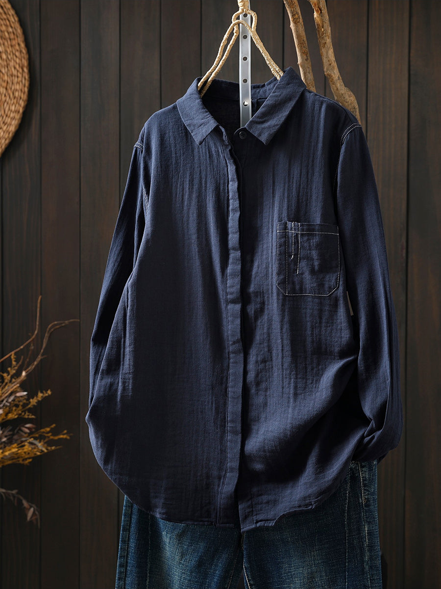 Women Spring Casual Pure Color 100%Cotton Shirt