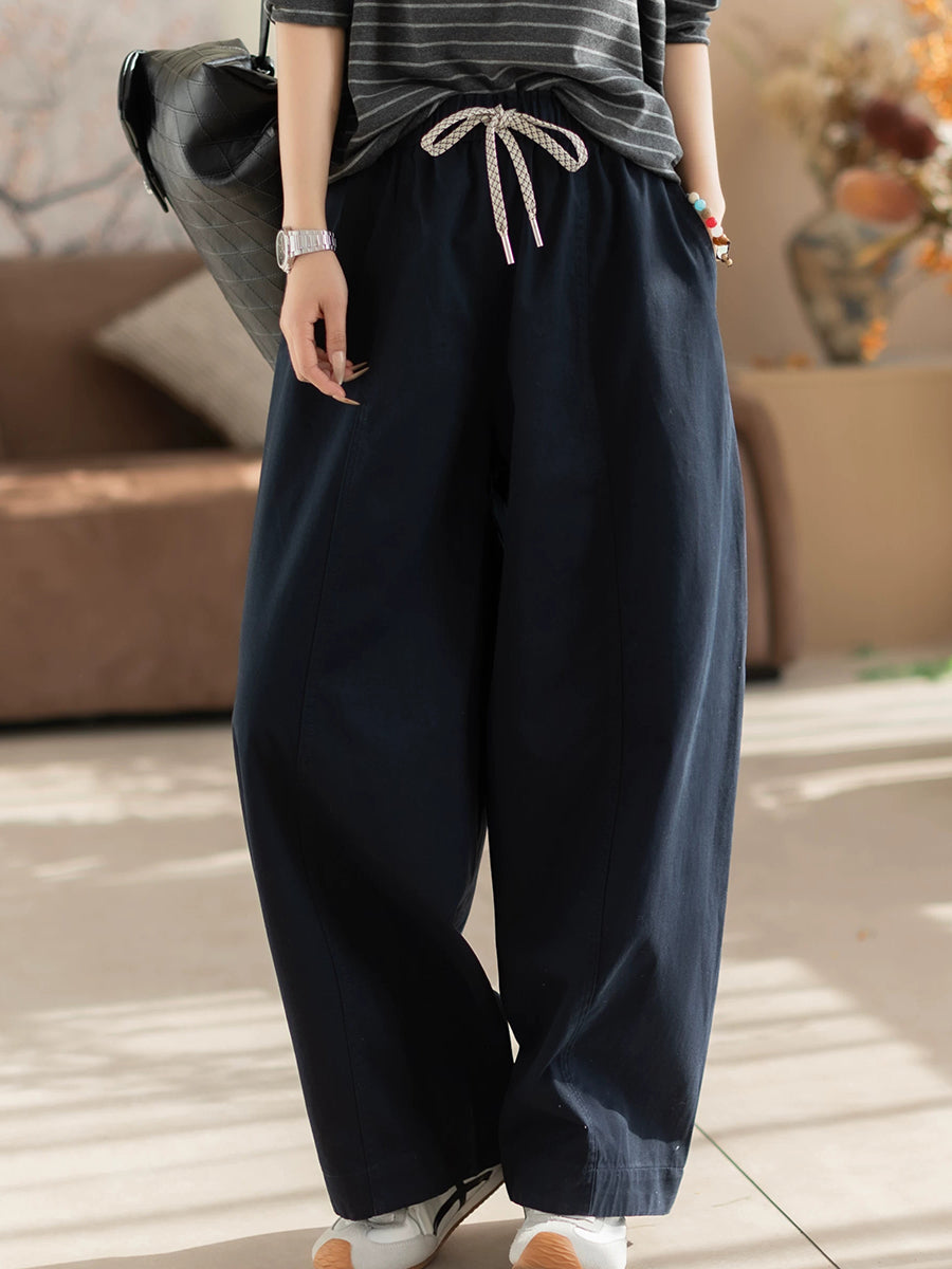 Women Spring Casual Pure Color 100%Cotton Straight Pants