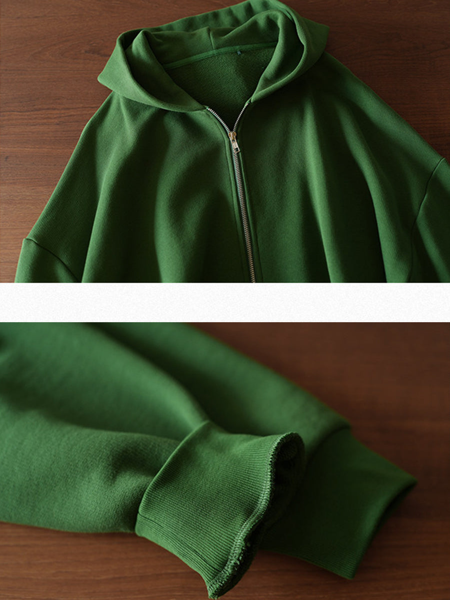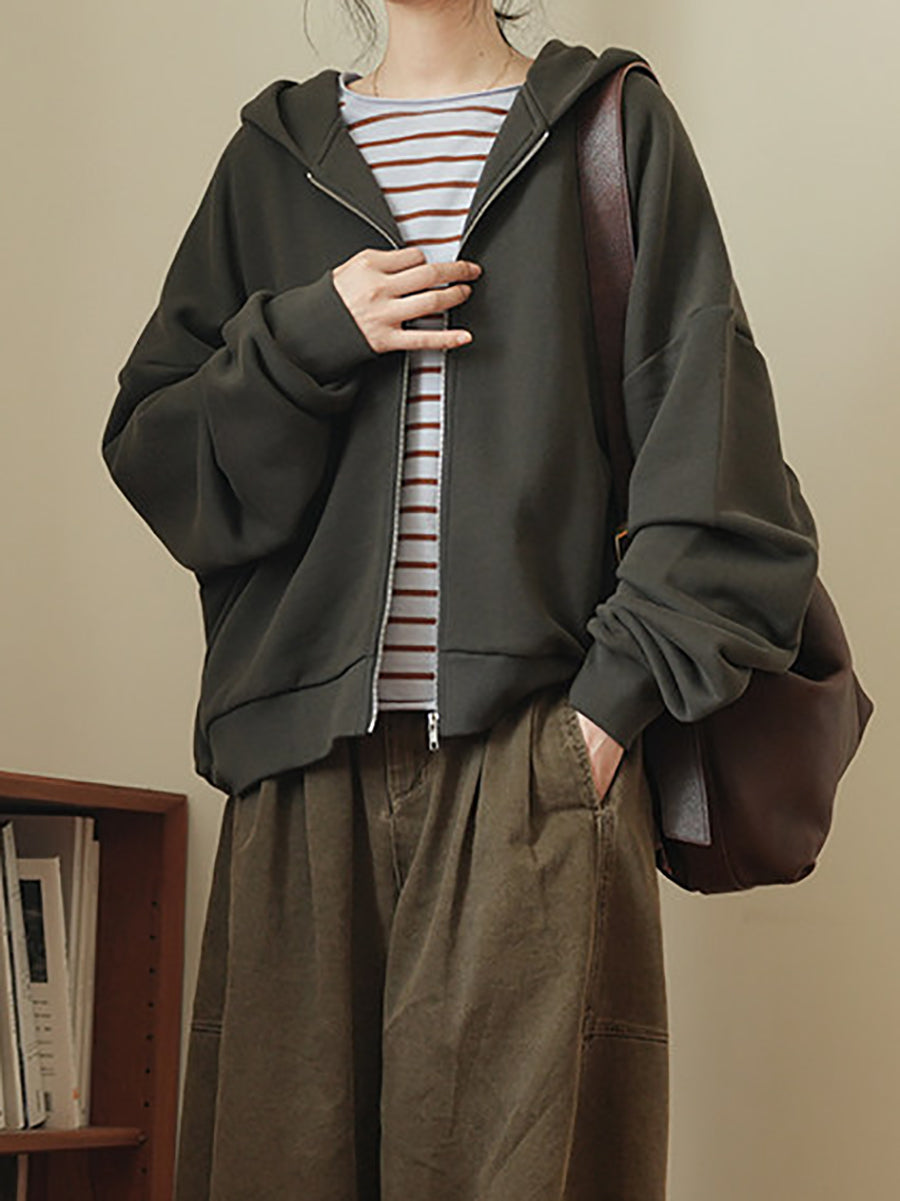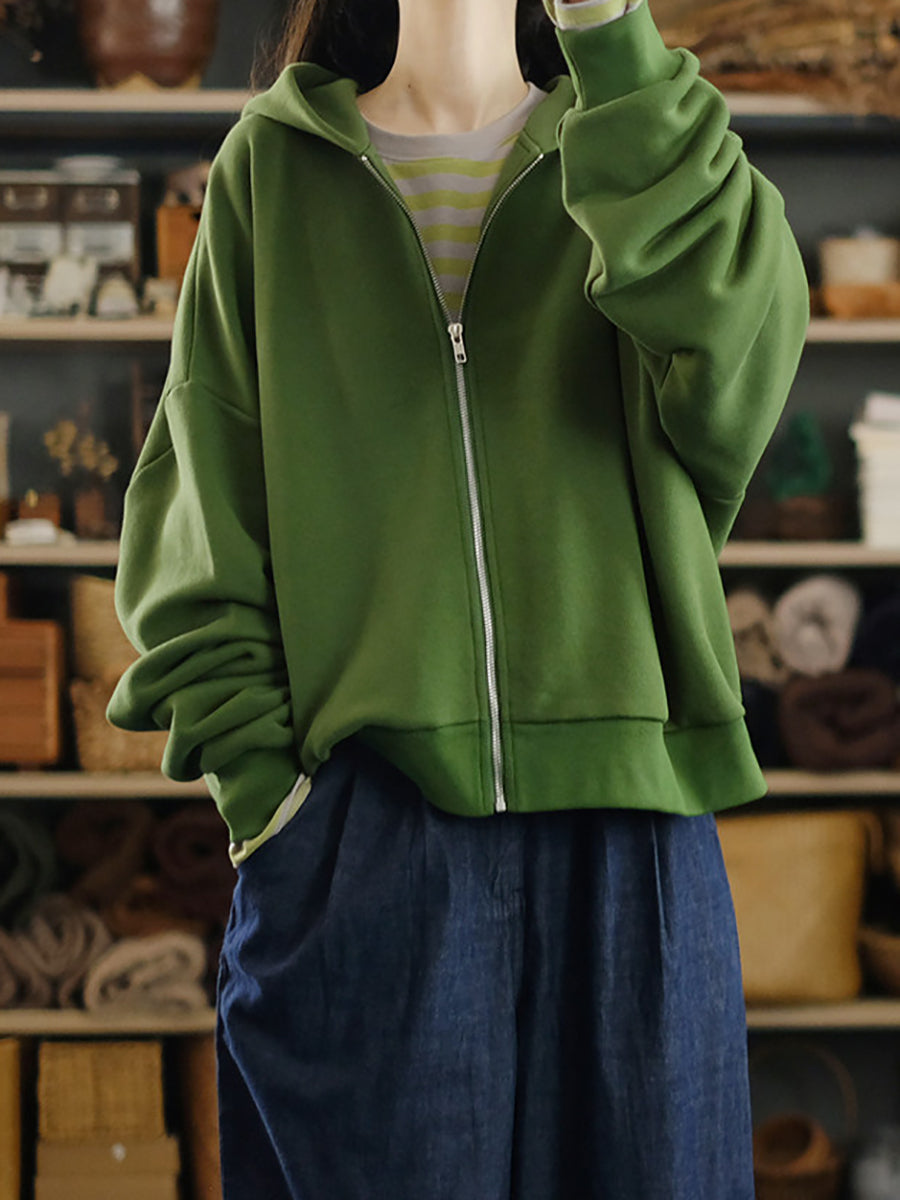 Women Spring Casual Pure Color Cotton Hooded Coat