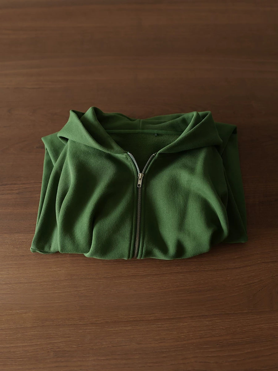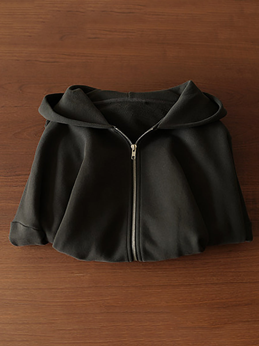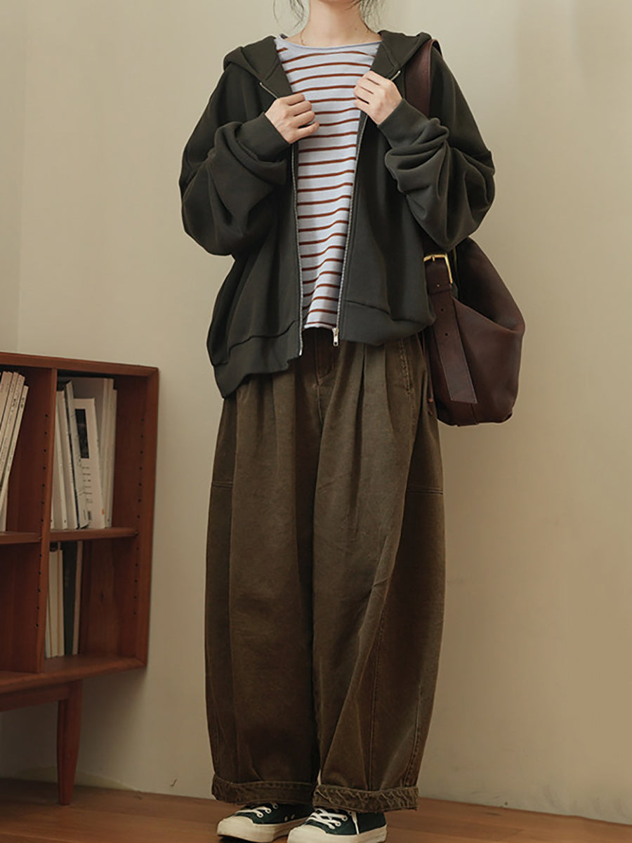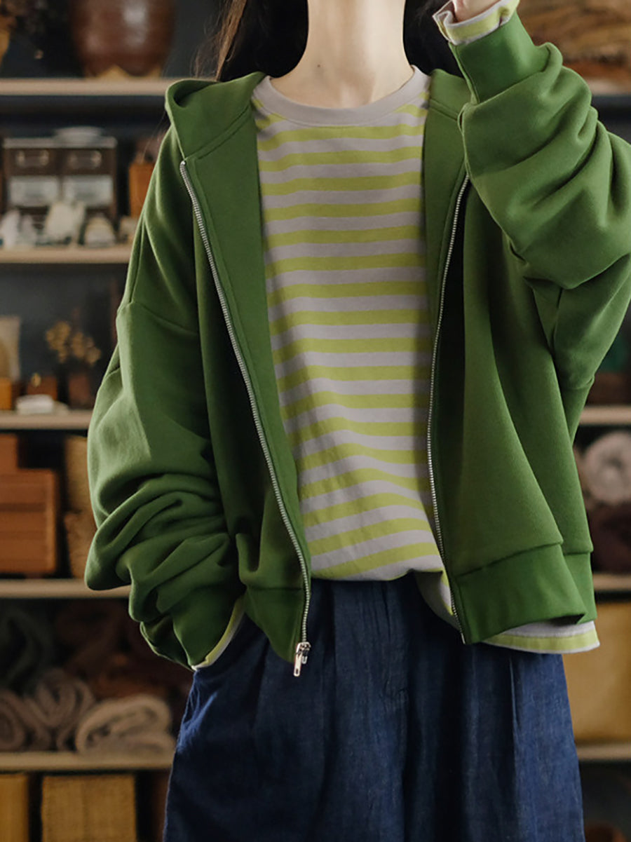 Women Spring Casual Pure Color Cotton Hooded Coat