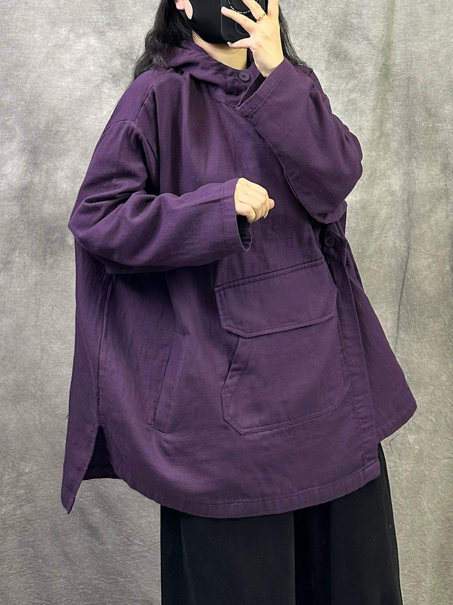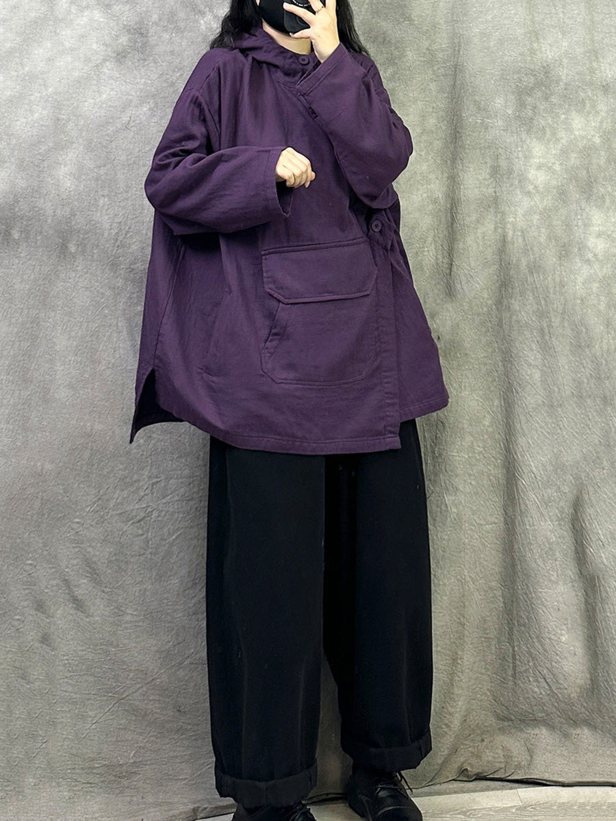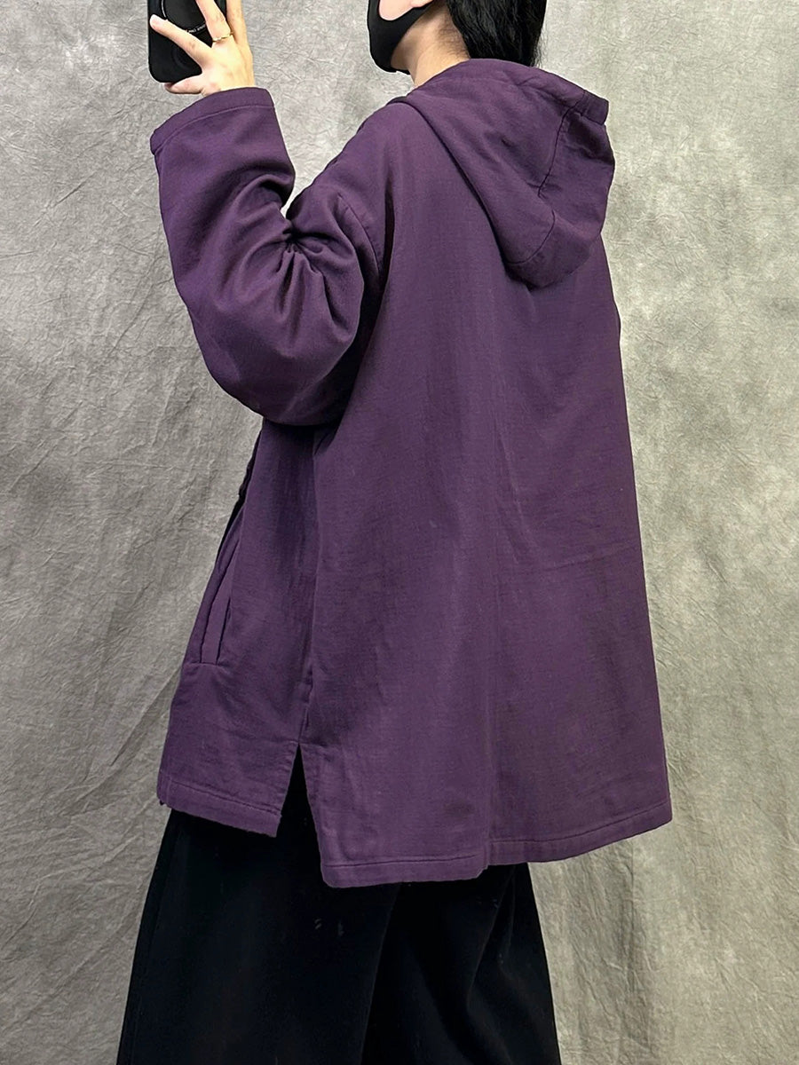Women Spring Casual Pure Color Cotton Hoodie