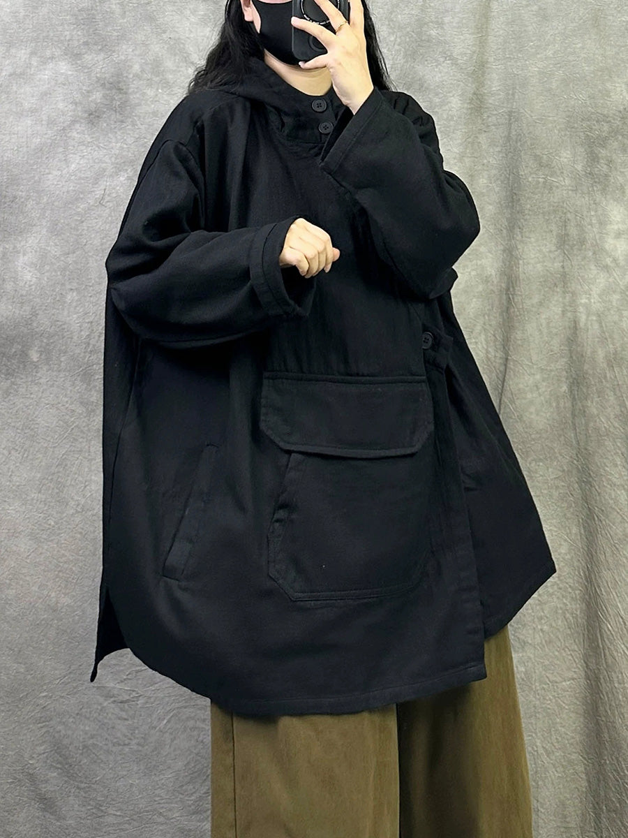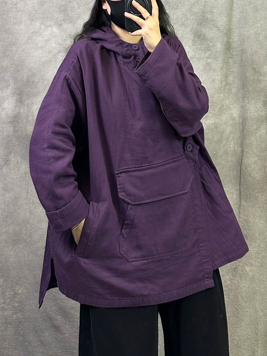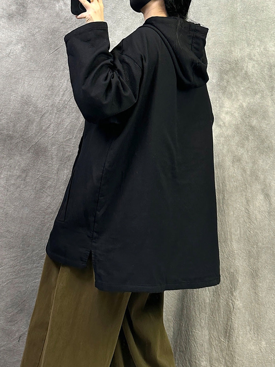 Women Spring Casual Pure Color Cotton Hoodie