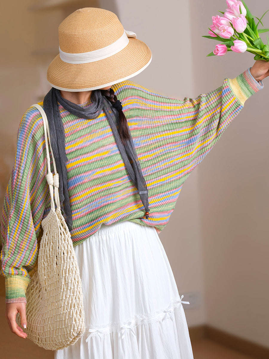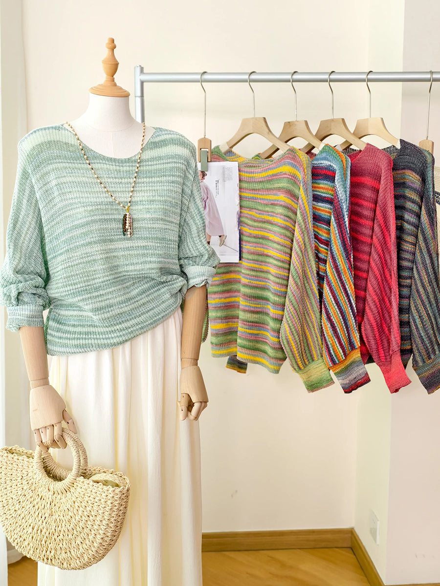 Women Spring Casual Stripe Knitted O-Neck Blouse