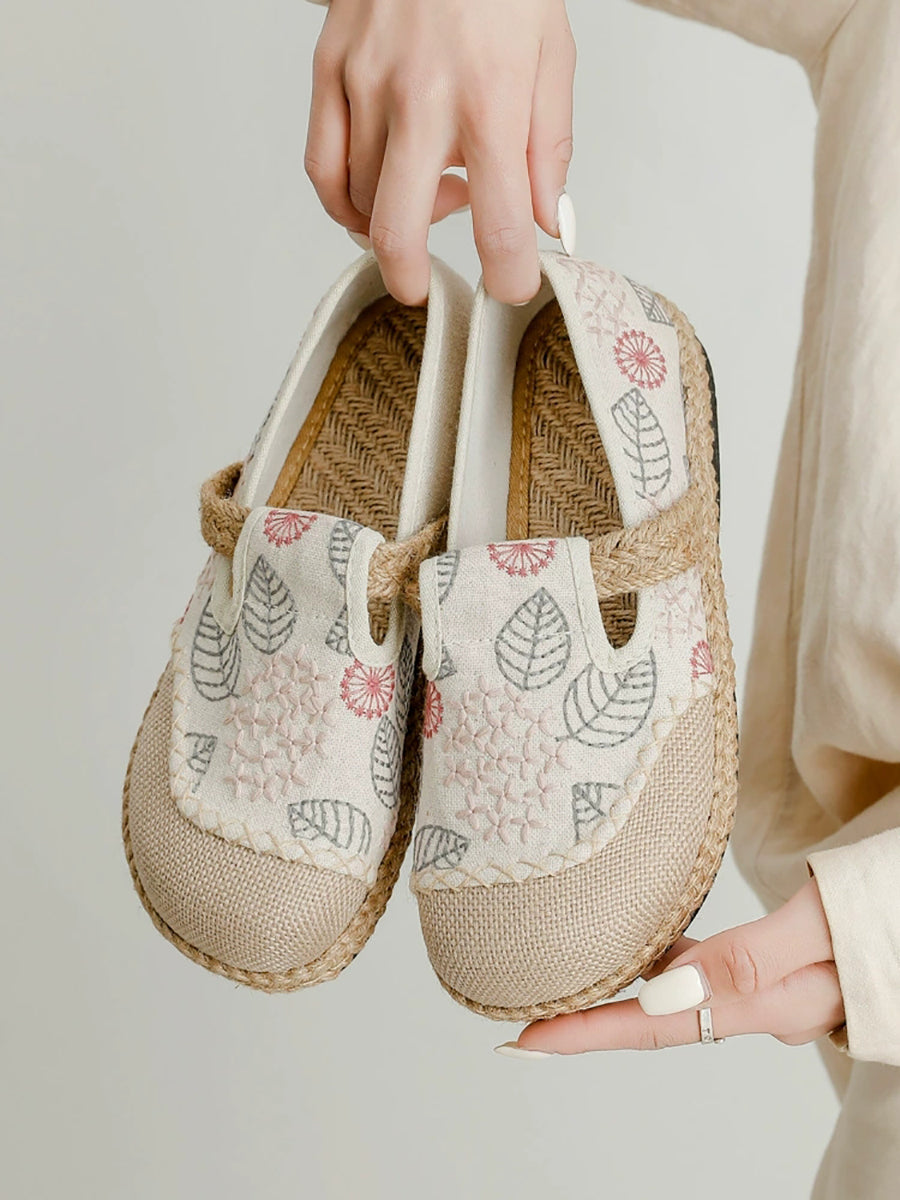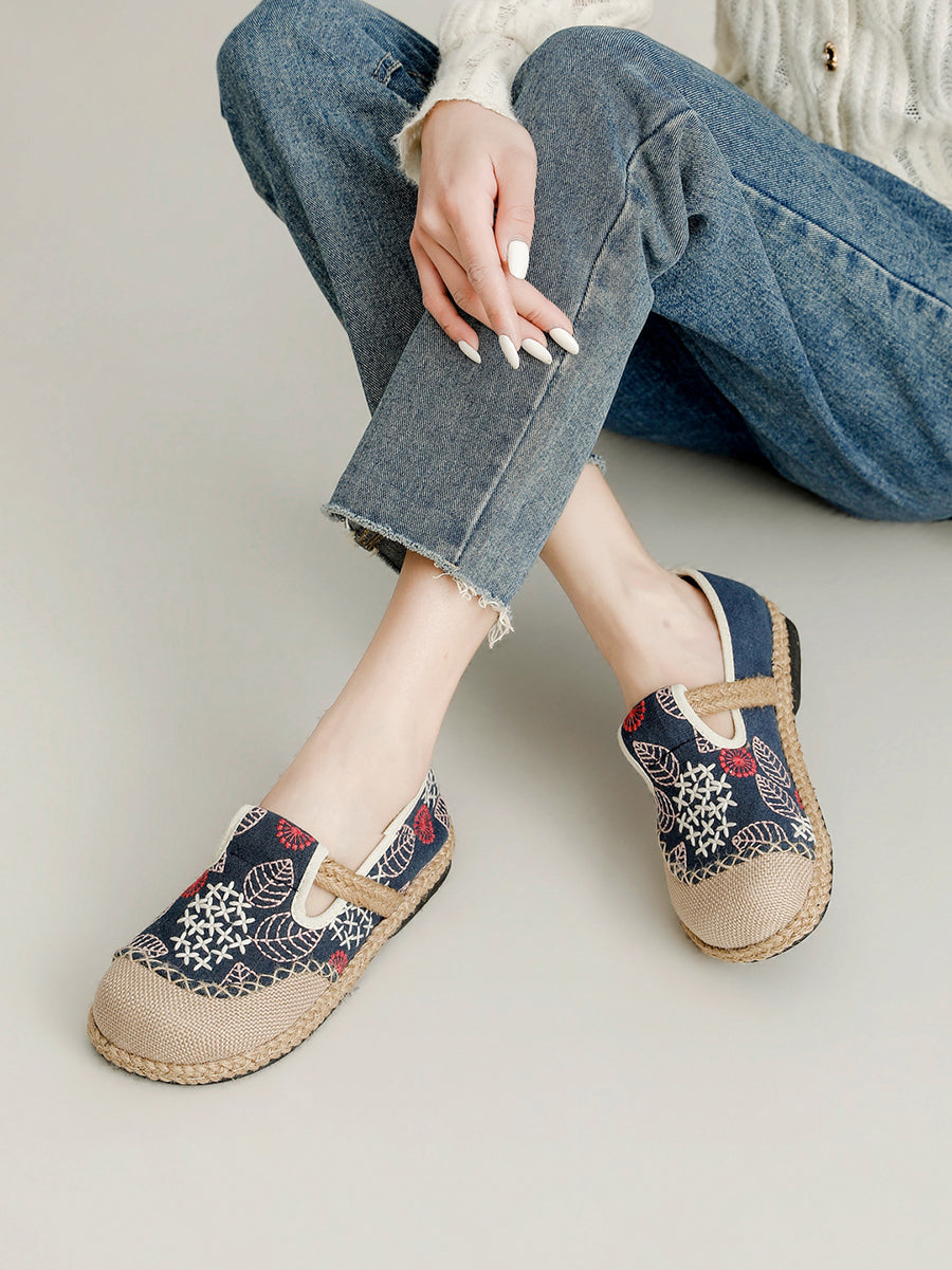 Women Spring Embroidery Canvas Linen Flat Shoes