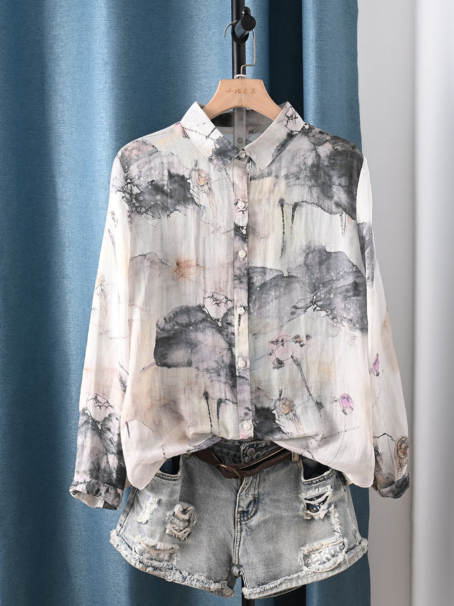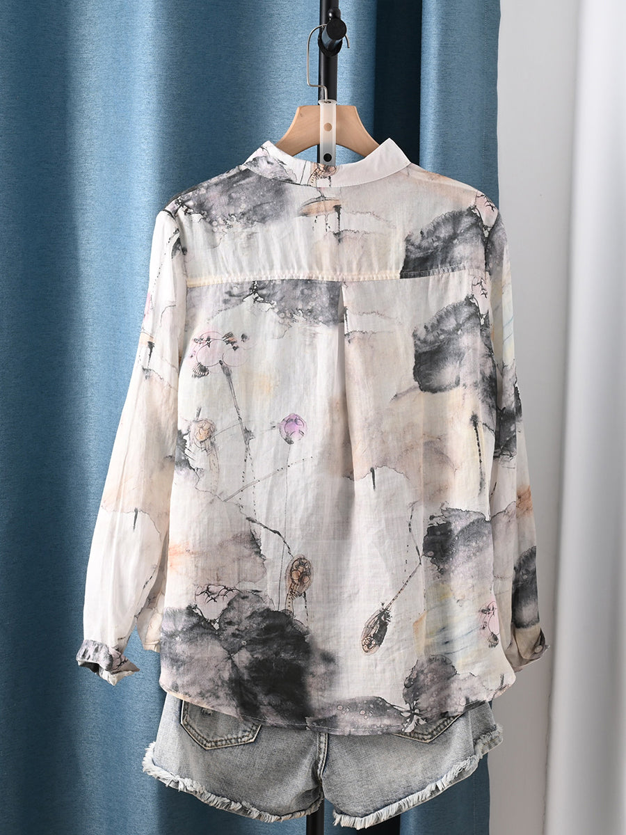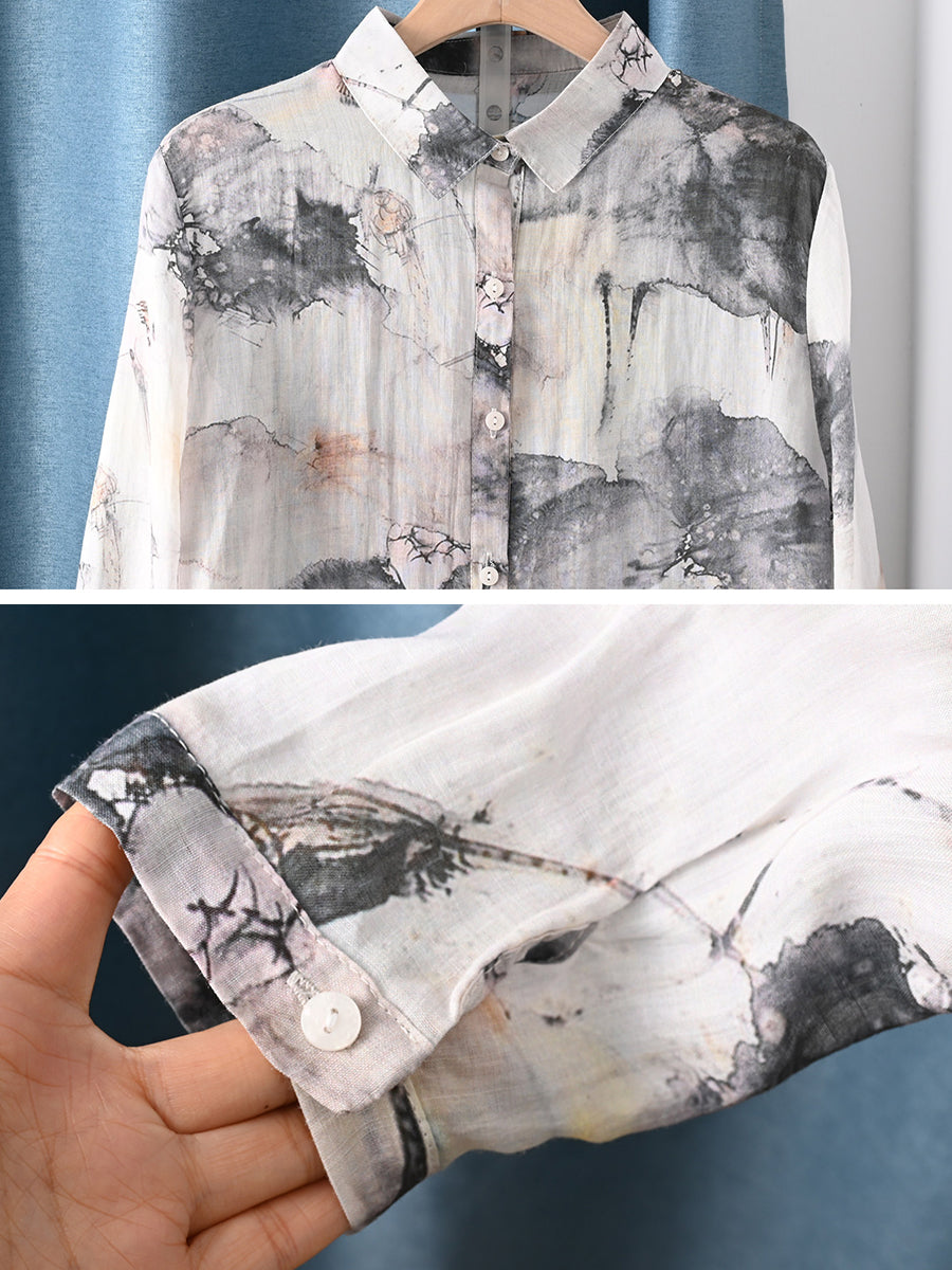 Women Spring Ink Painting 100%Ramie Shirt