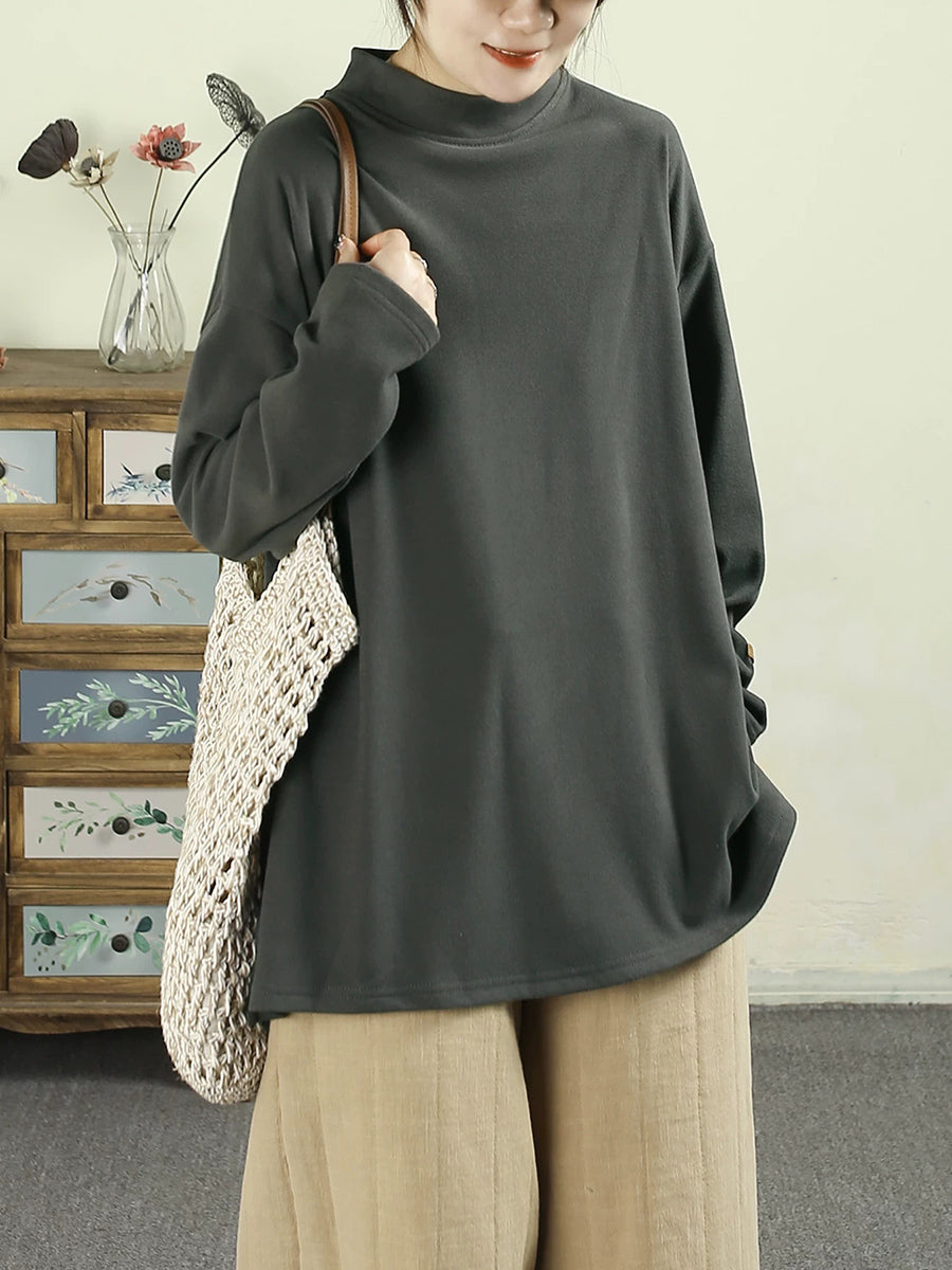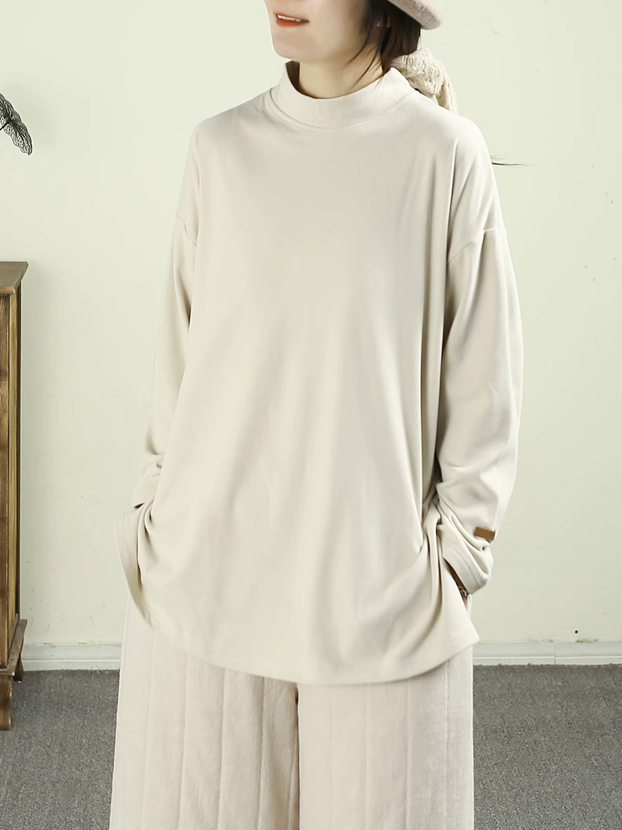 Women Spring Pure Color Half-Turlteneck Bottom Shirt