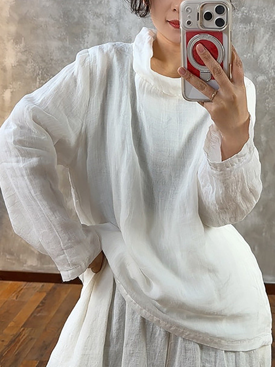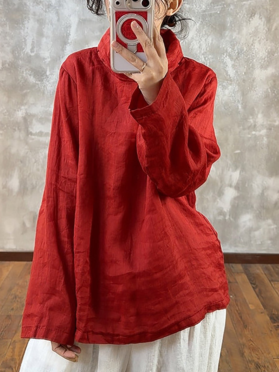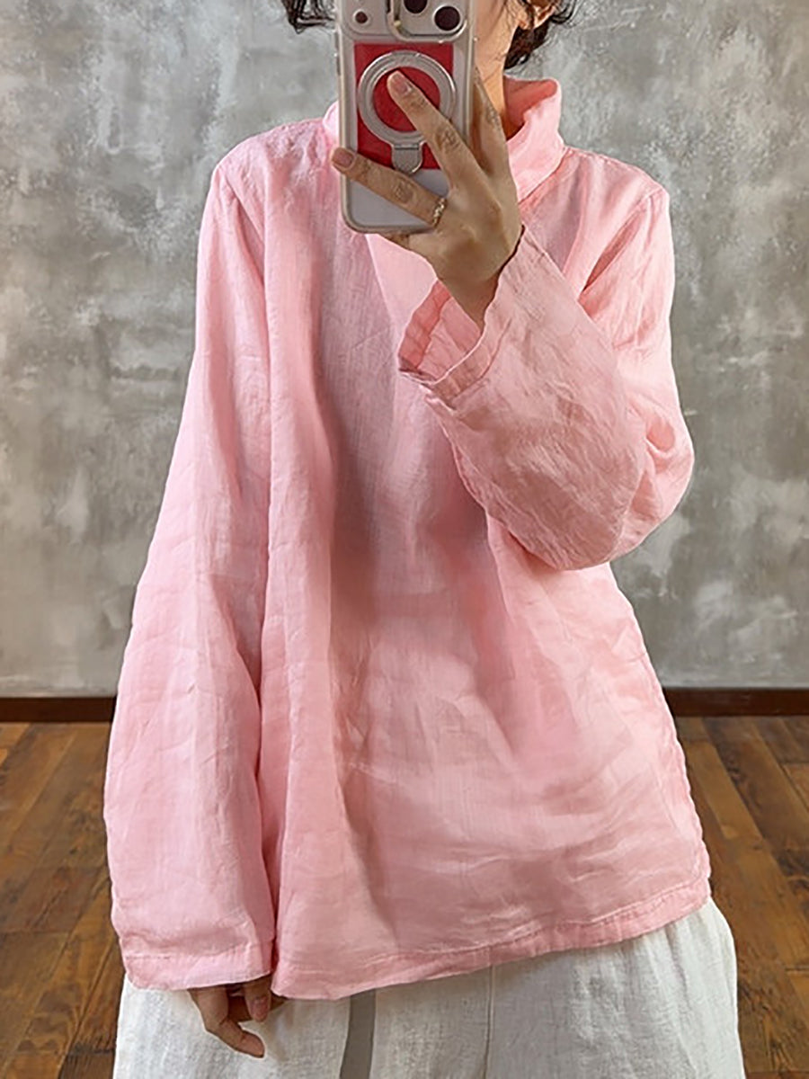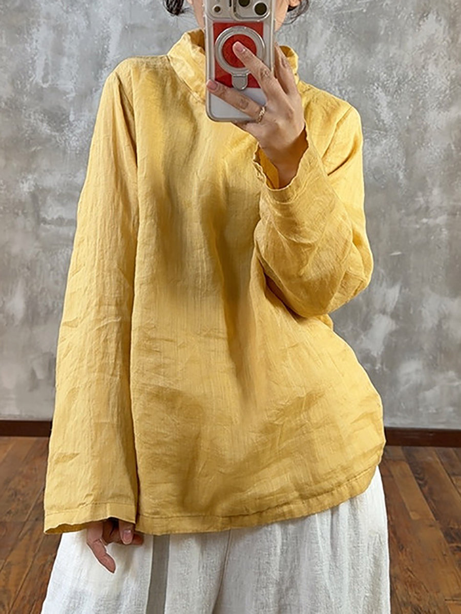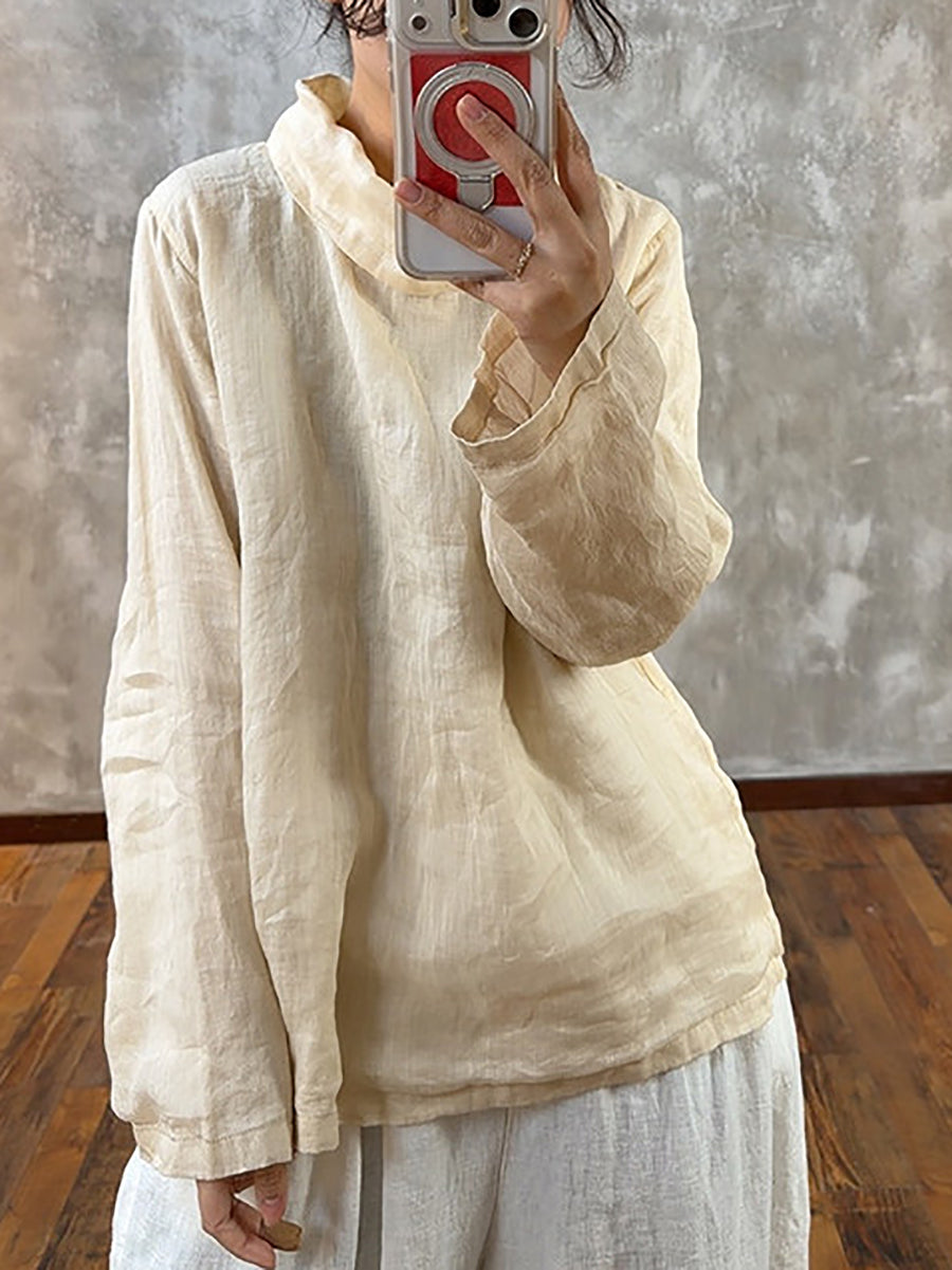 Women Spring Pure Color Heaps Collar Blouse
