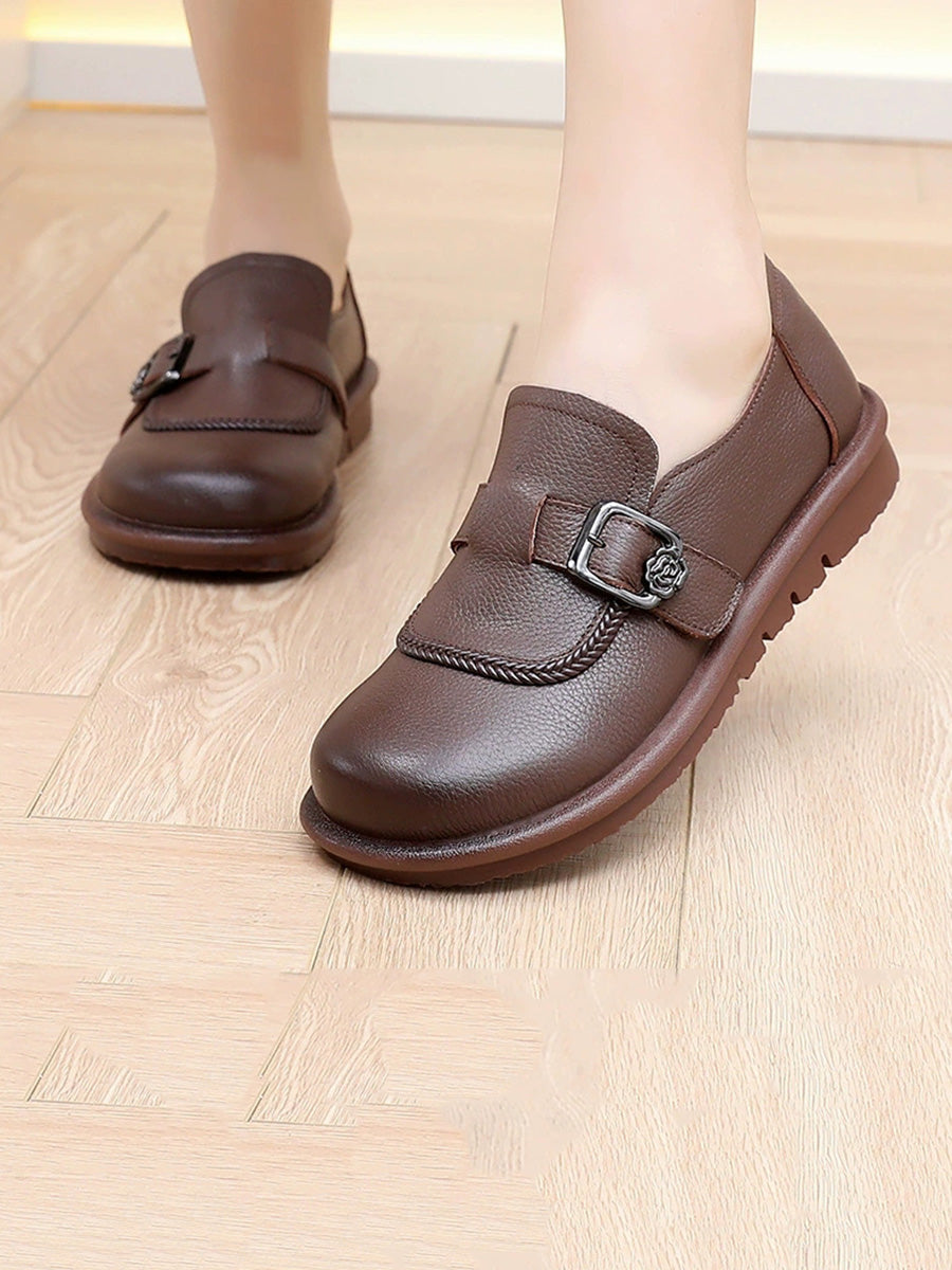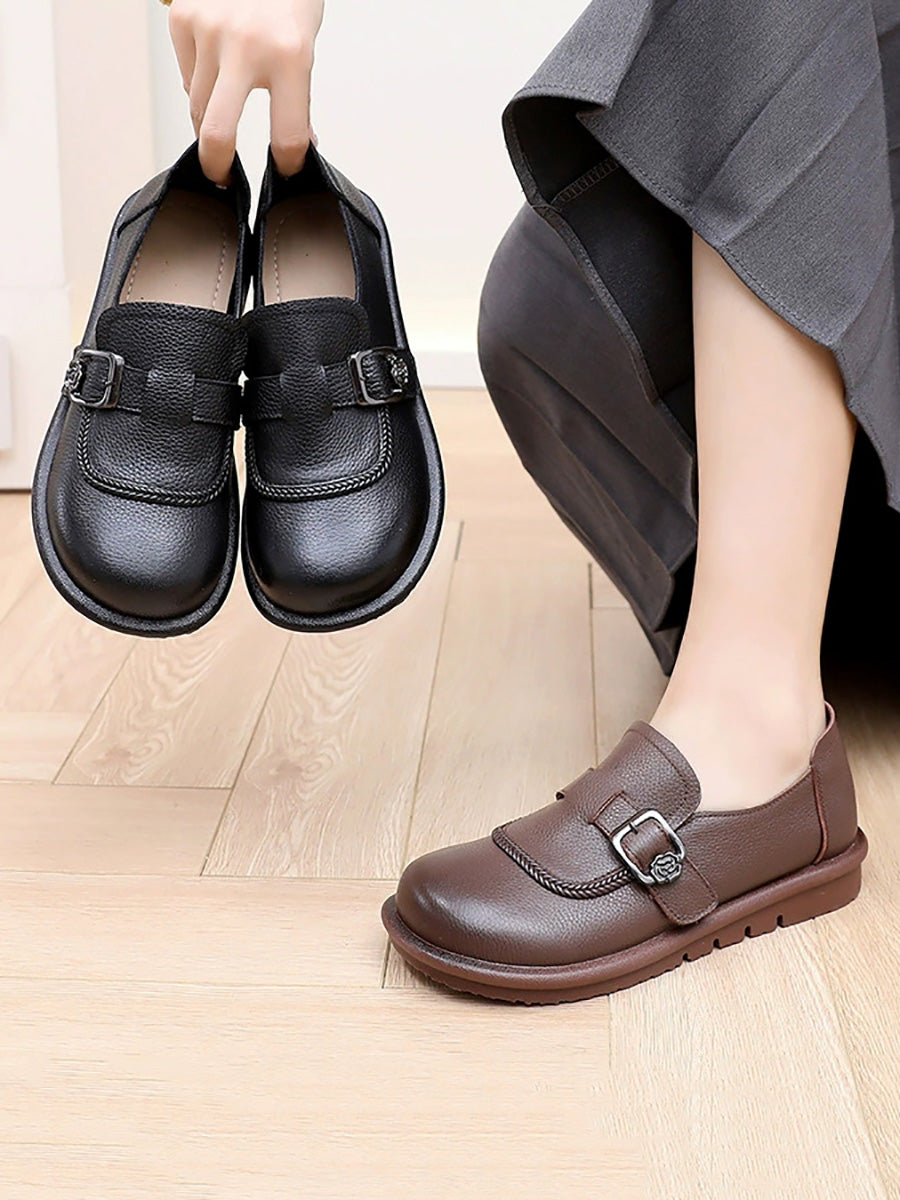 Women Spring Retro Genuine Leather Low Heel Shoes
