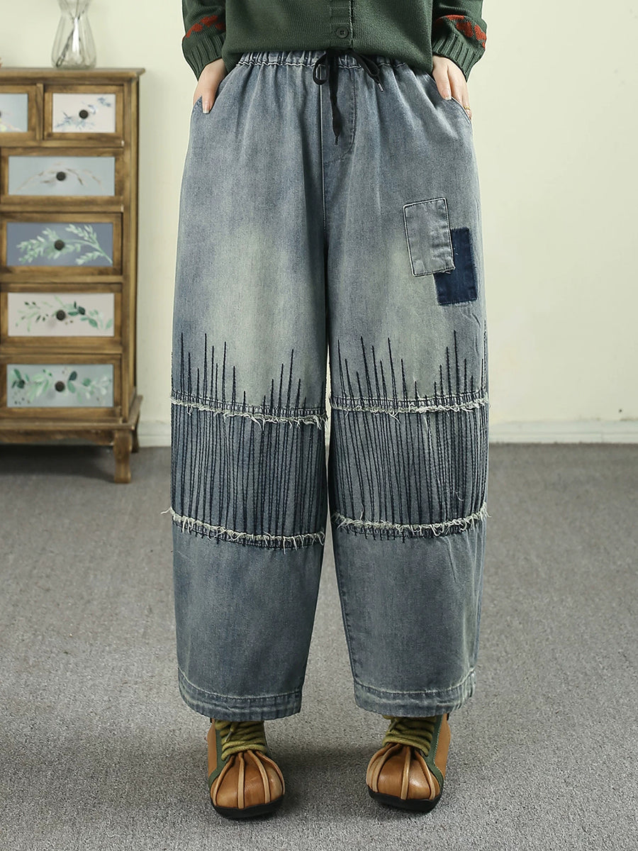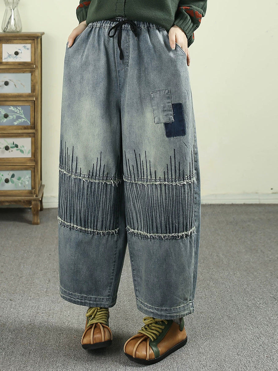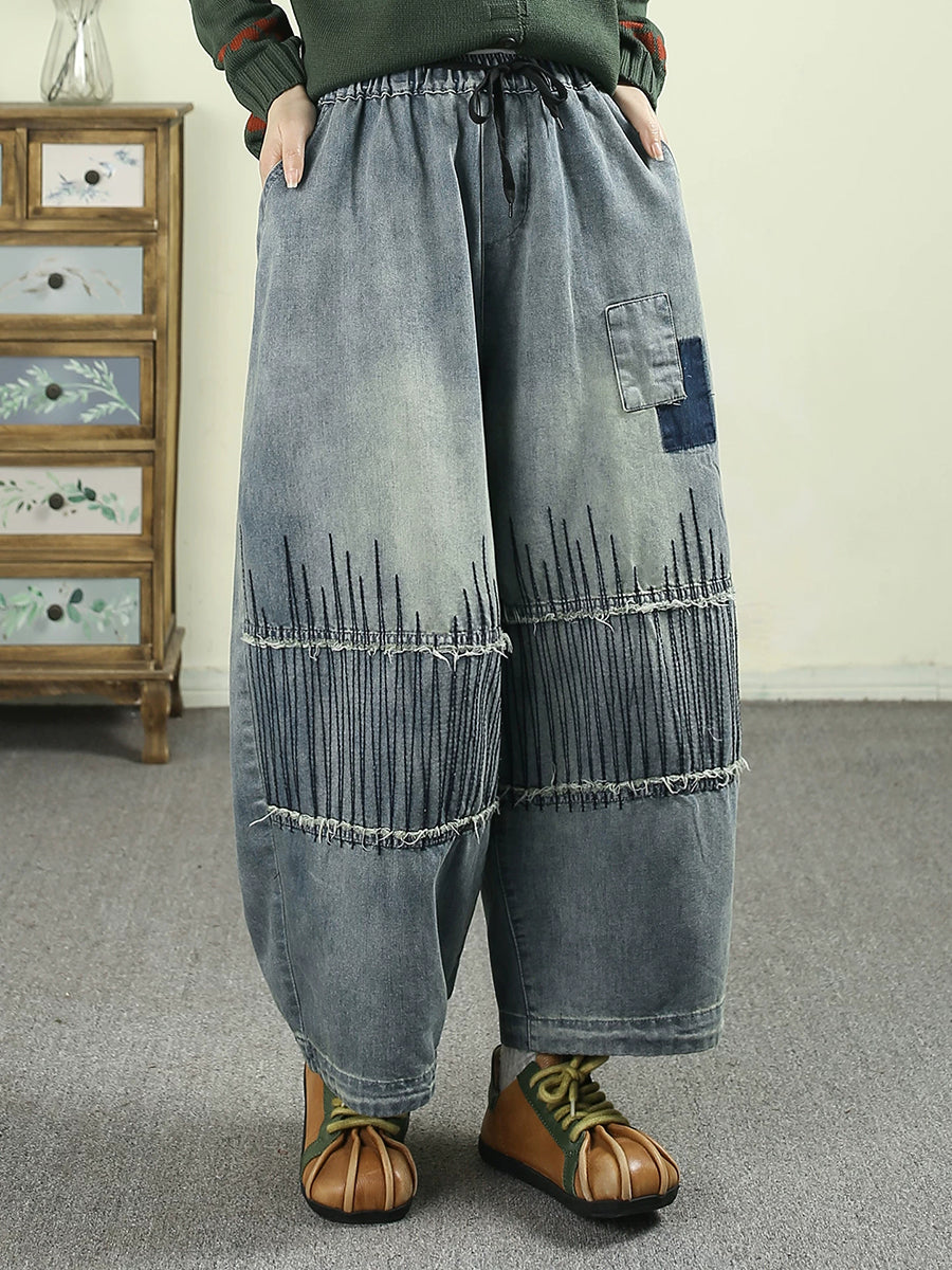 Women Spring Vintage Denim Patchwork Harem Pants