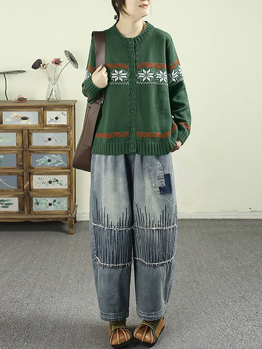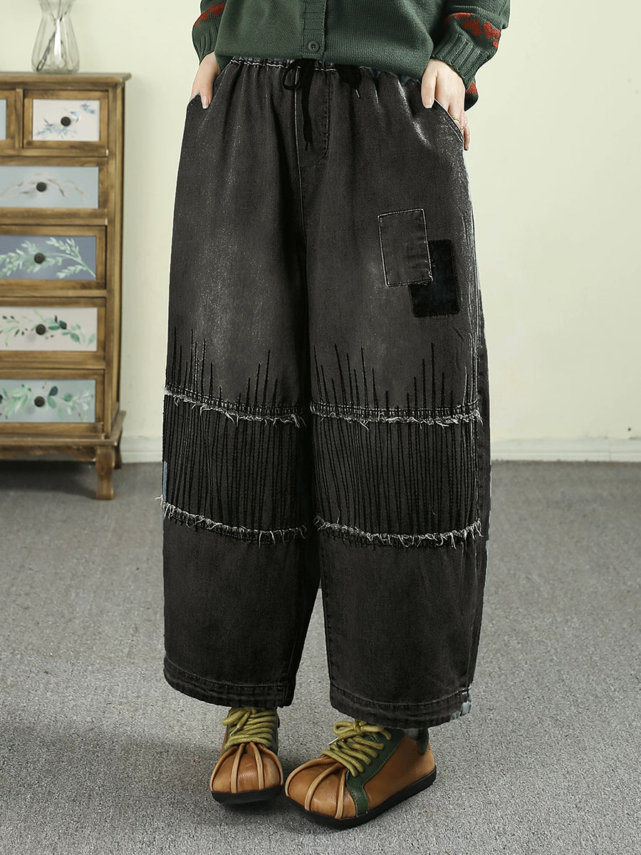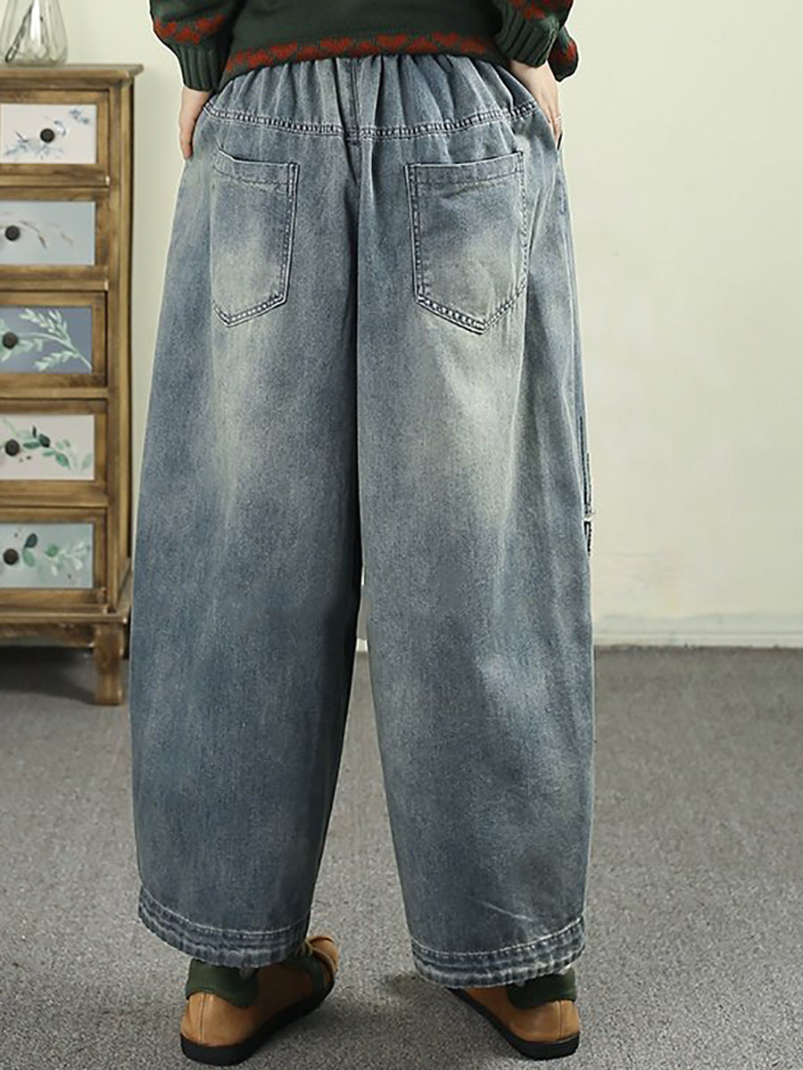 Women Spring Vintage Denim Patchwork Harem Pants