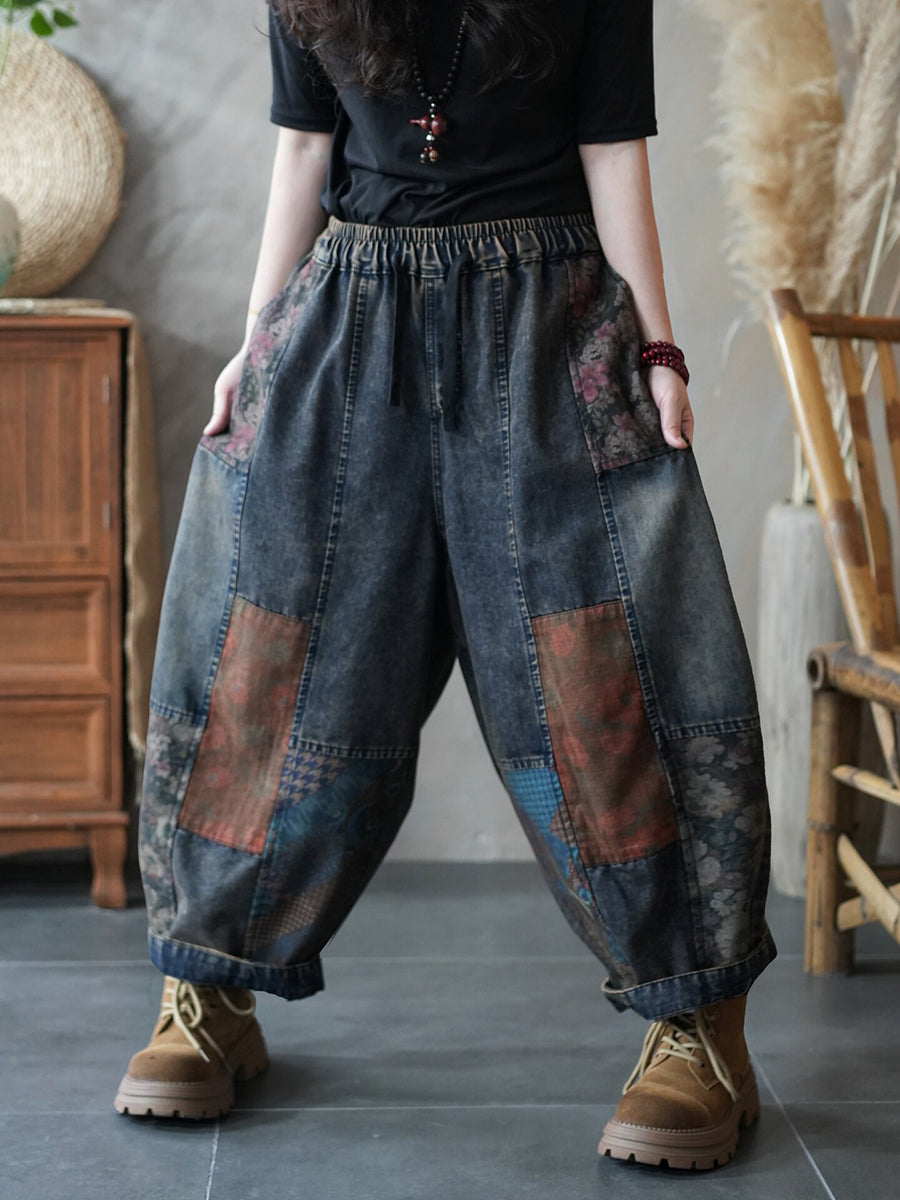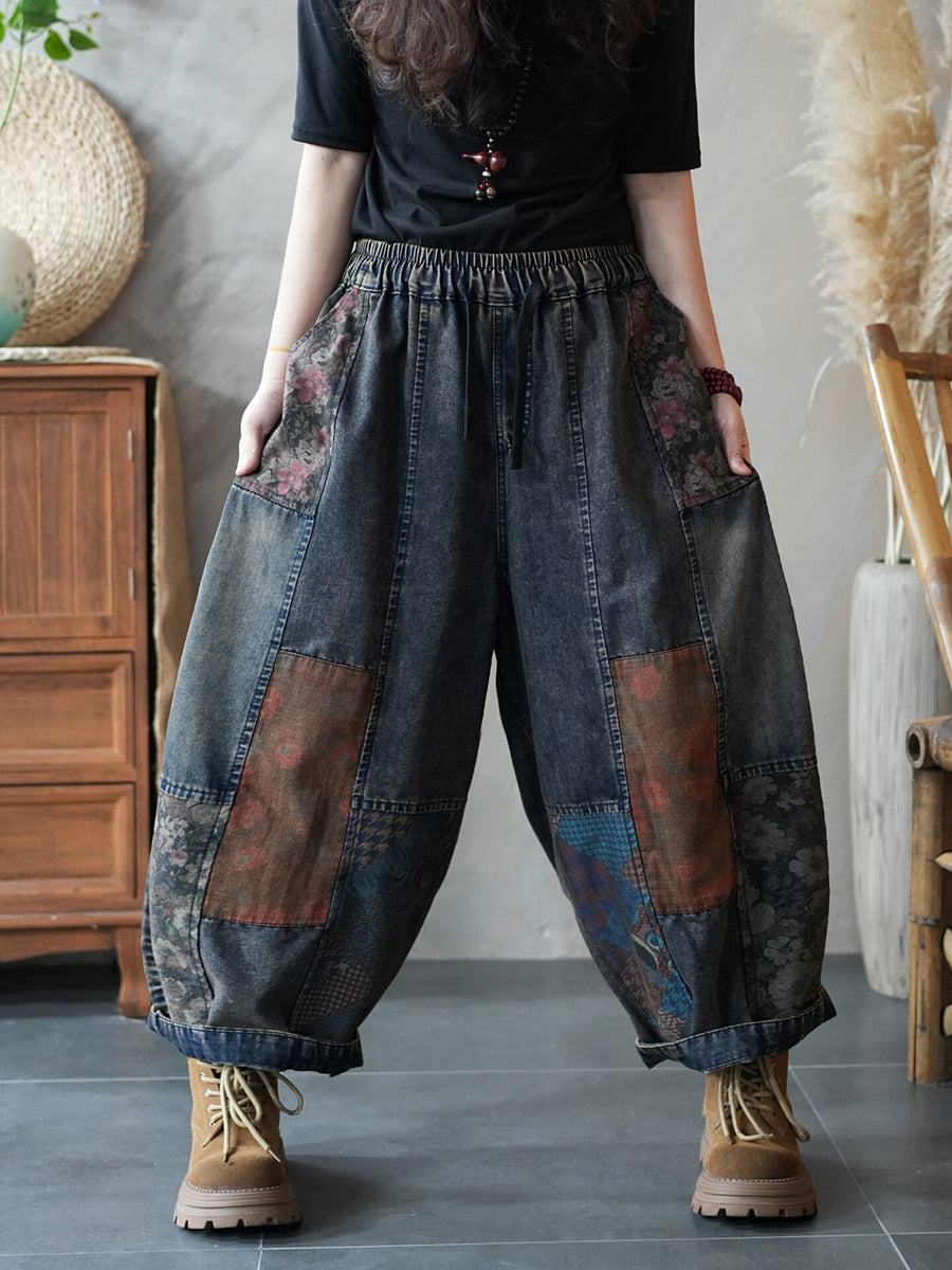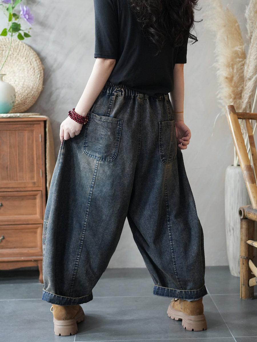 Women Spring Vintage Denim Spliced Harem Pants