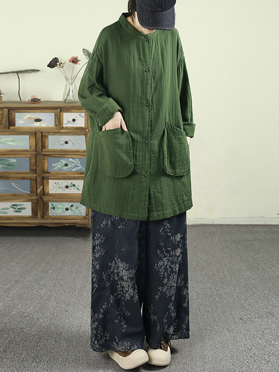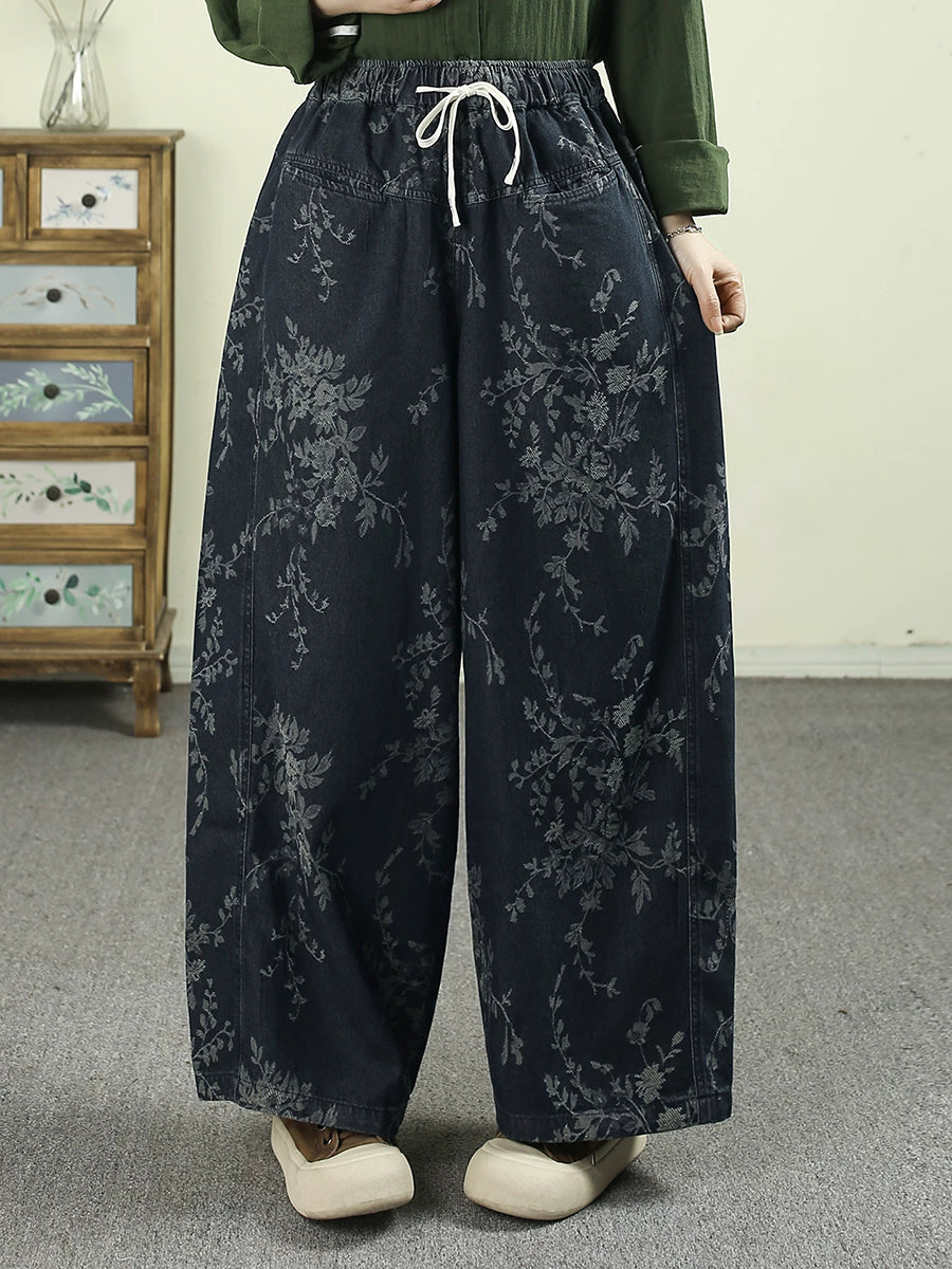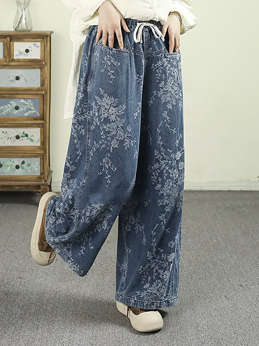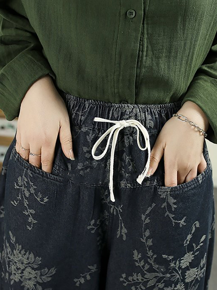 Women Spring Vintage Flower Cotton Wide-leg Pants