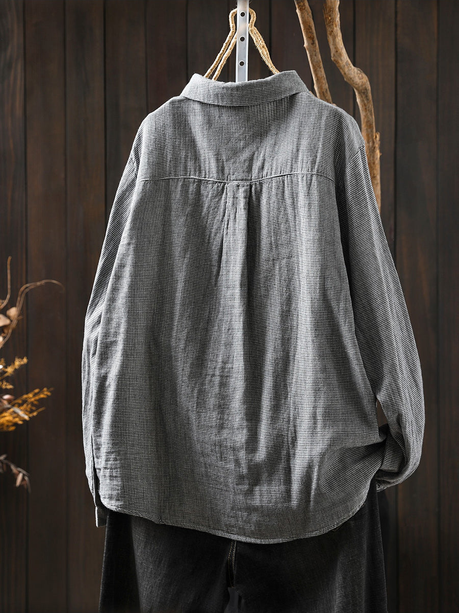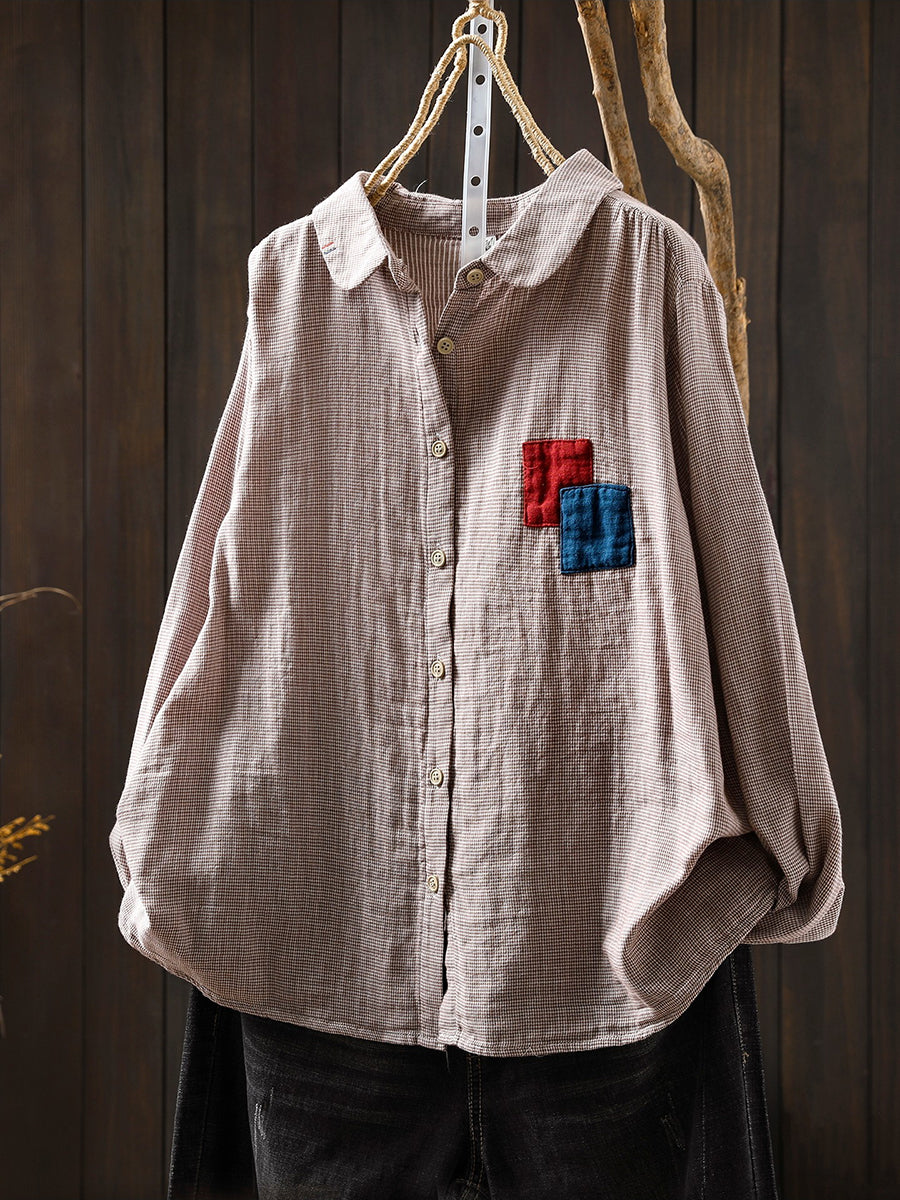 Women Spring Vintage Lattice Patchwork 100%Cotton Shirt