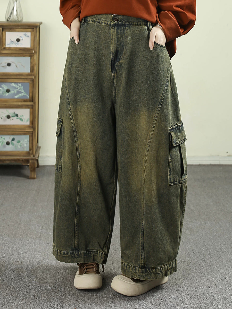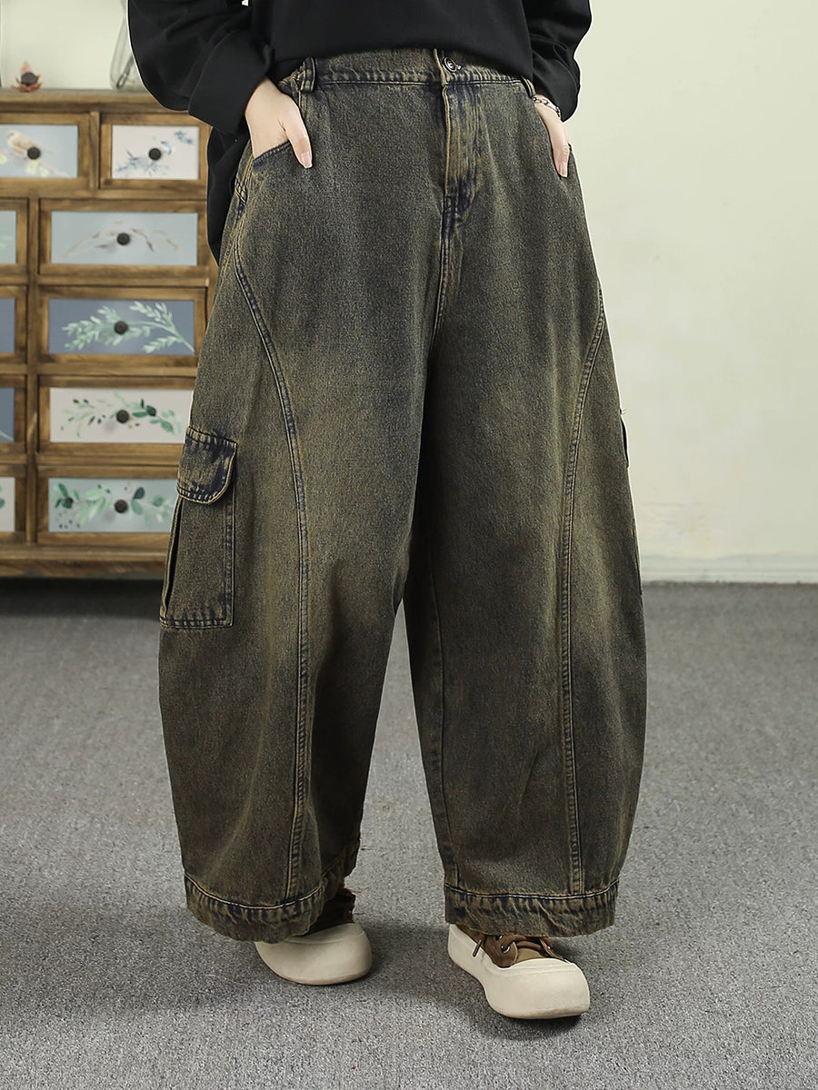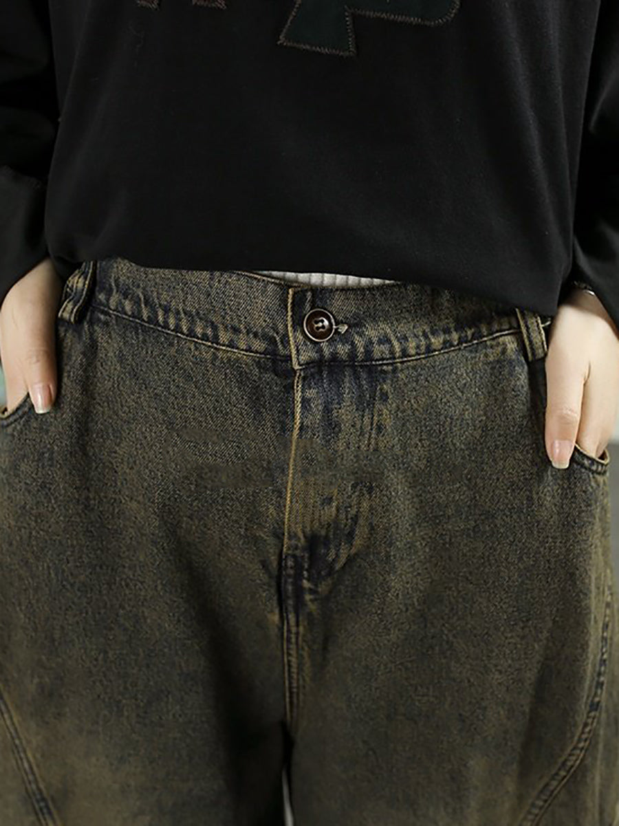 Women Spring Vintage Washed Denim Harem Pants