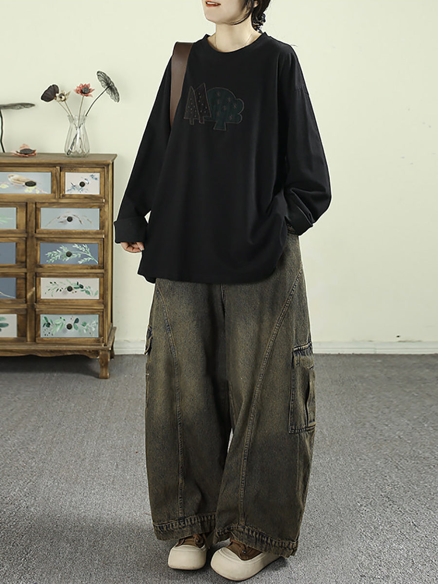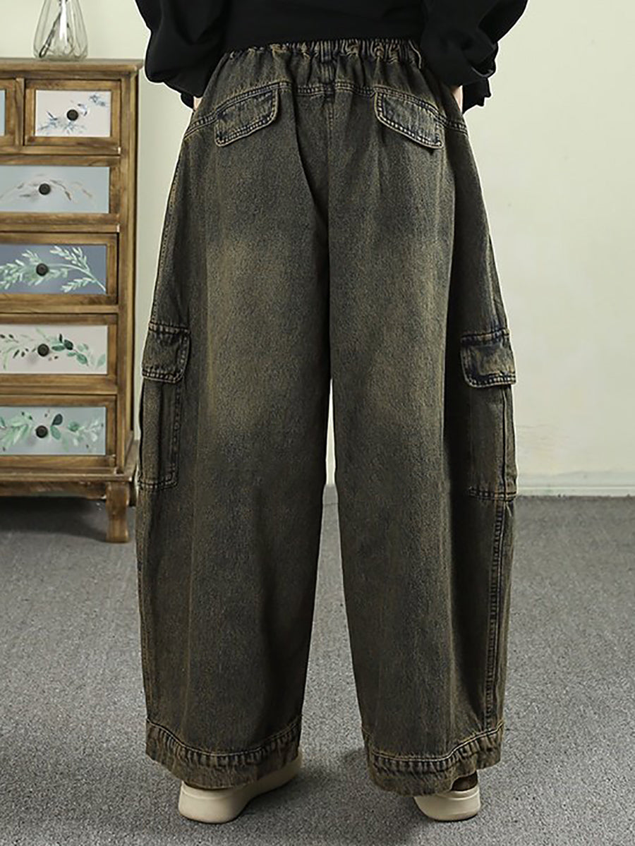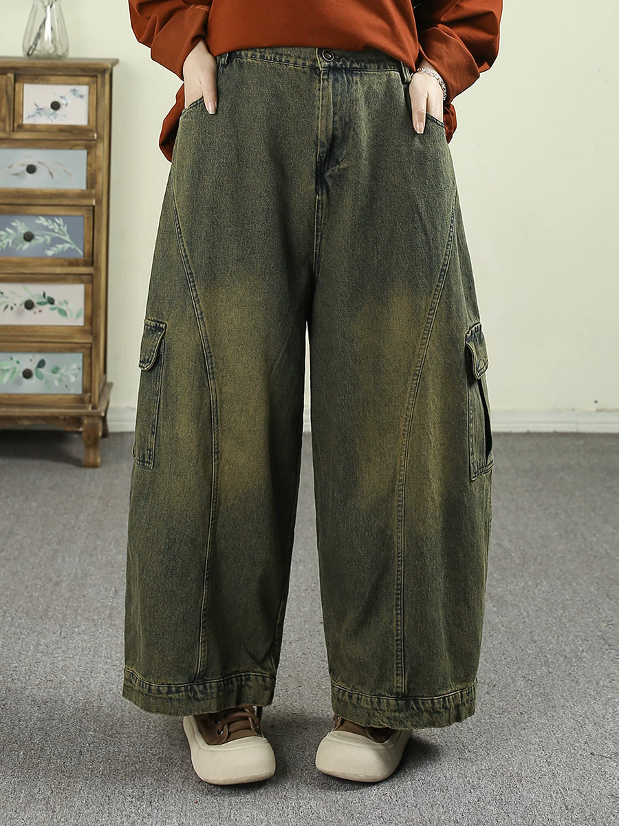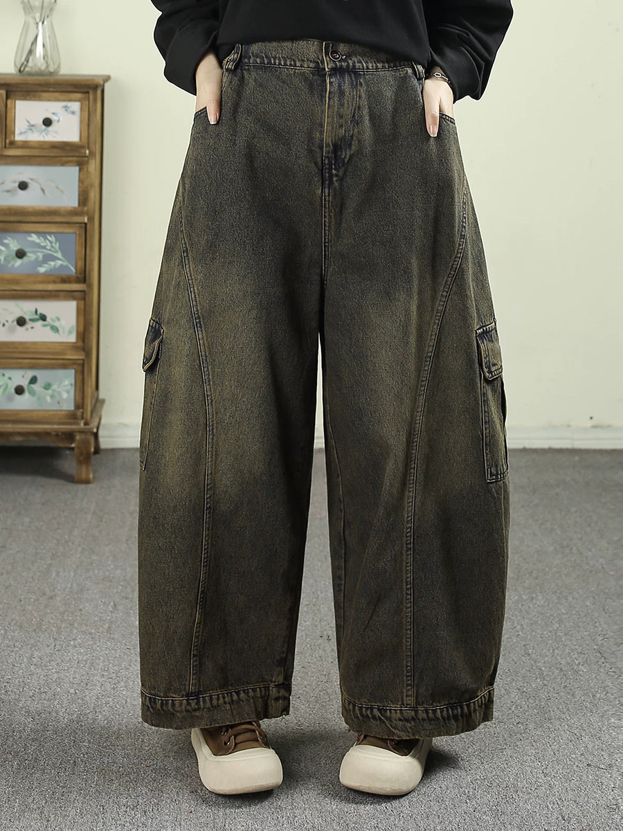 Women Spring Vintage Washed Denim Harem Pants