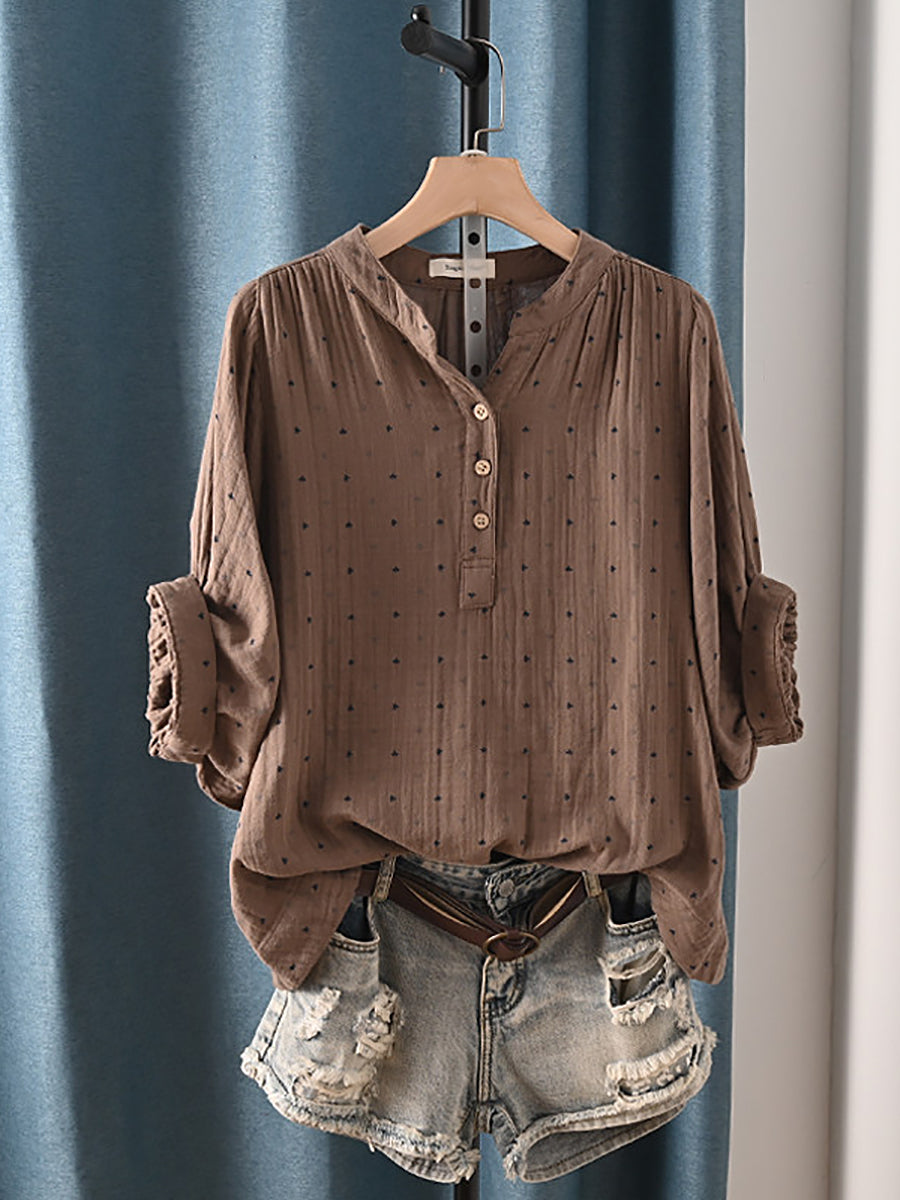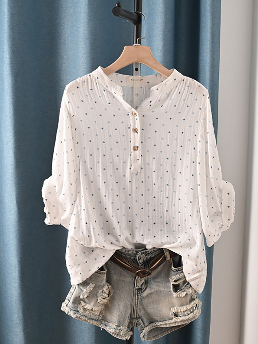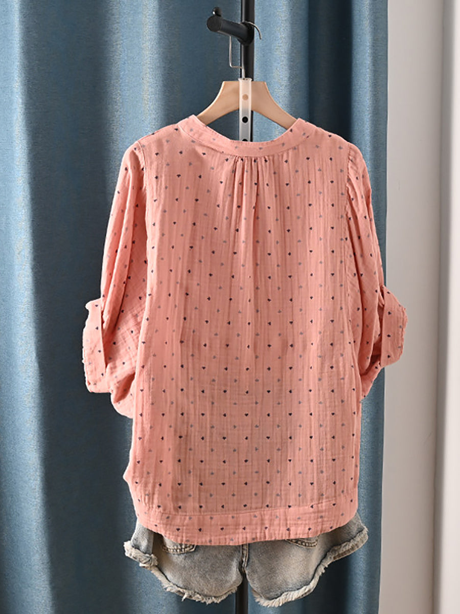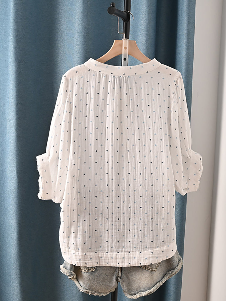 Women Summer Artsy Dot V-Neck 100%Cotton Shirt