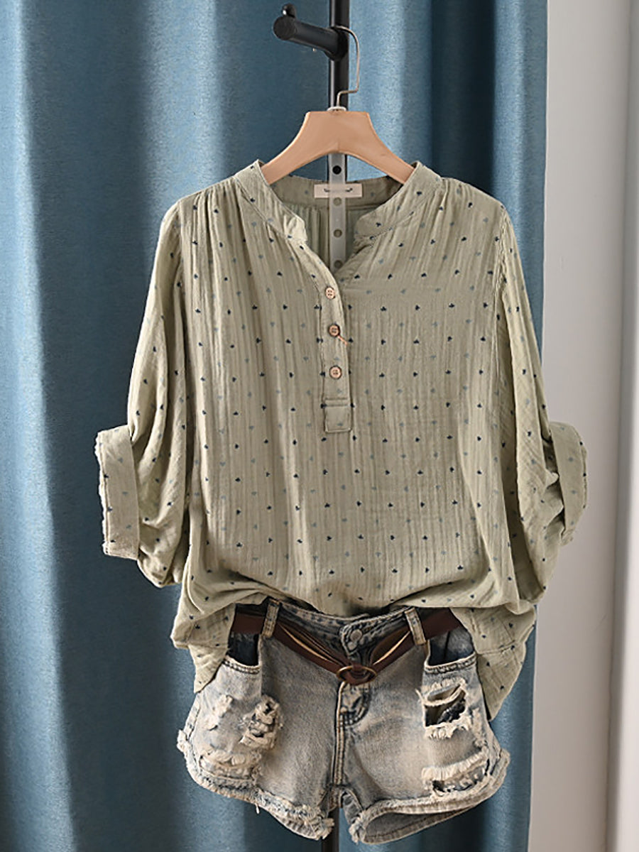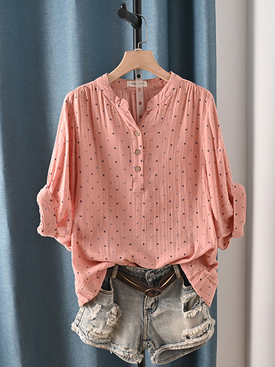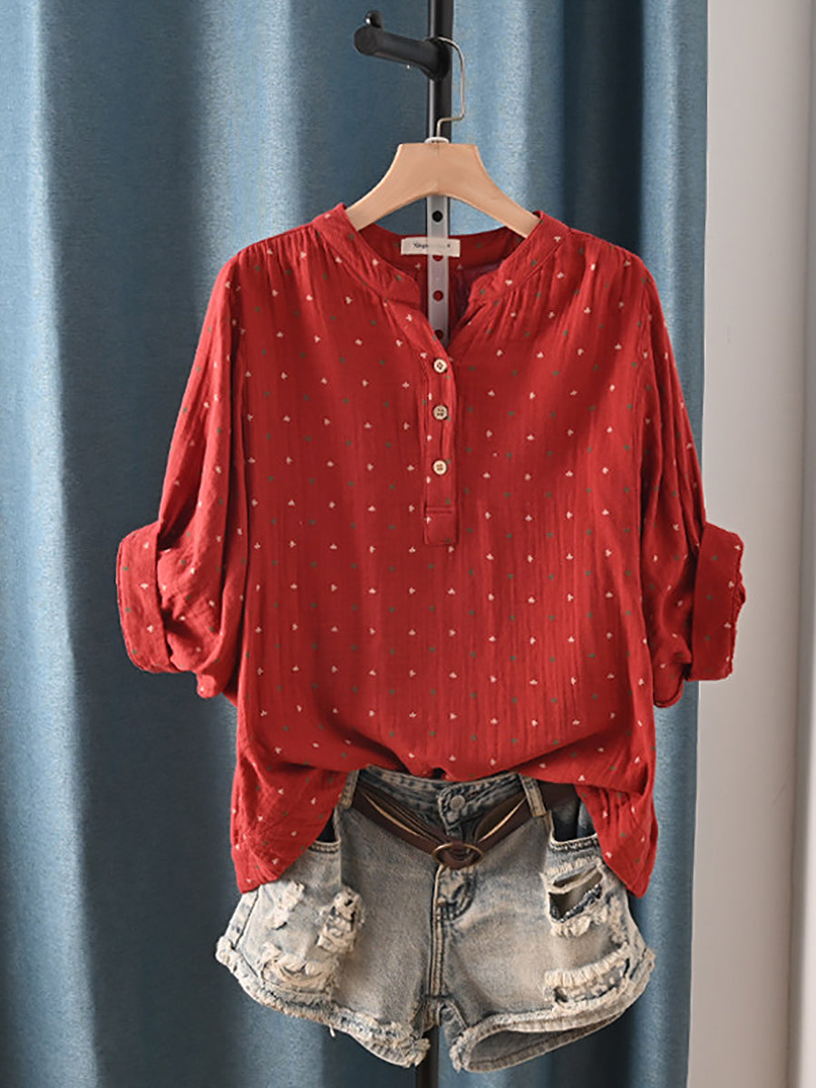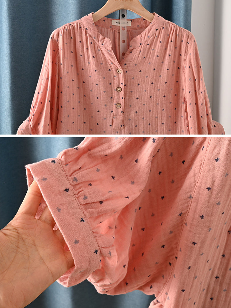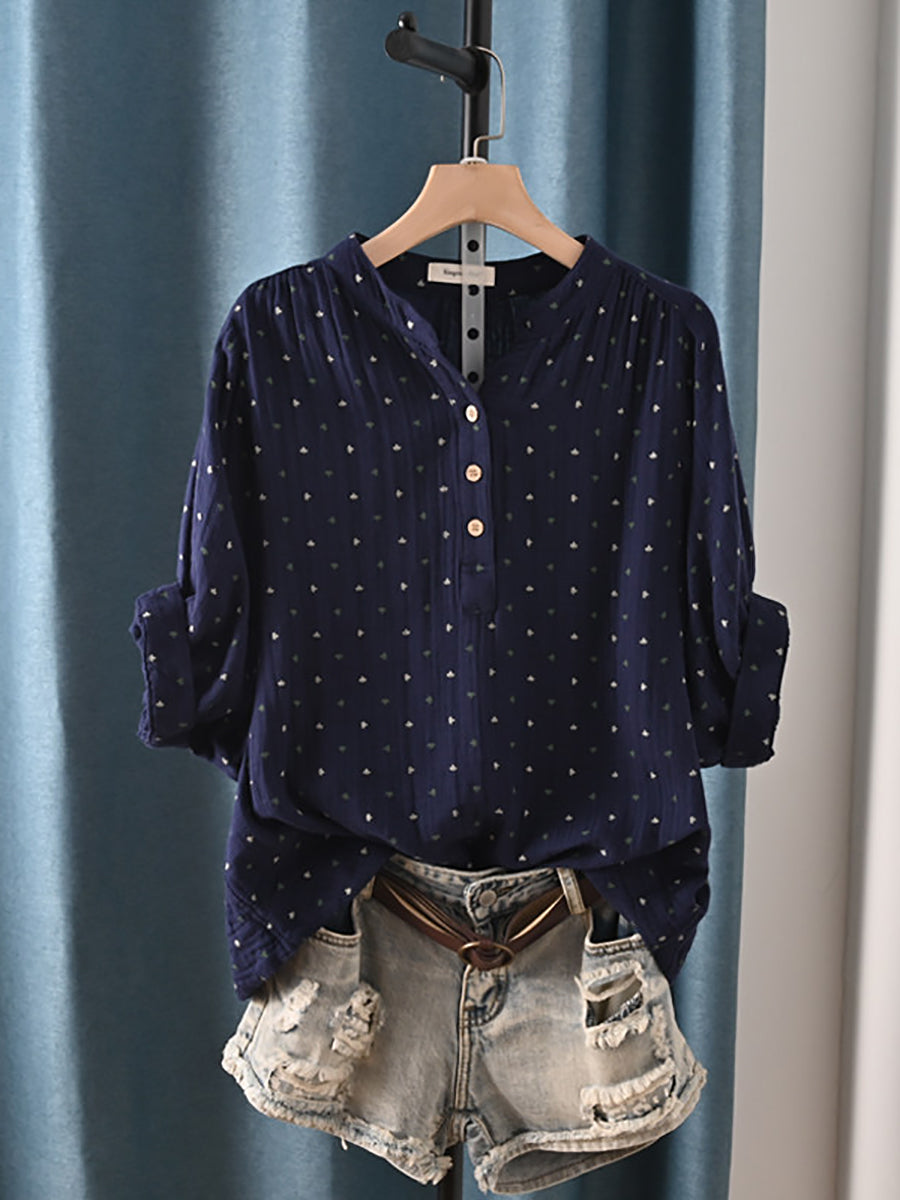 Women Summer Artsy Dot V-Neck 100%Cotton Shirt