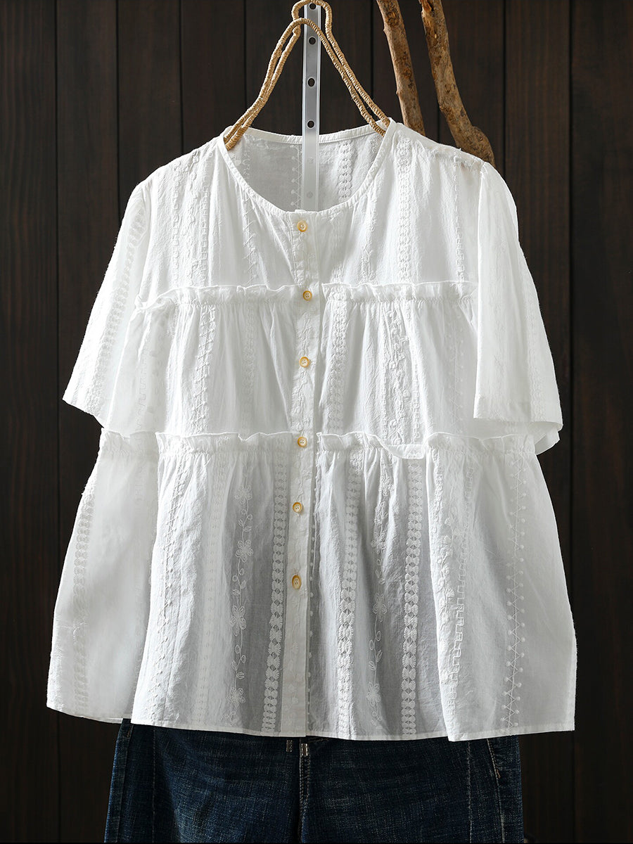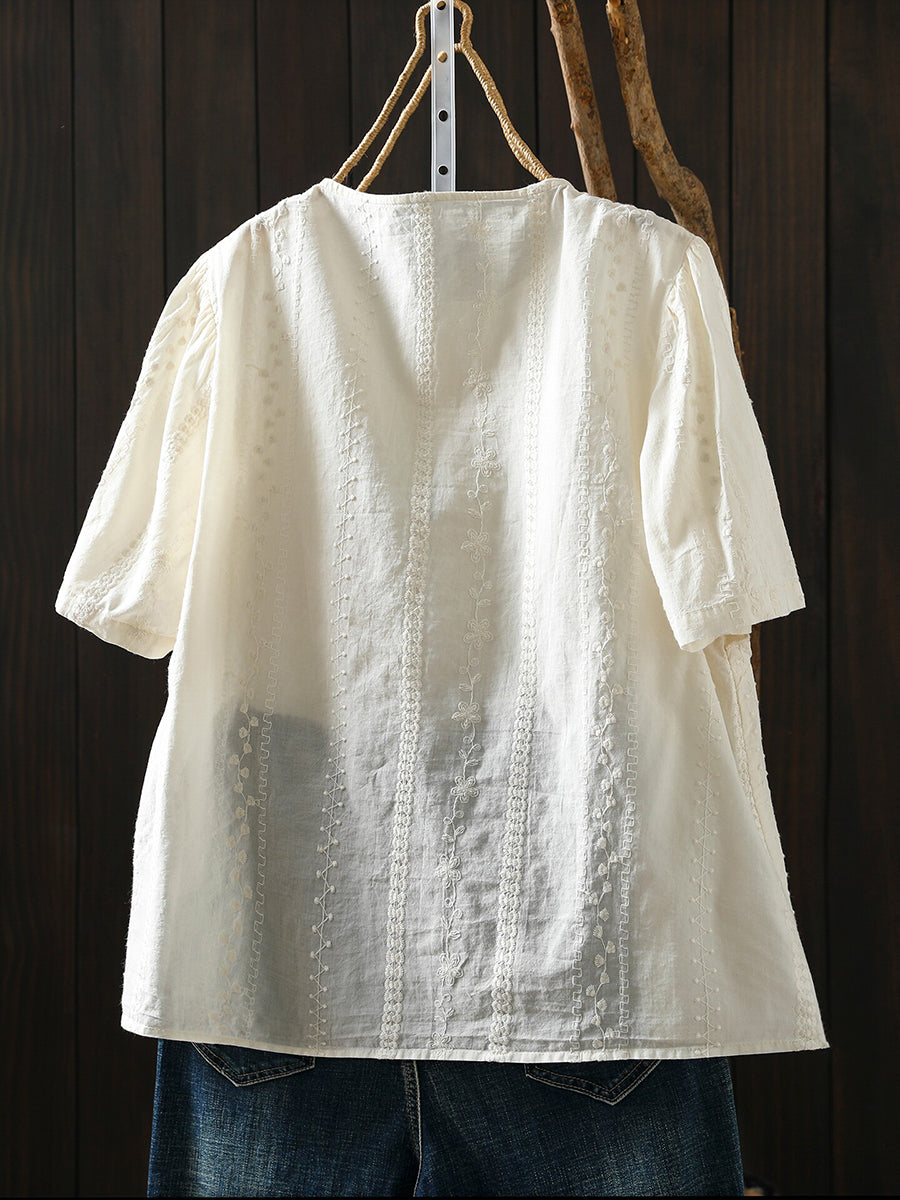 Women Summer Artsy Embroidery 100%Cotton Blouse