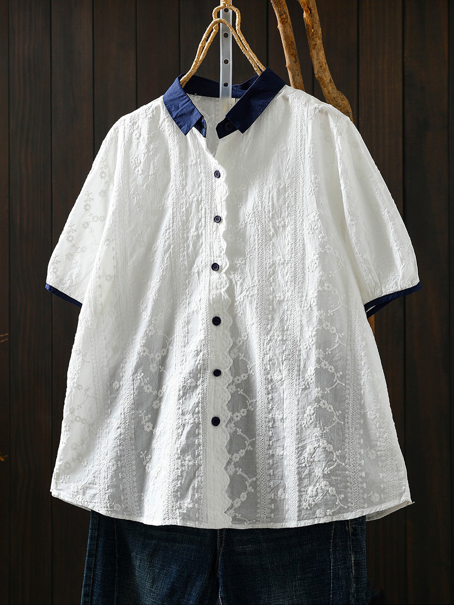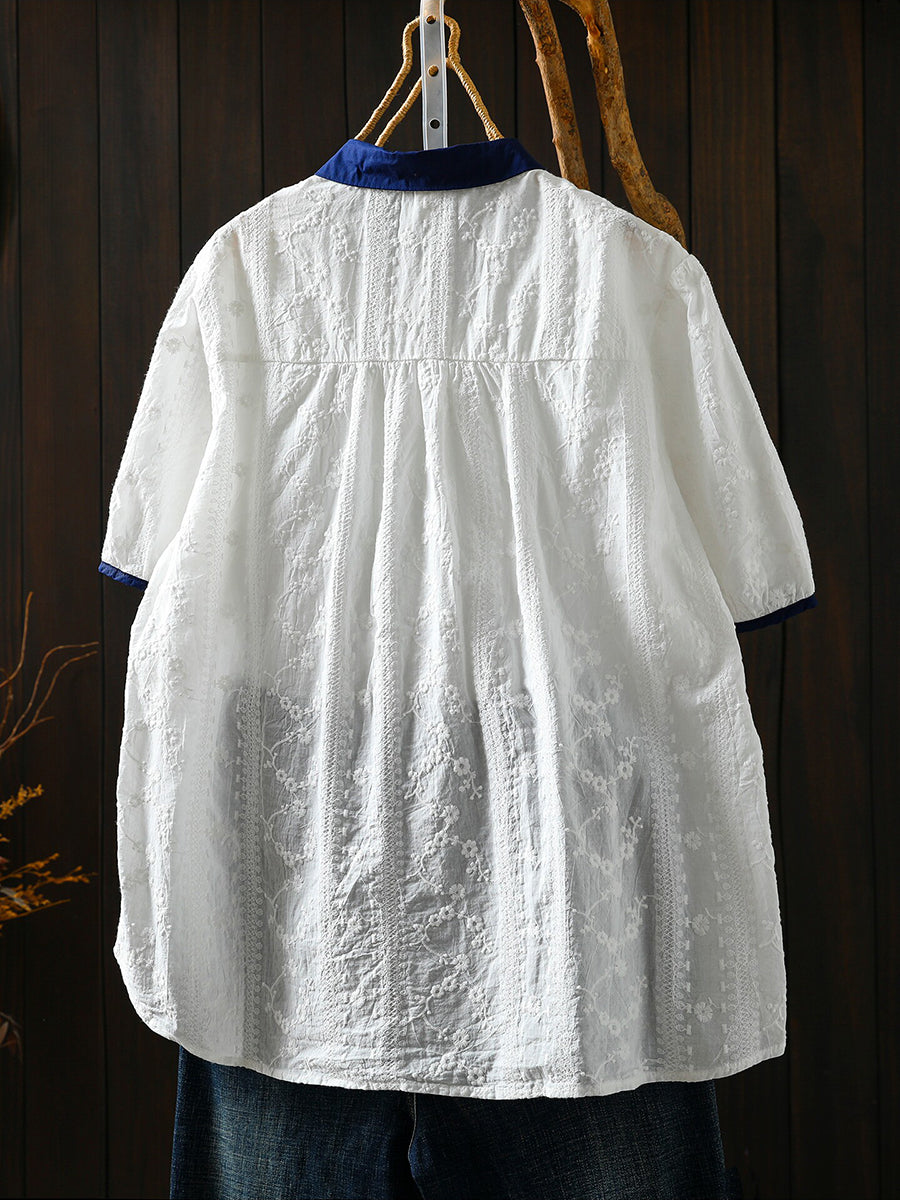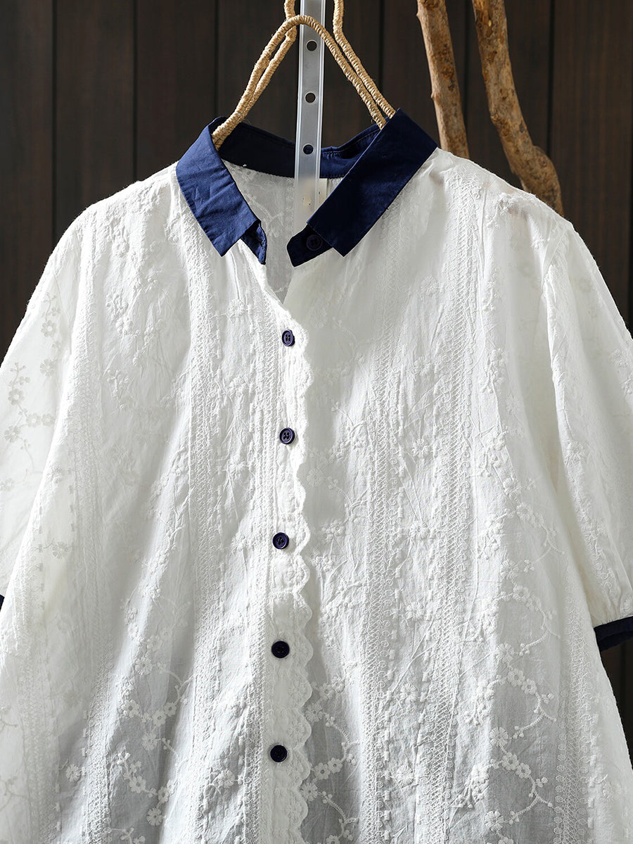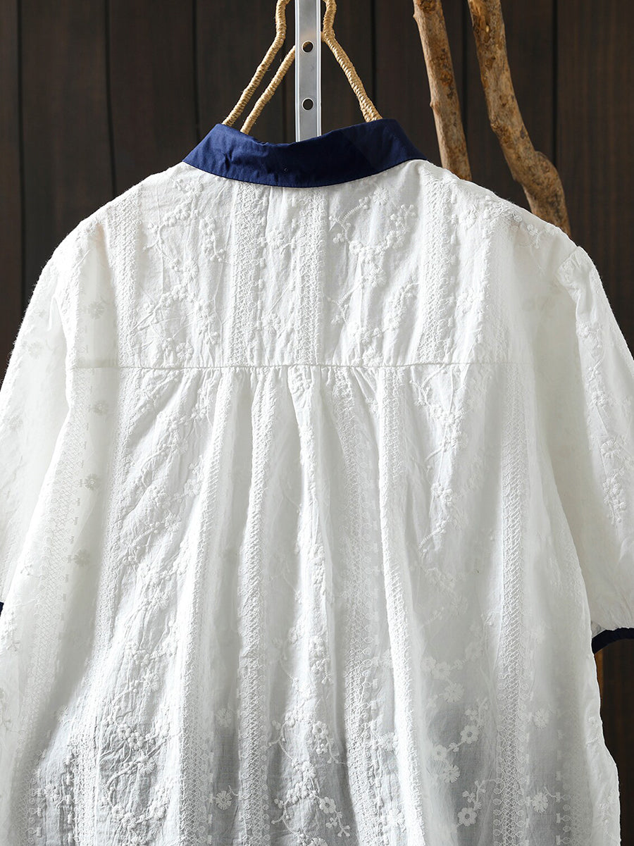Women Summer Artsy Embroidery 100%Cotton Shirt