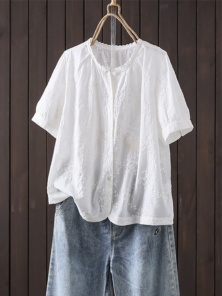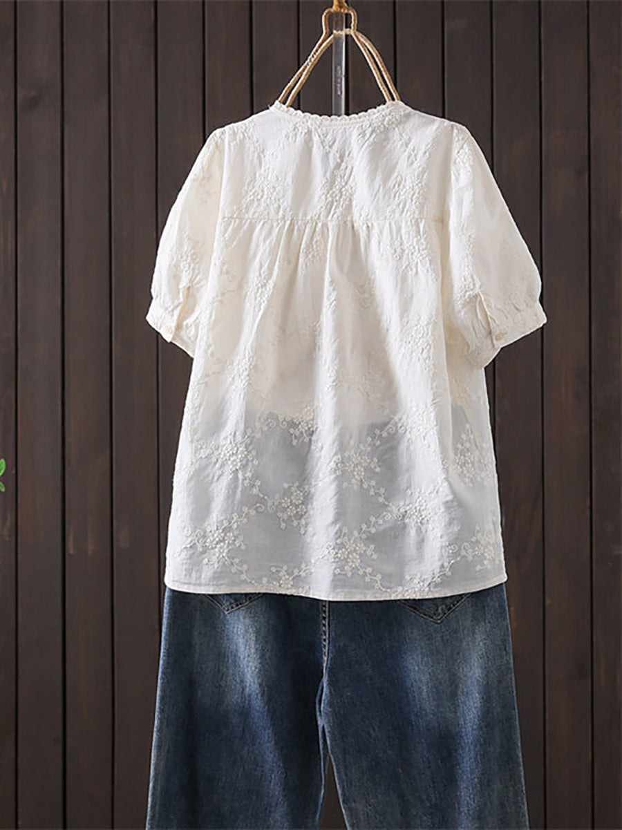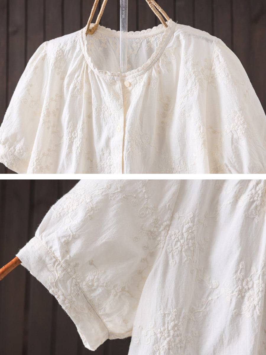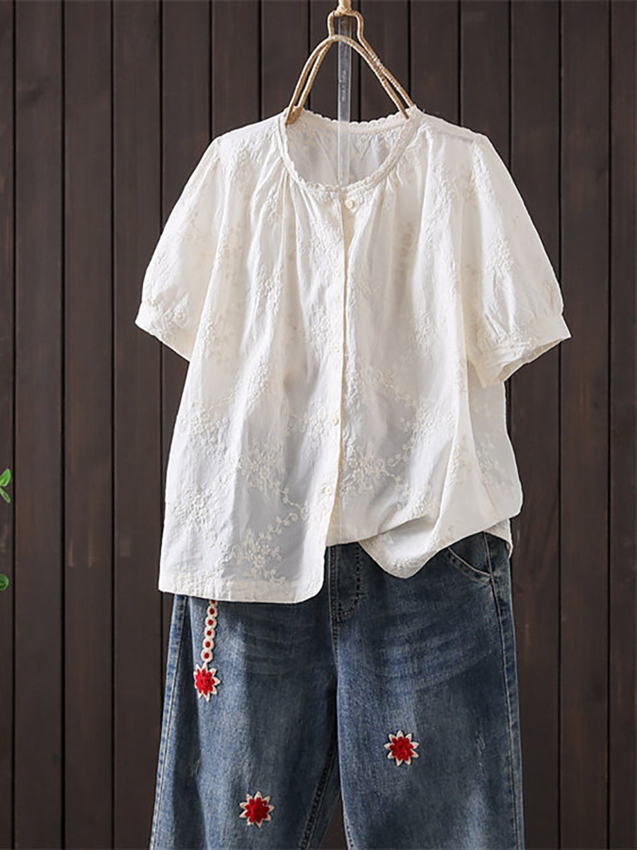 Women Summer Artsy Embroidery O-Neck Blouse