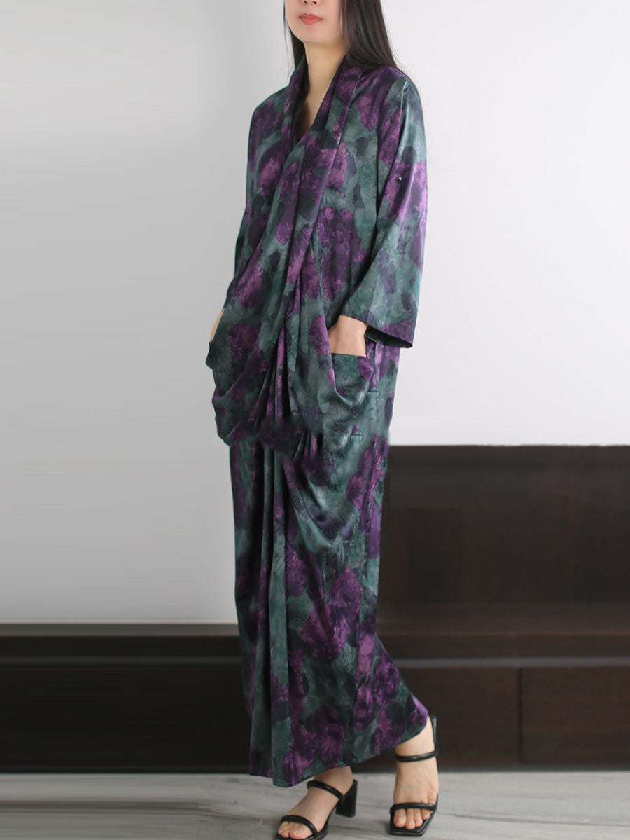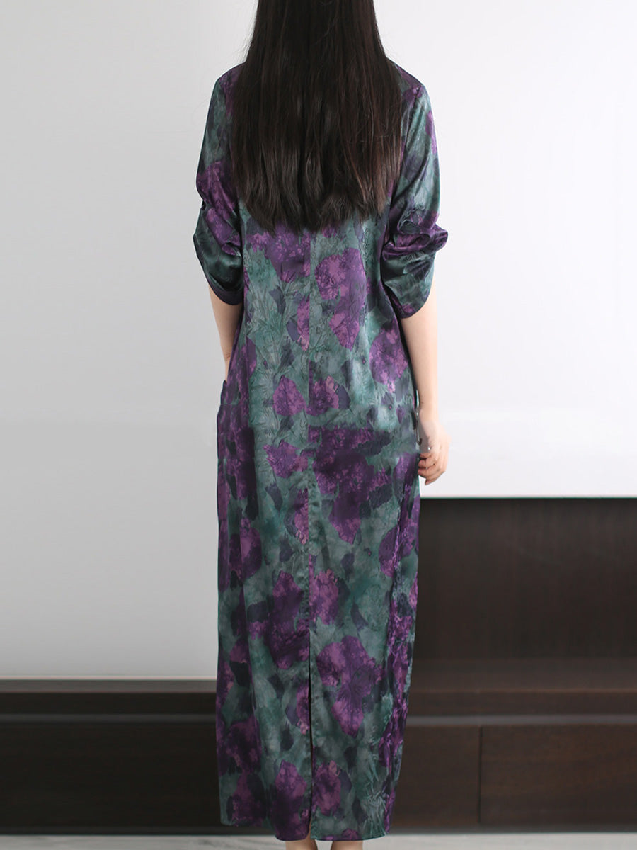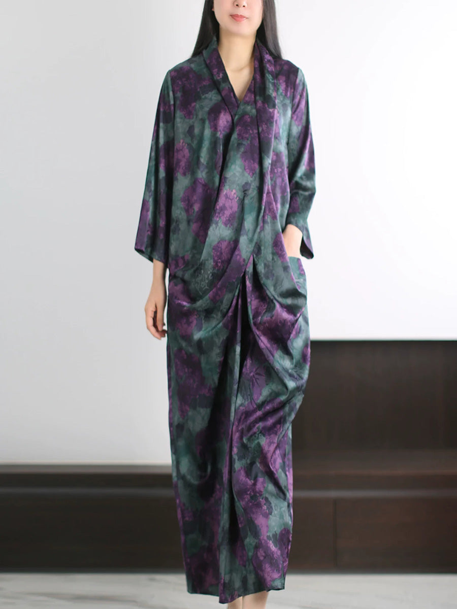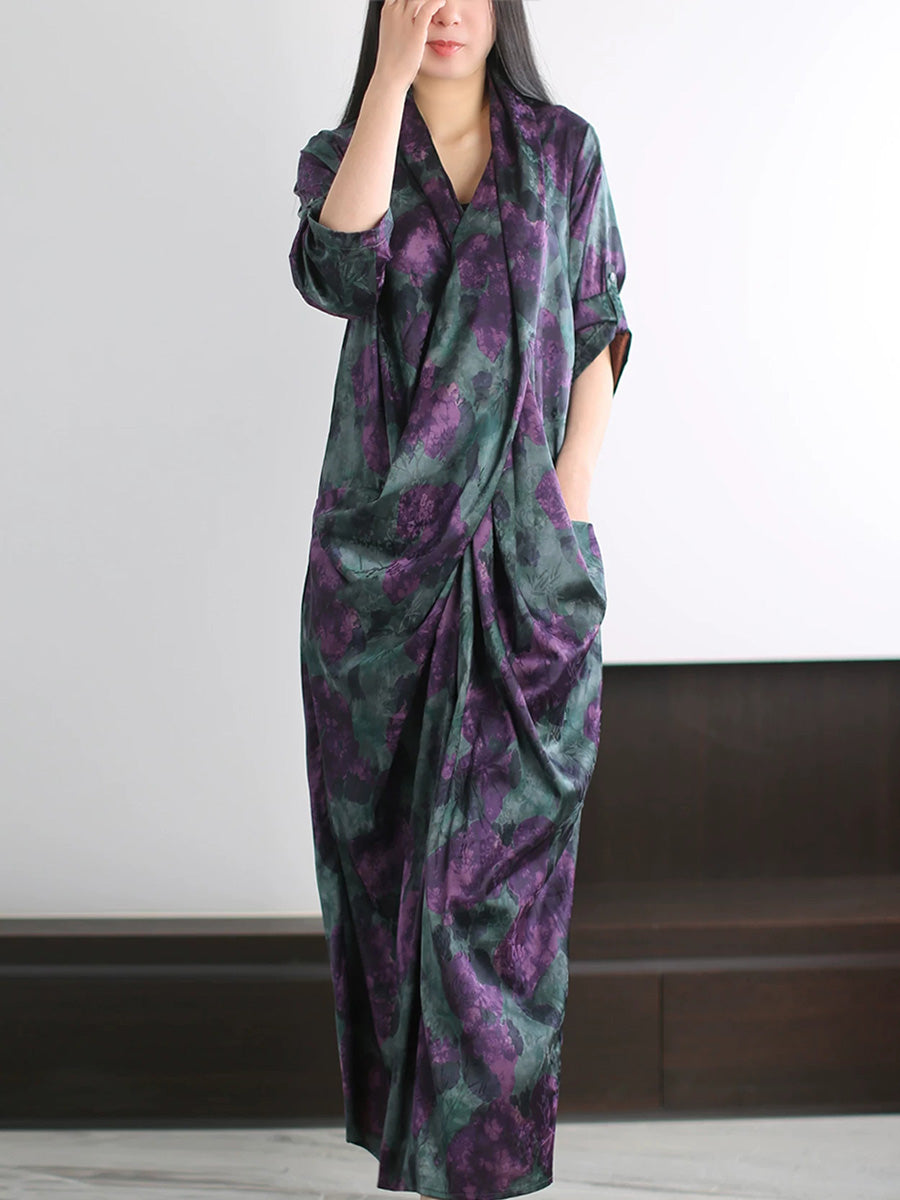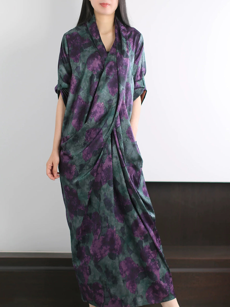 Women Summer Artsy Flower Spliced V-Neck Dress