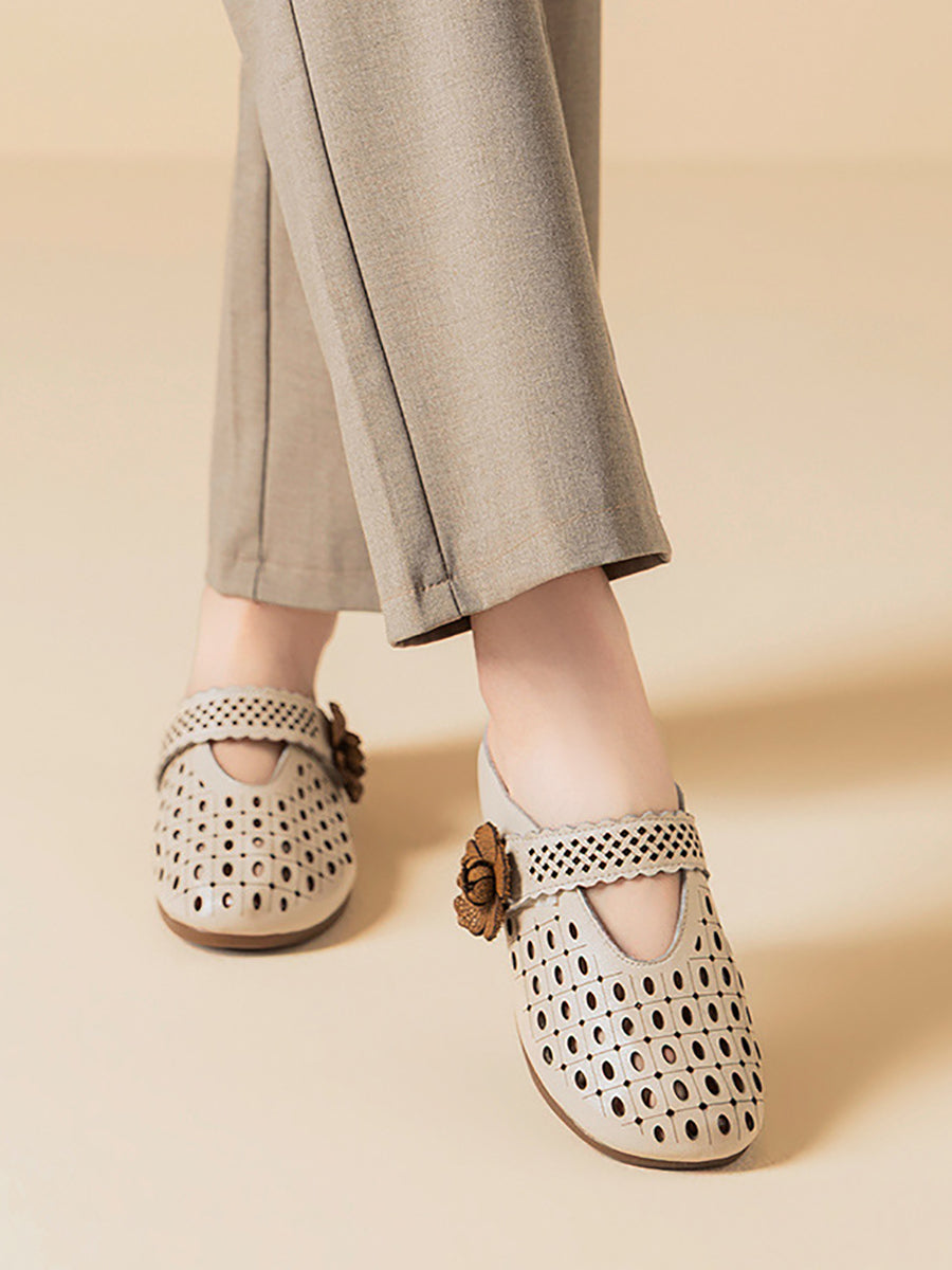Women Summer Artsy Leather Flower Slippers
