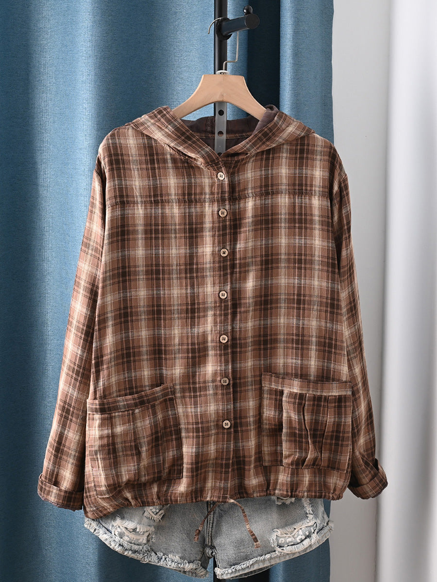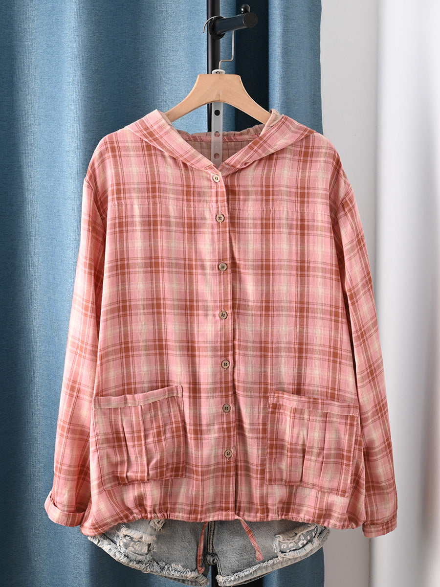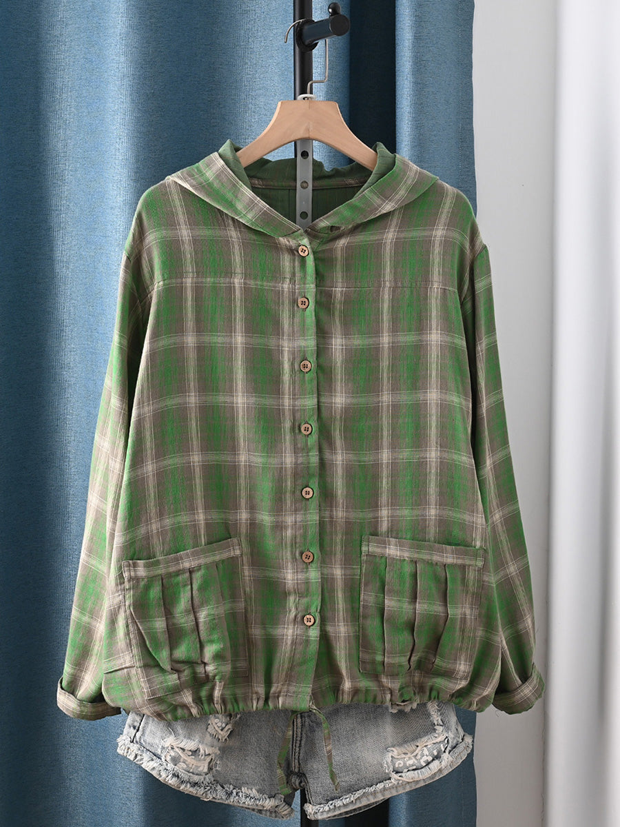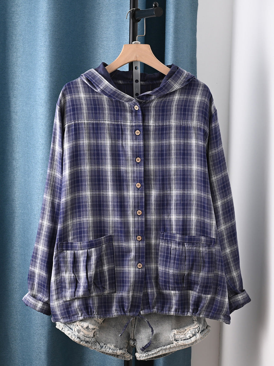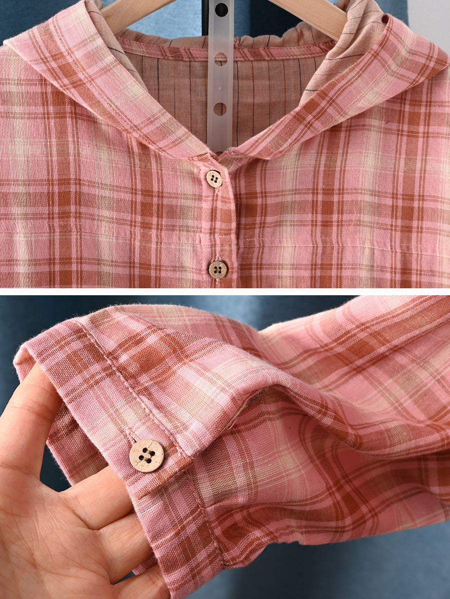 Women Summer Artsy Plaid 100%Cotton Hoodie