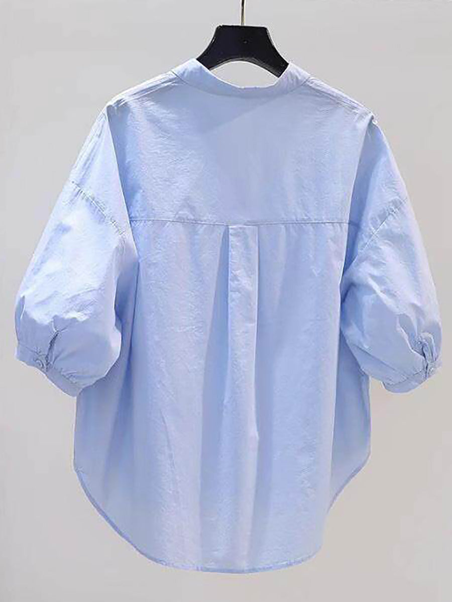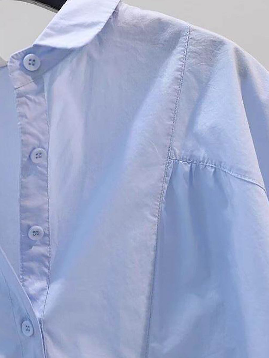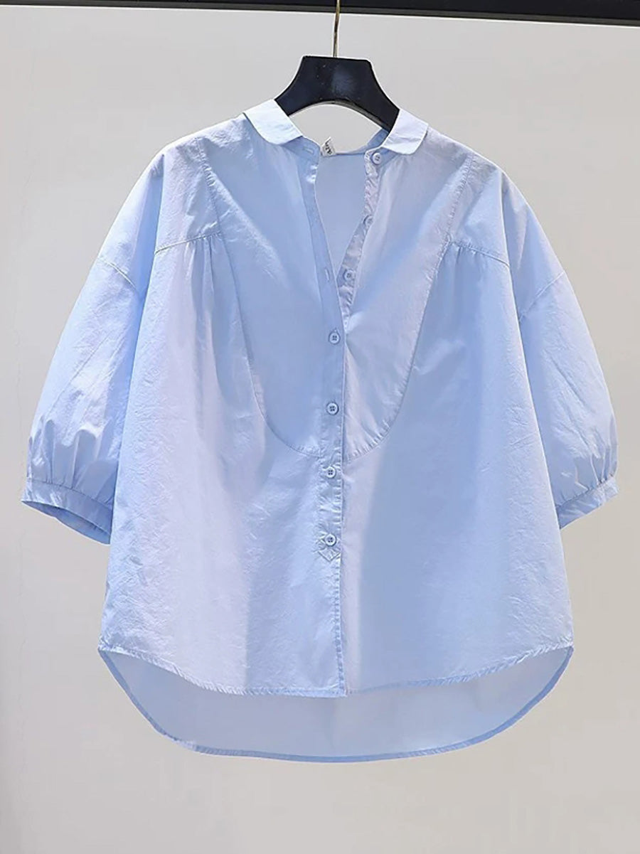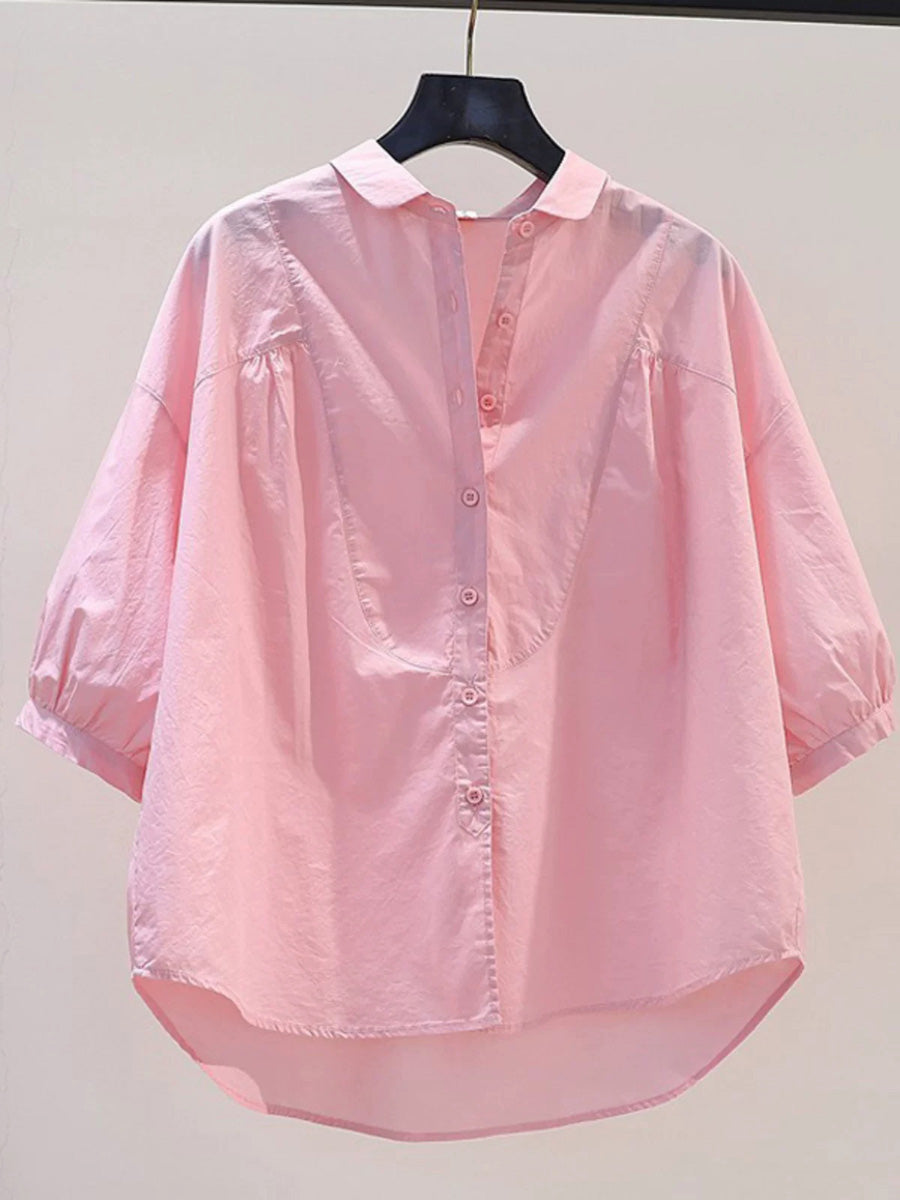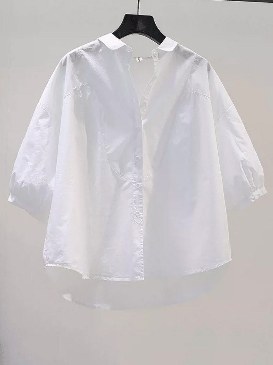 Women Summer Artsy Pure Color 100%Cotton Shirt