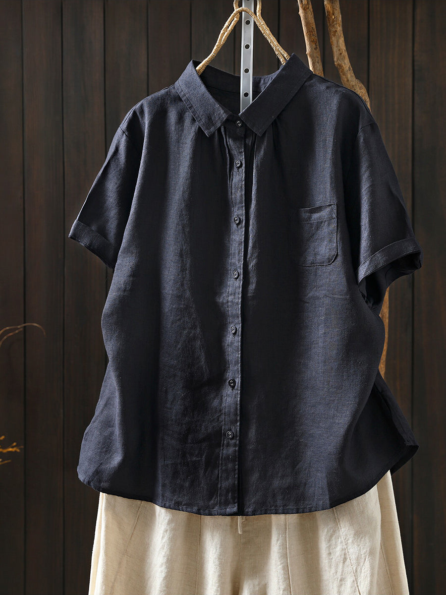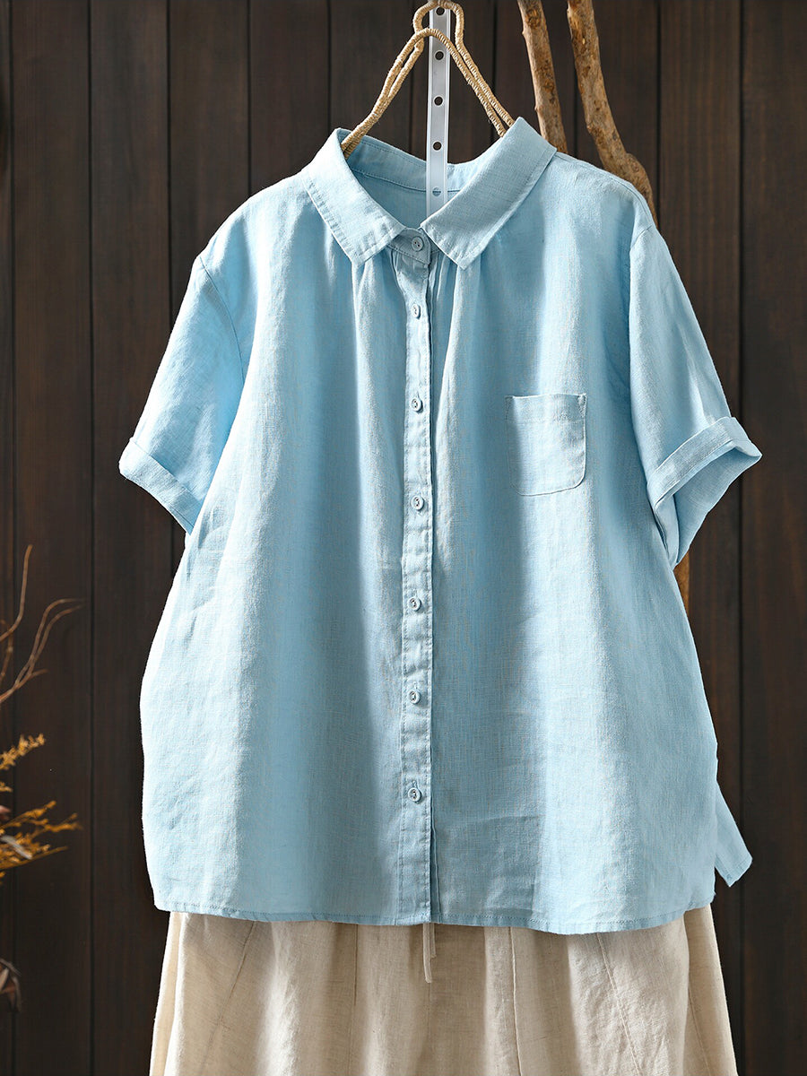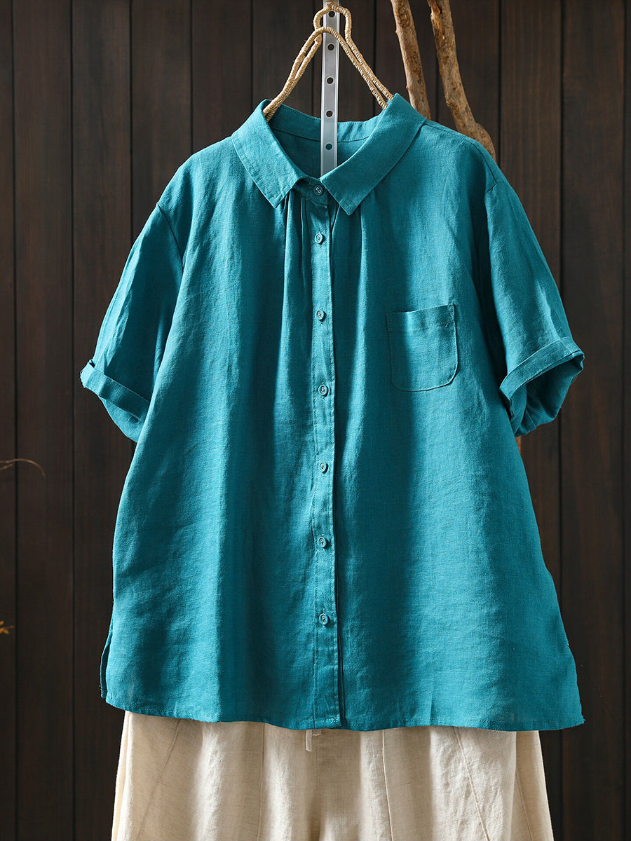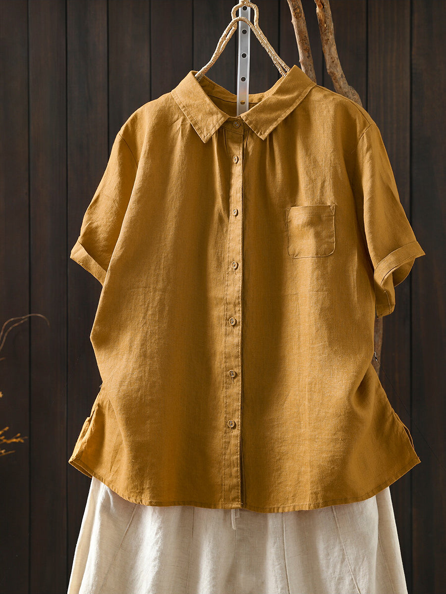 Women Summer Artsy Pure Color 100%Linen Shirt