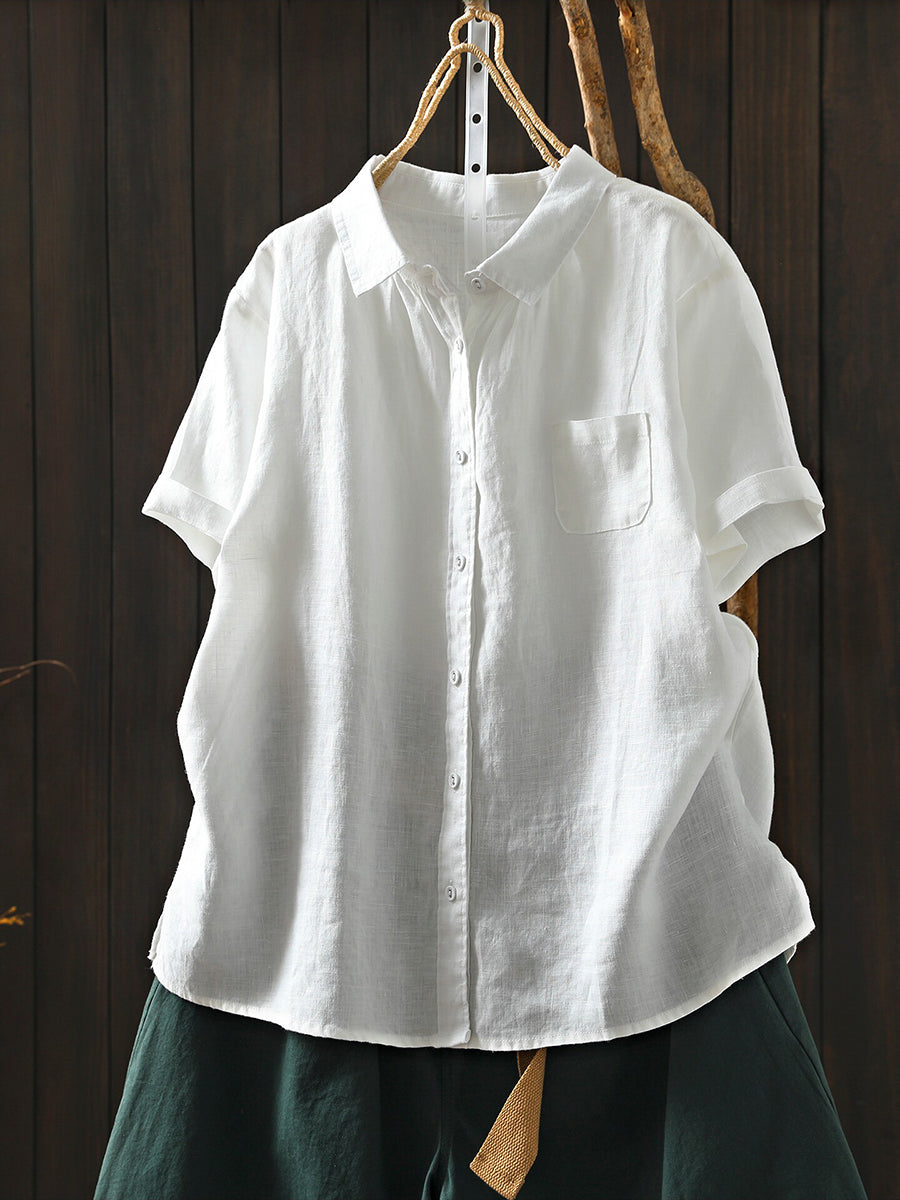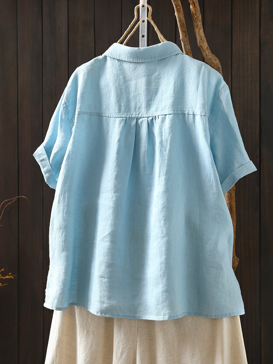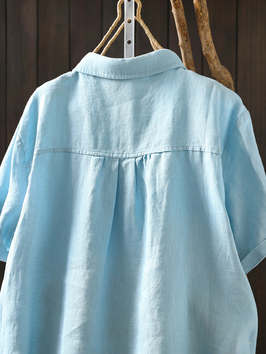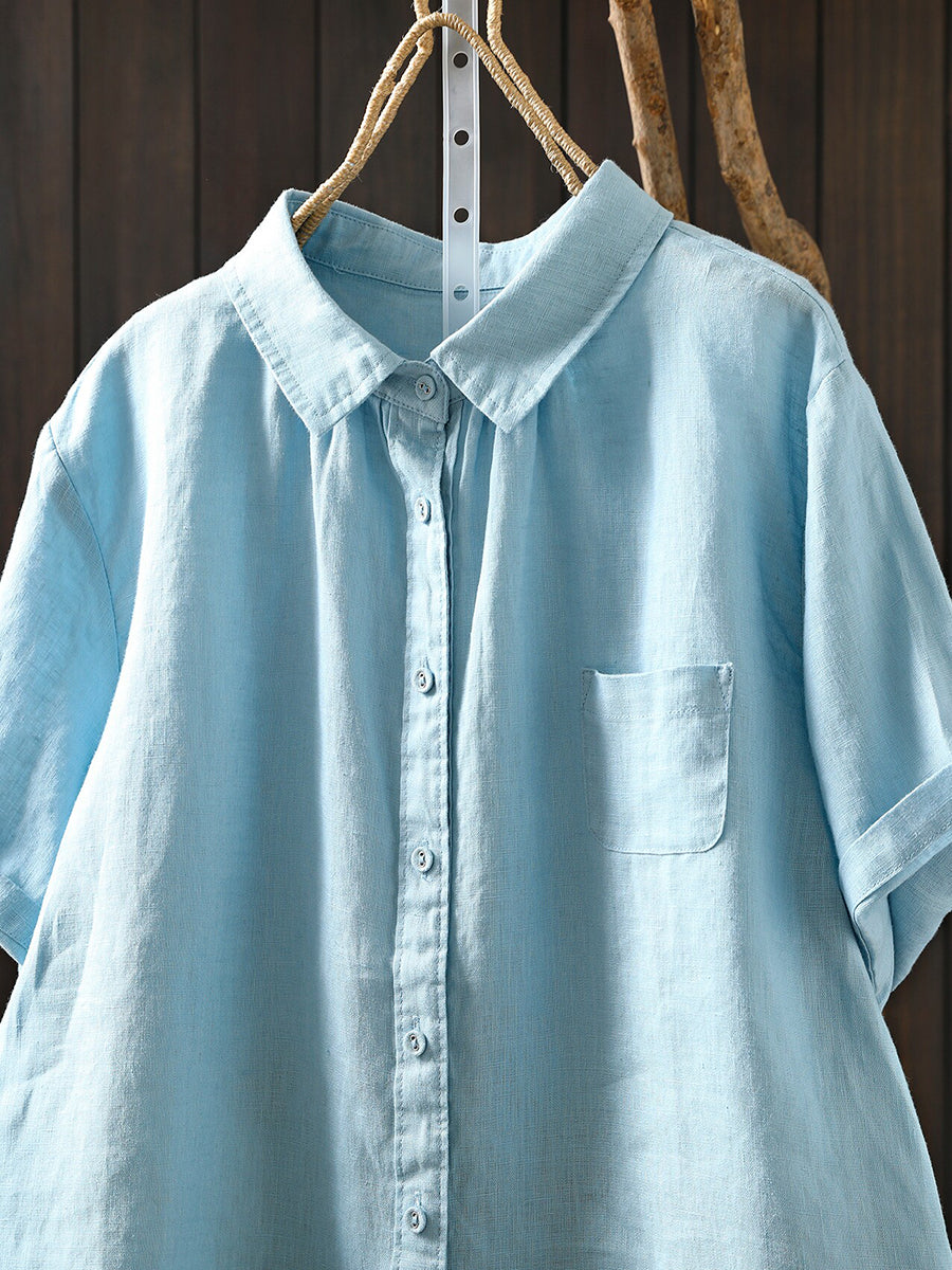 Women Summer Artsy Pure Color 100%Linen Shirt