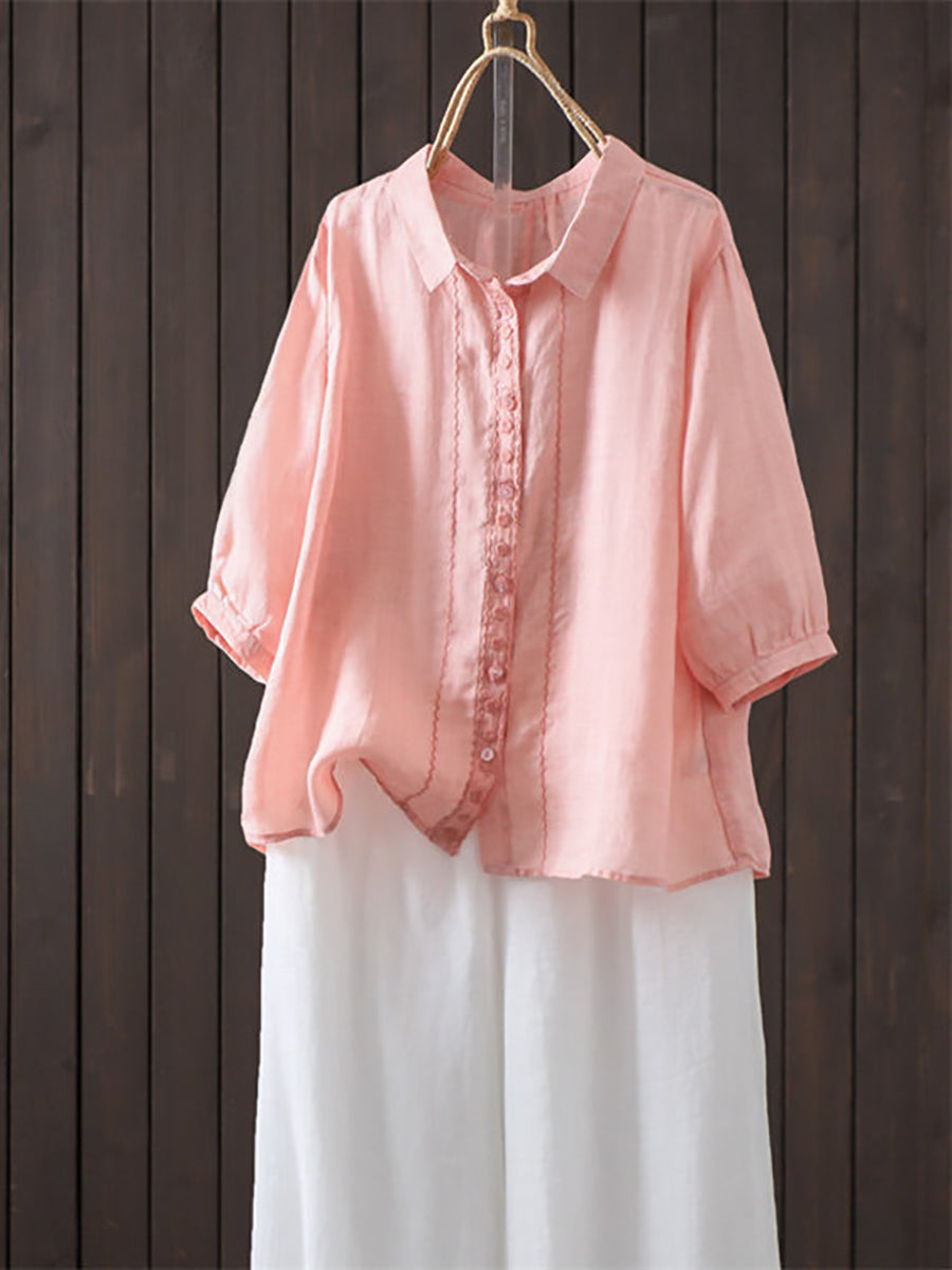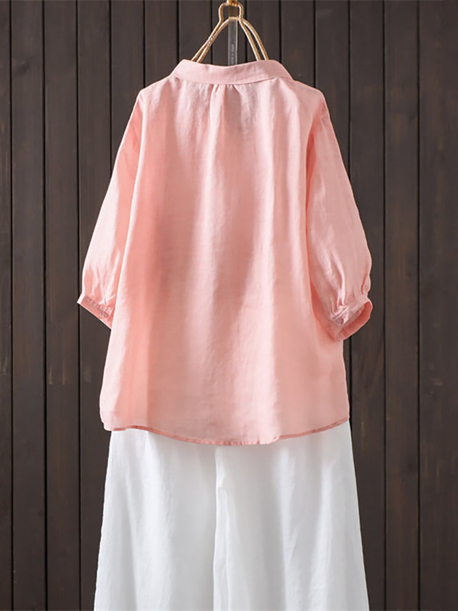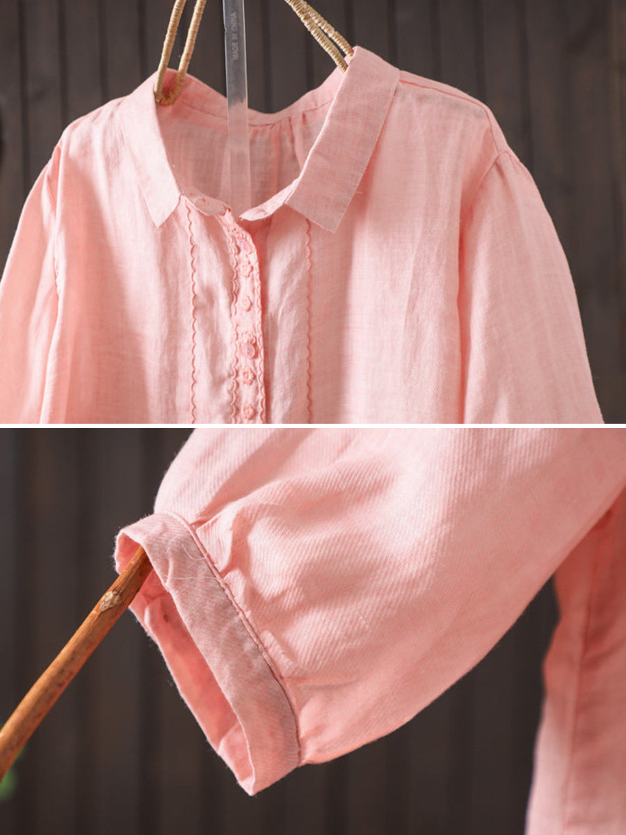 Women Summer Artsy Pure Color 100%Ramie Shirt