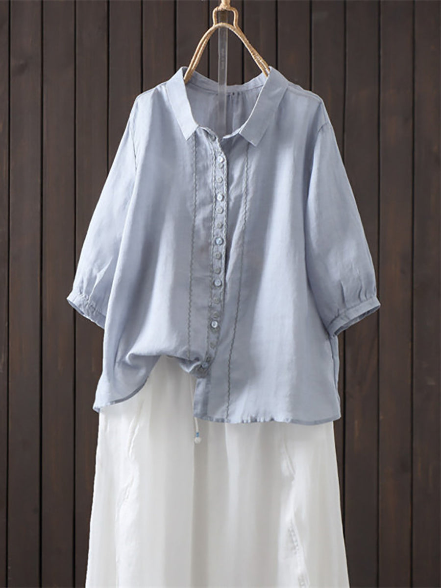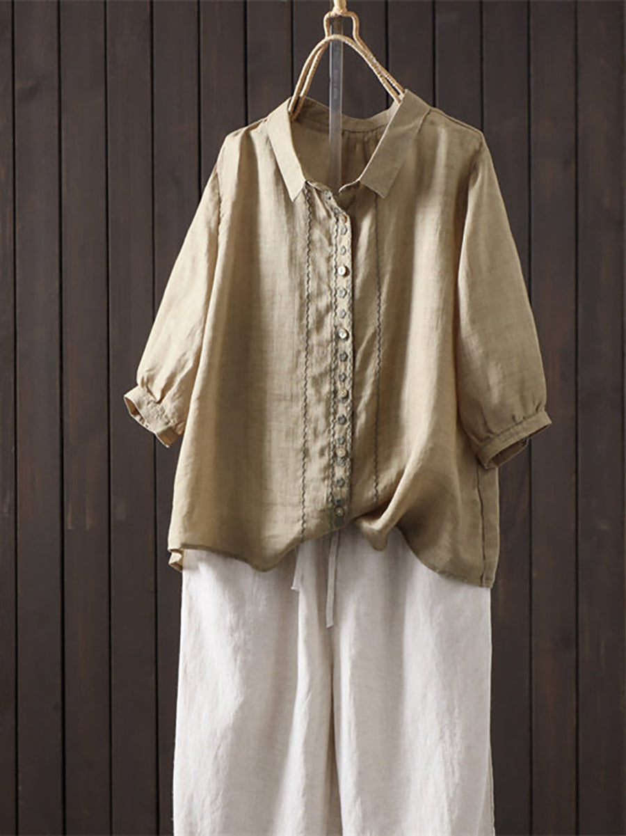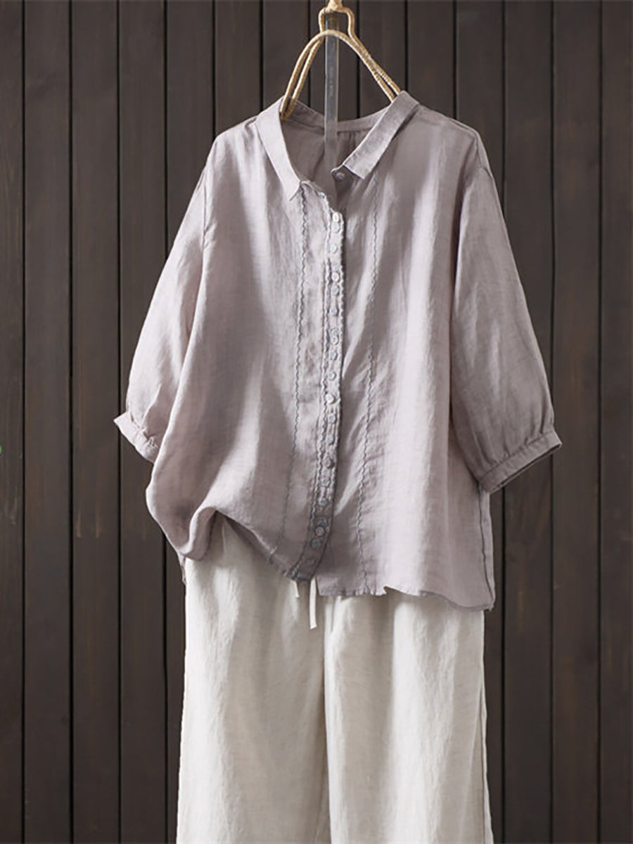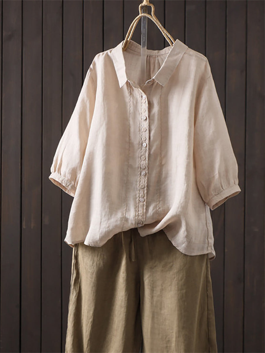 Women Summer Artsy Pure Color 100%Ramie Shirt