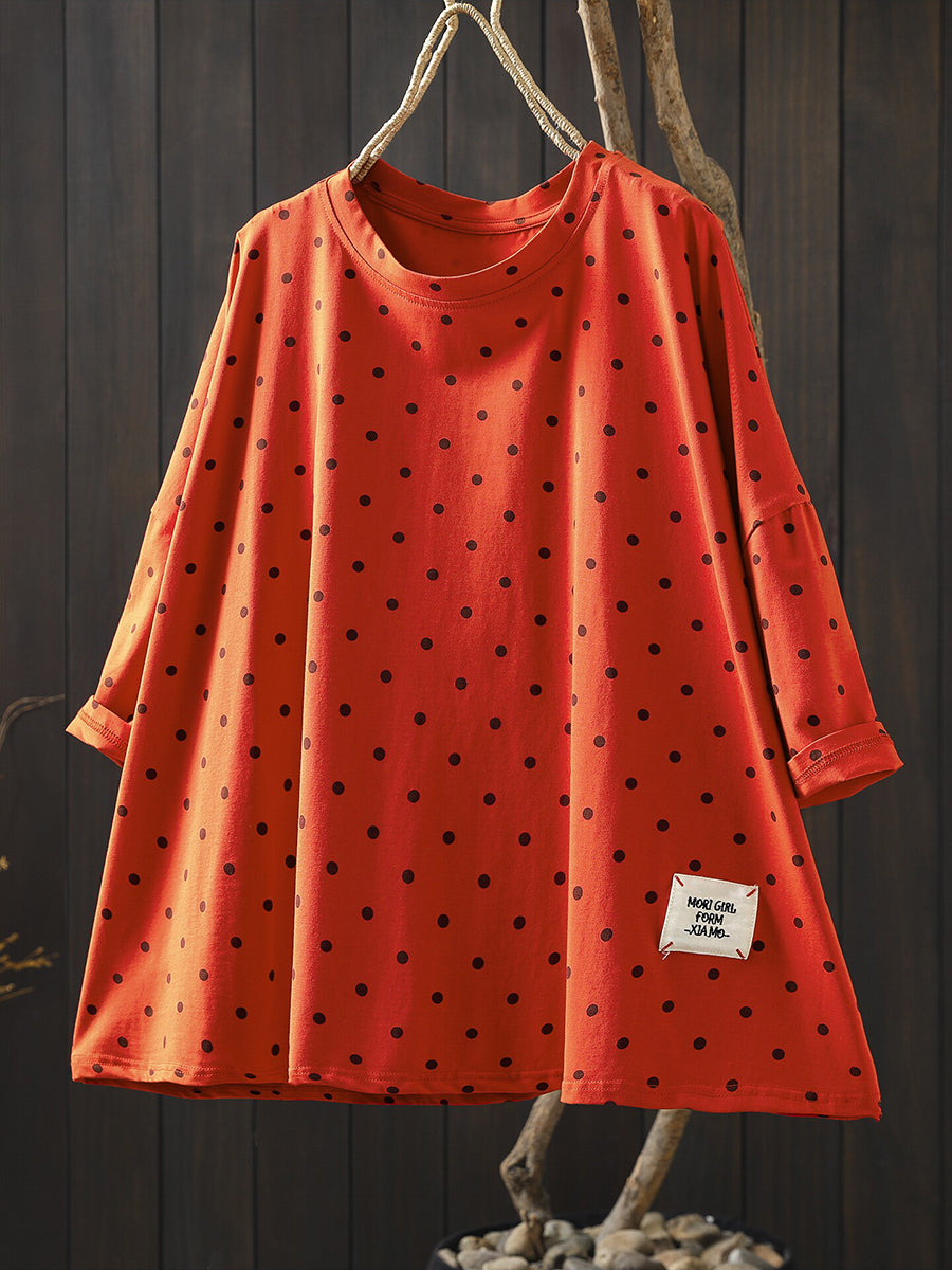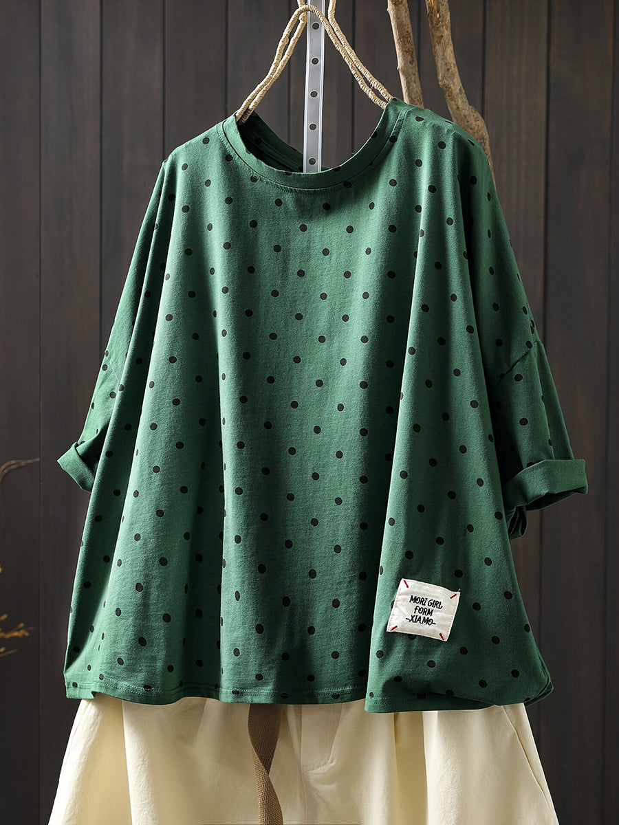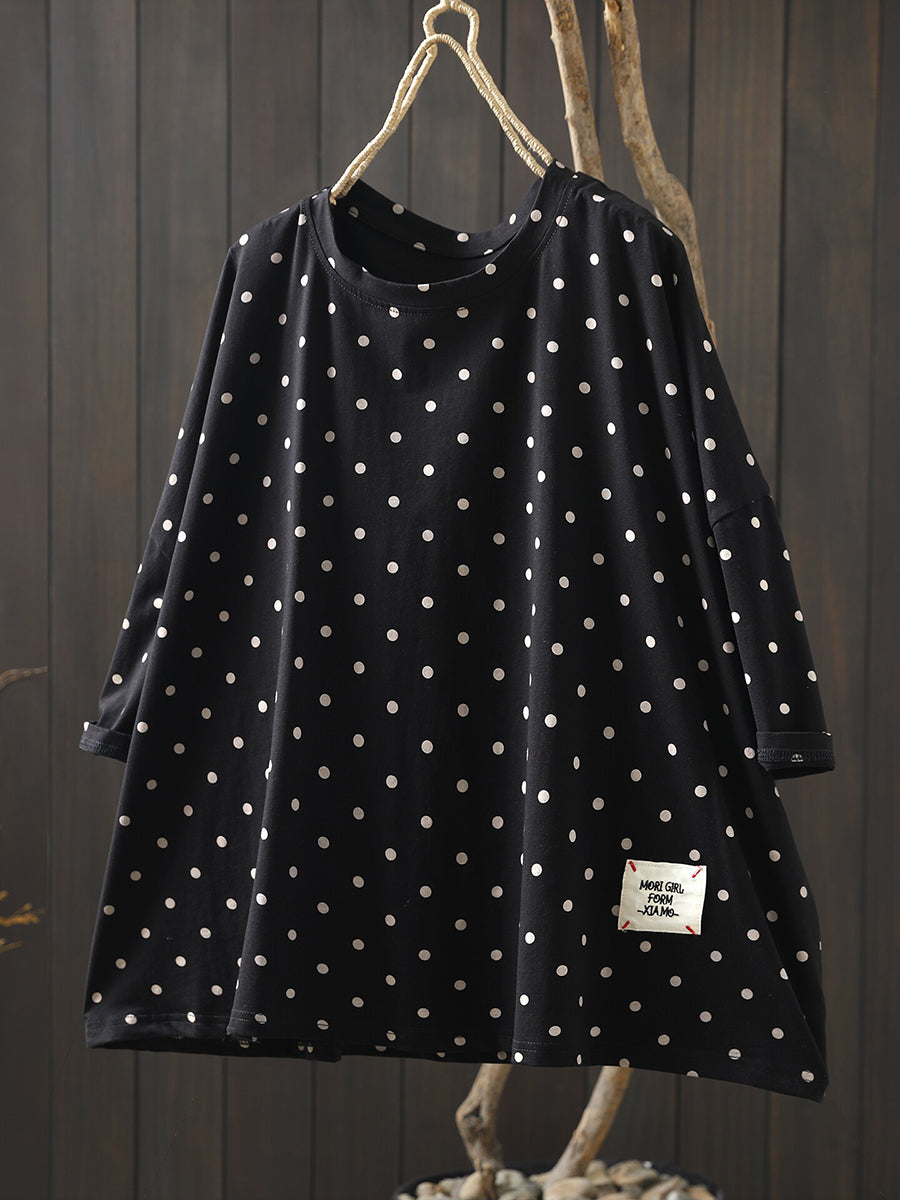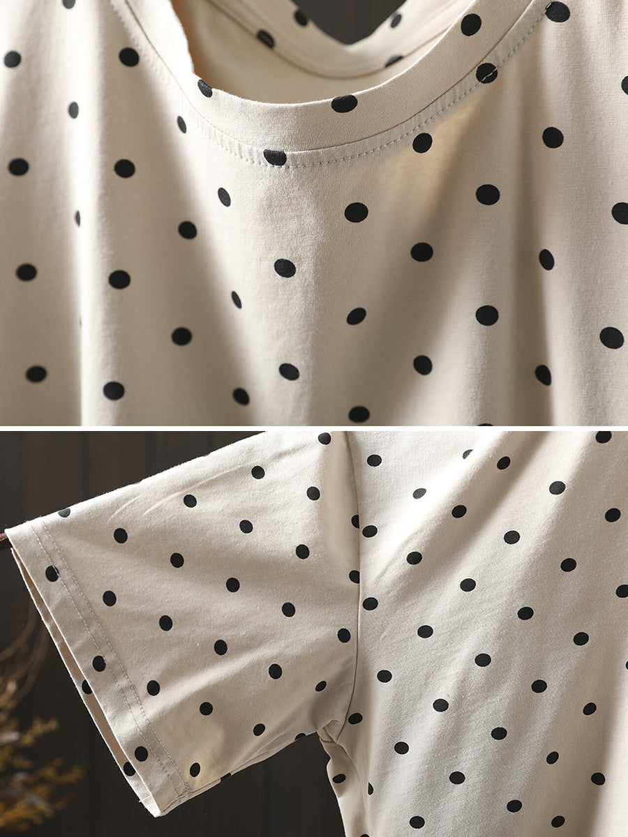 Women Summer Casual Dot Cotton O-Neck Blouse