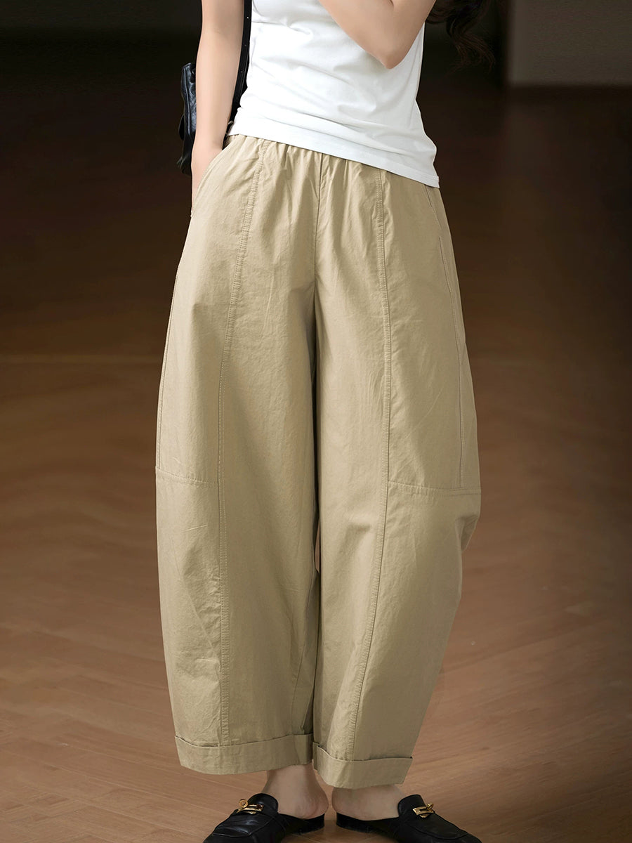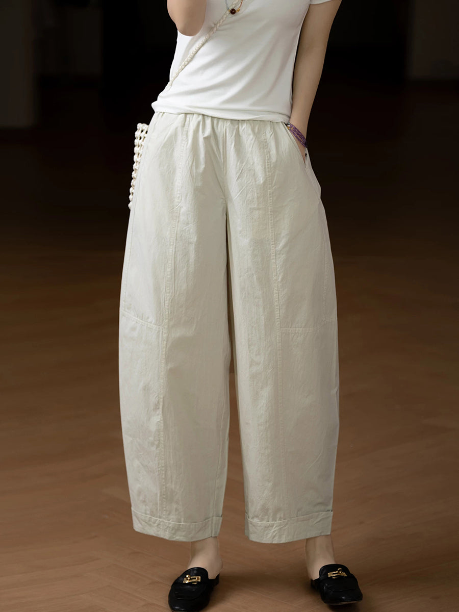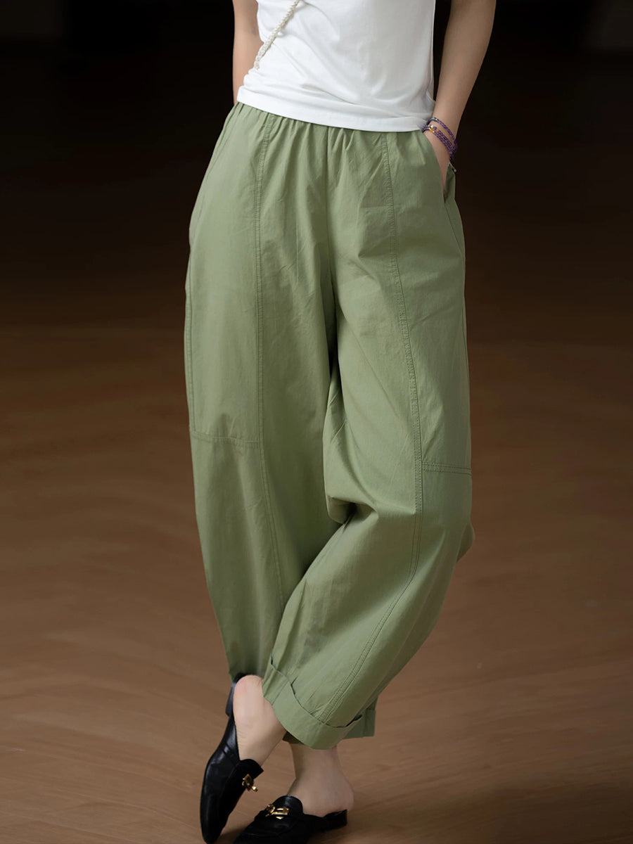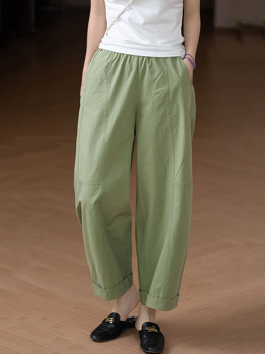 Women Summer Casual Pure Color 100%Cotton Harem Pants