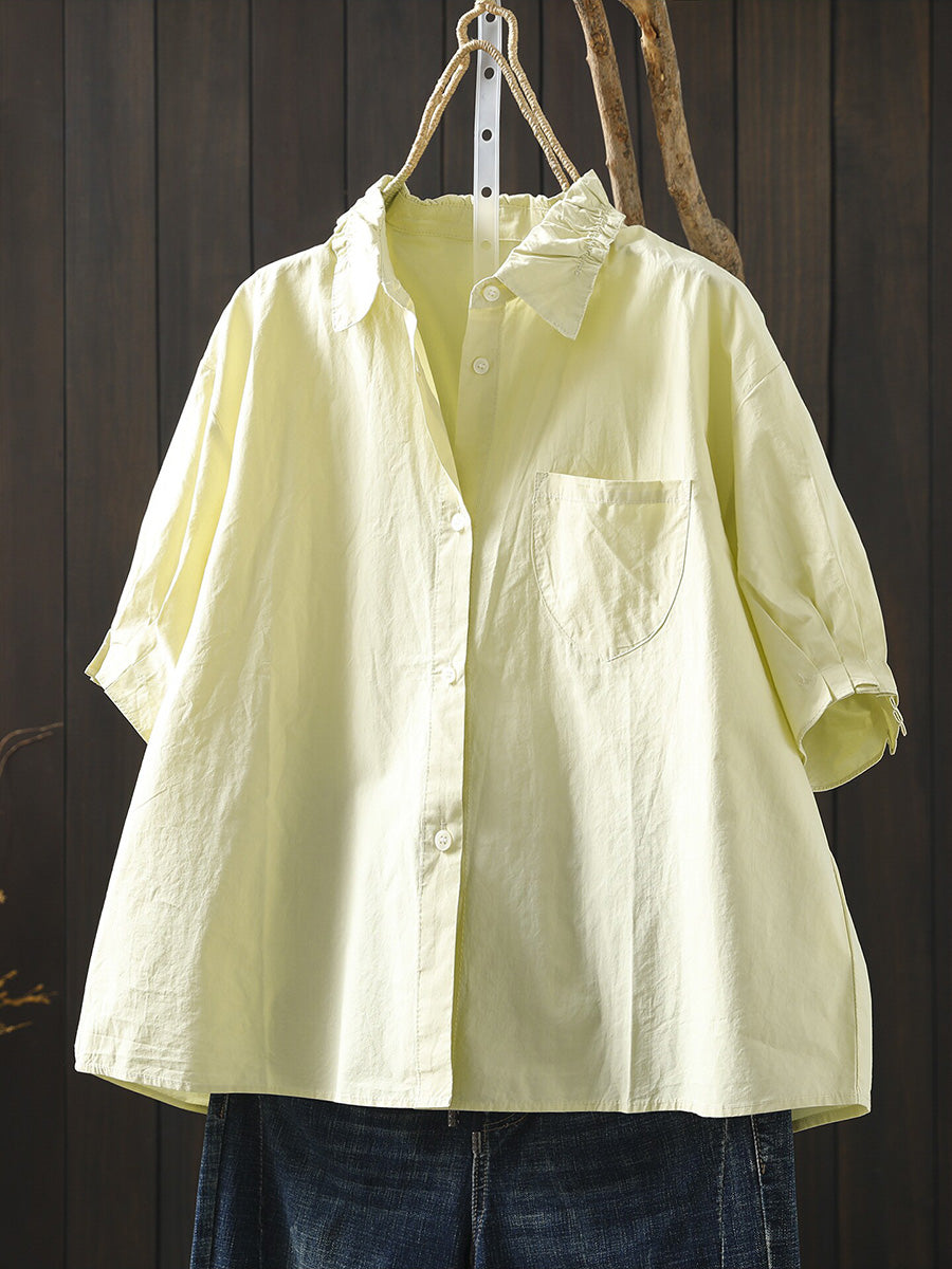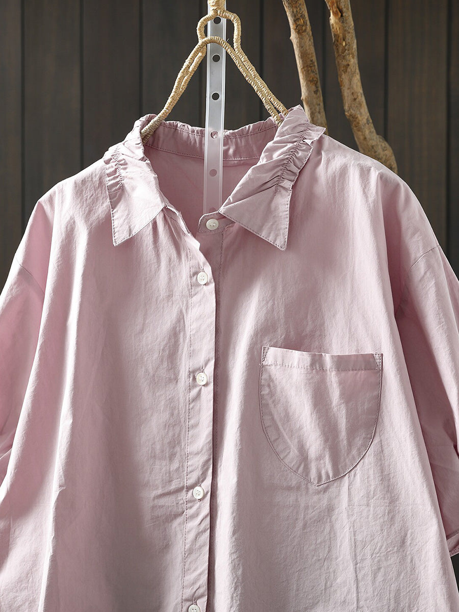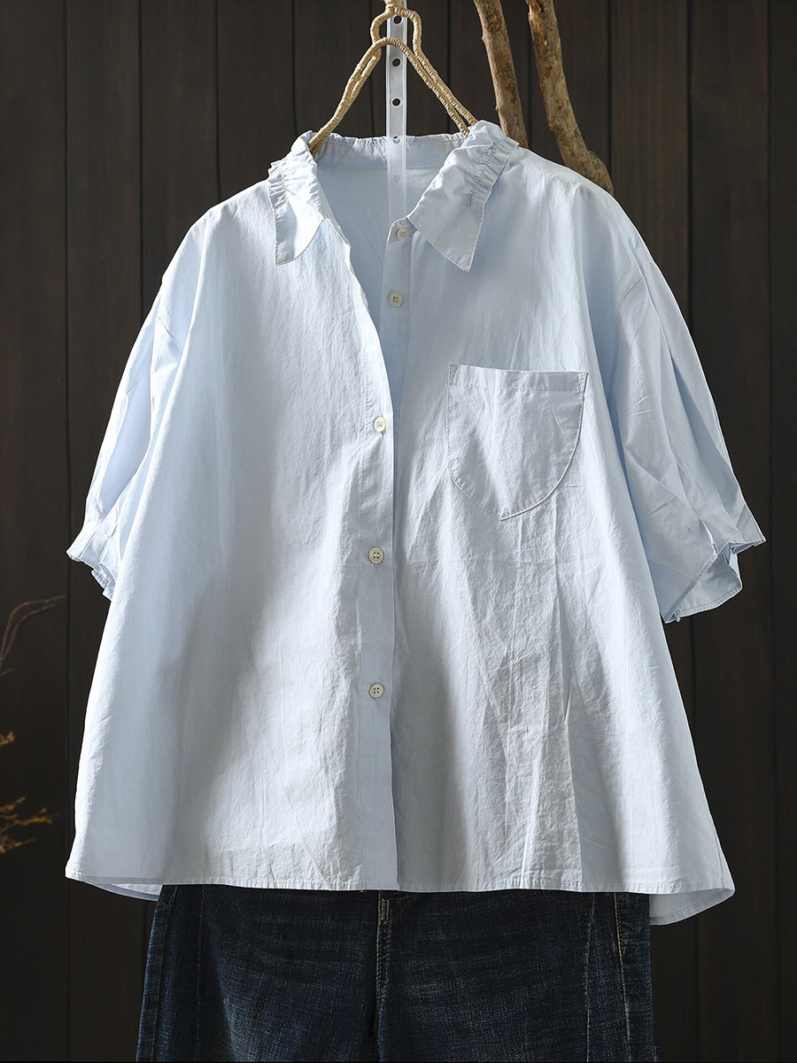 Women Summer Casual Pure Color 100%Cotton Shirt