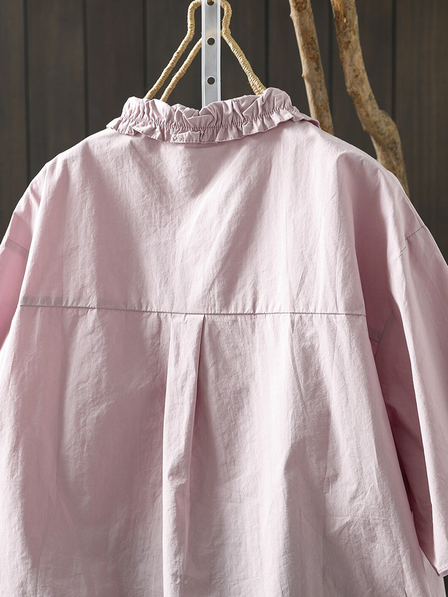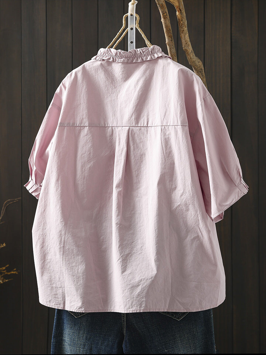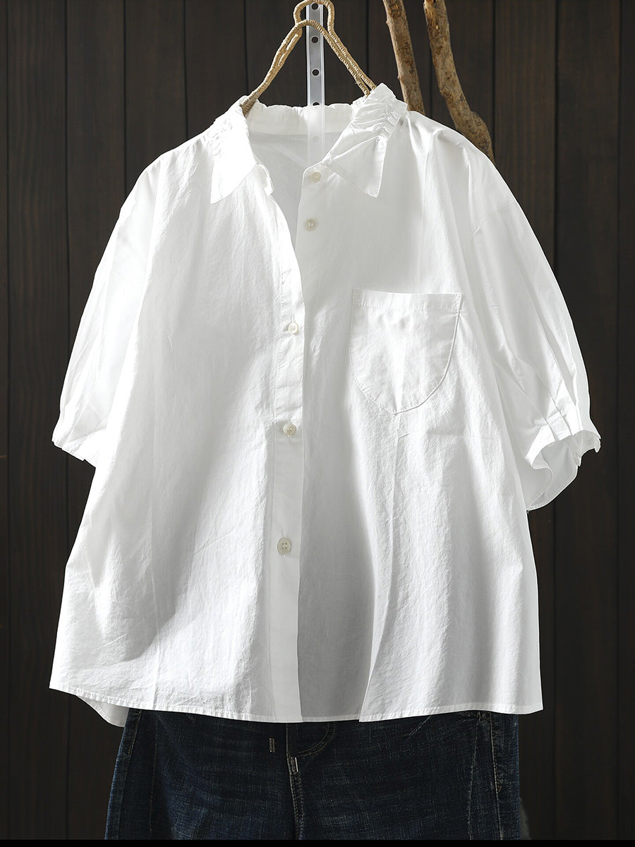Women Summer Casual Pure Color 100%Cotton Shirt