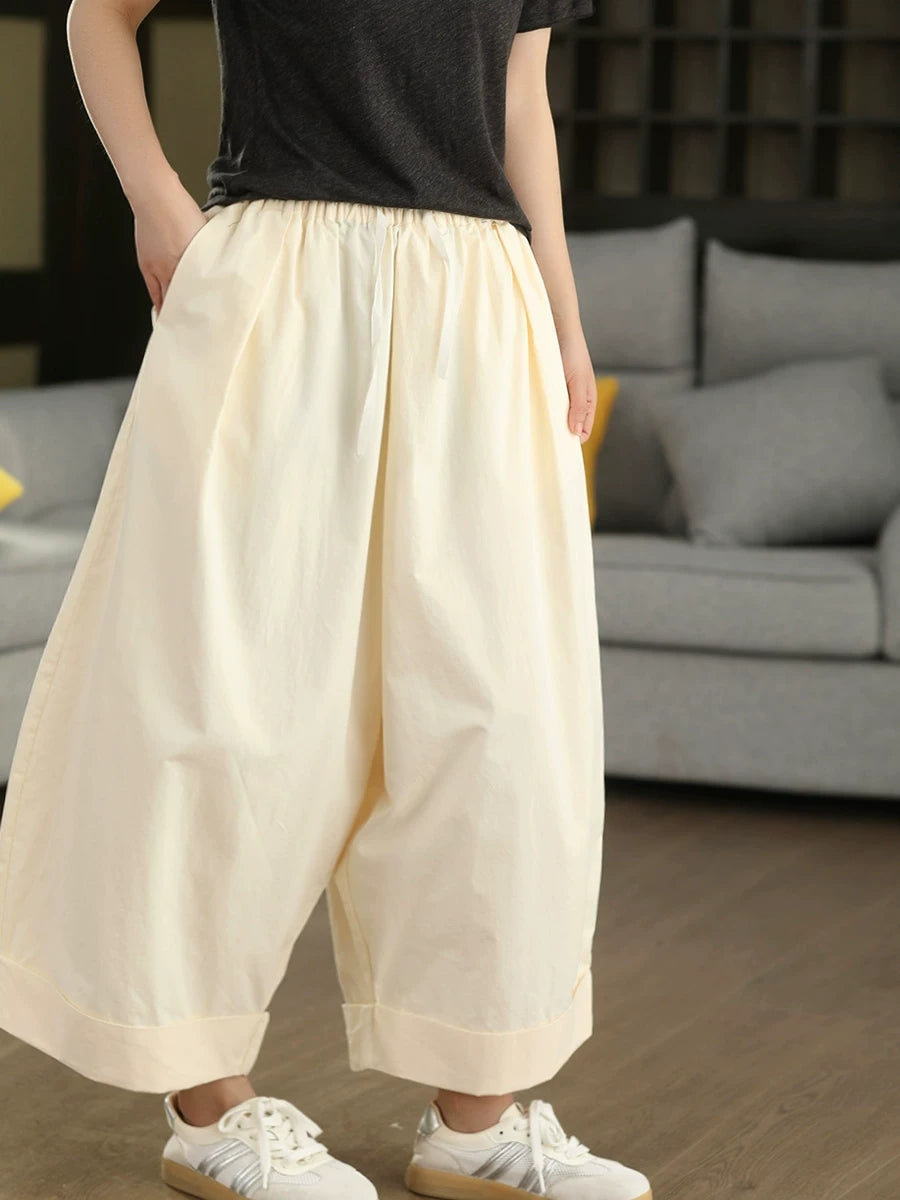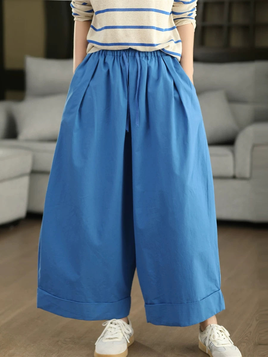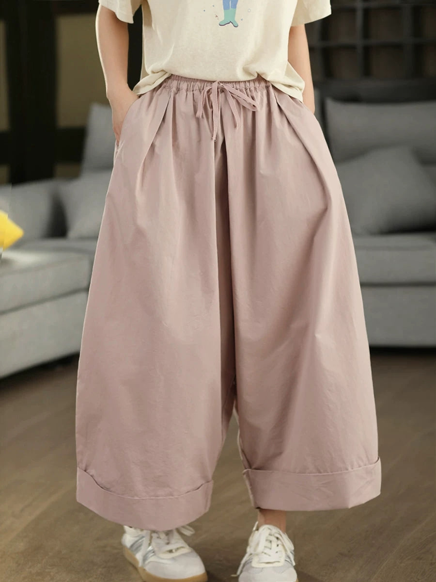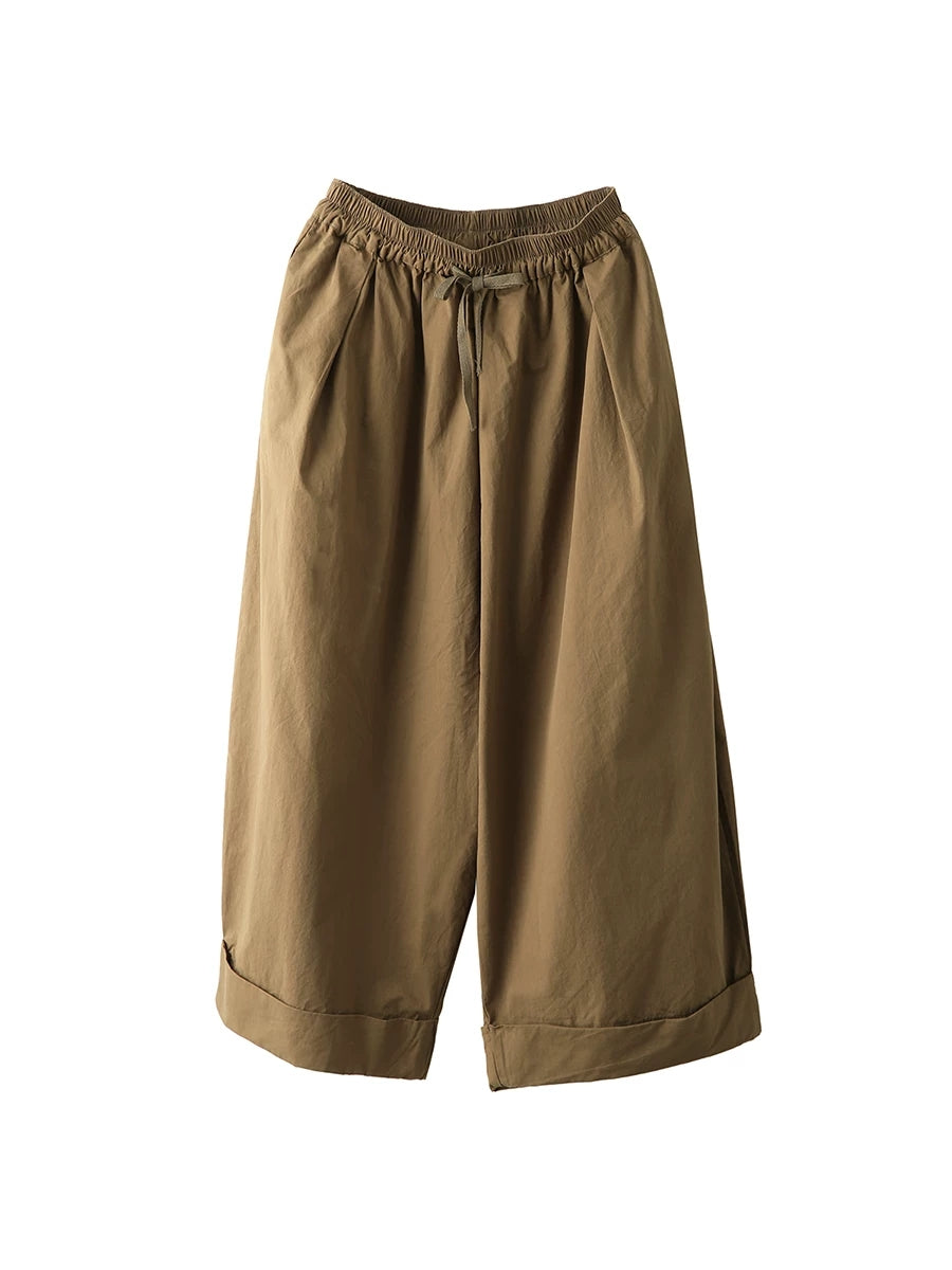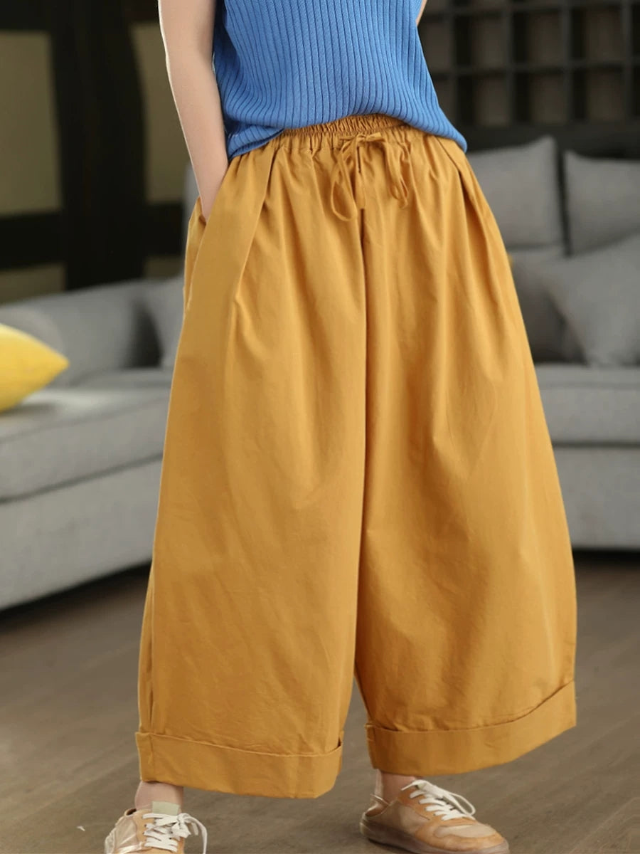 Women Summer Casual Pure Color 100%Cotton Wide-leg Pants