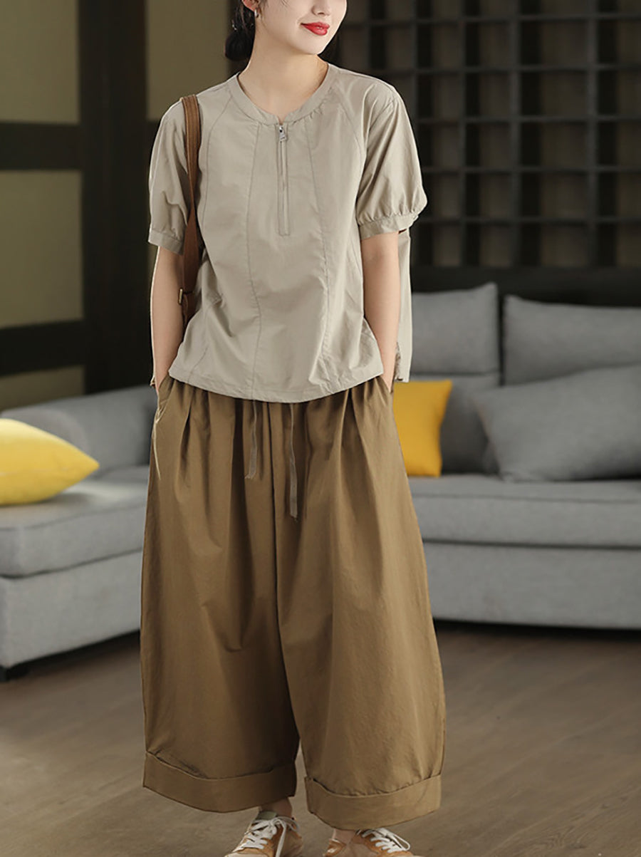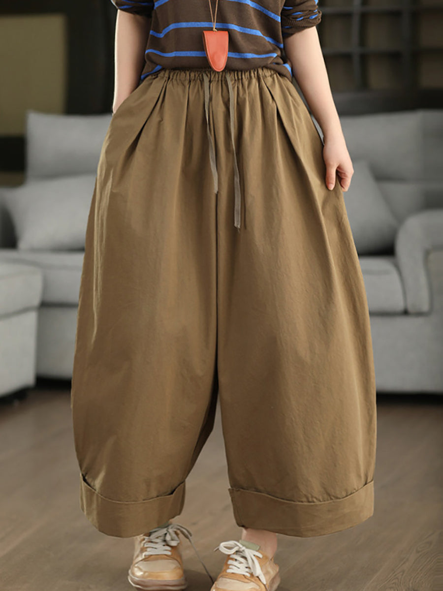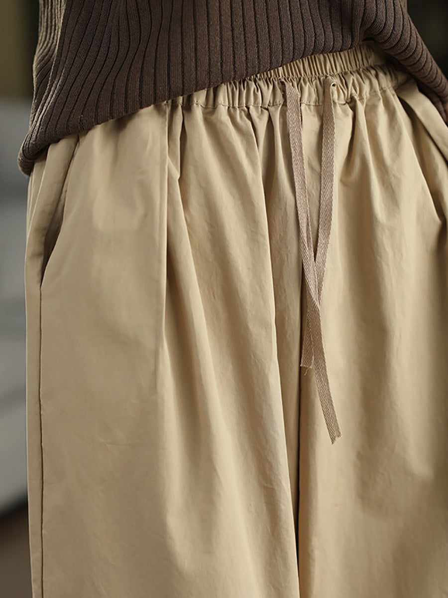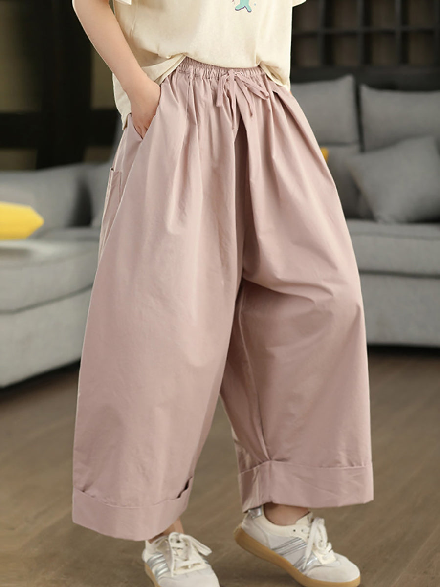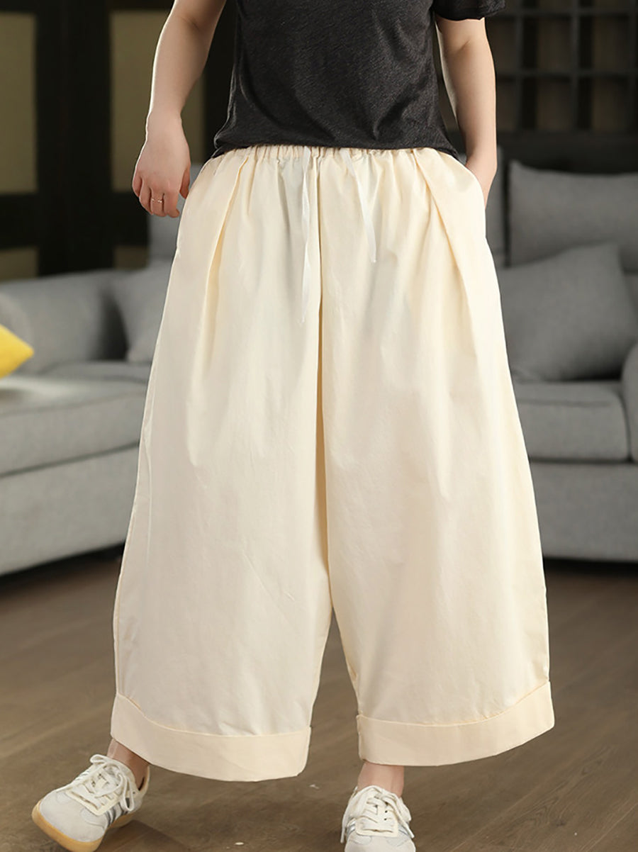 Women Summer Casual Pure Color 100%Cotton Wide-leg Pants