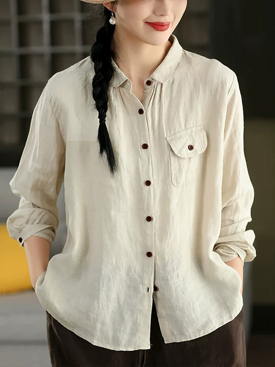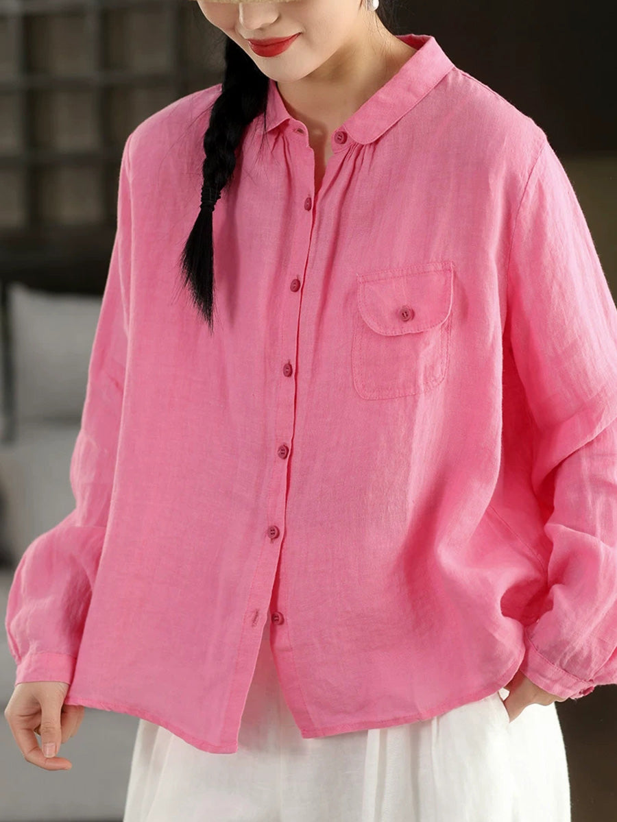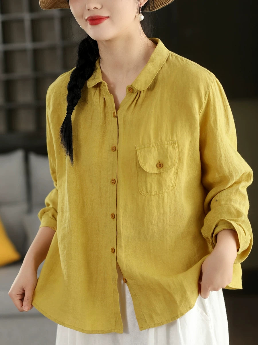 Women Summer Casual Pure Color 100%Linen Shirt