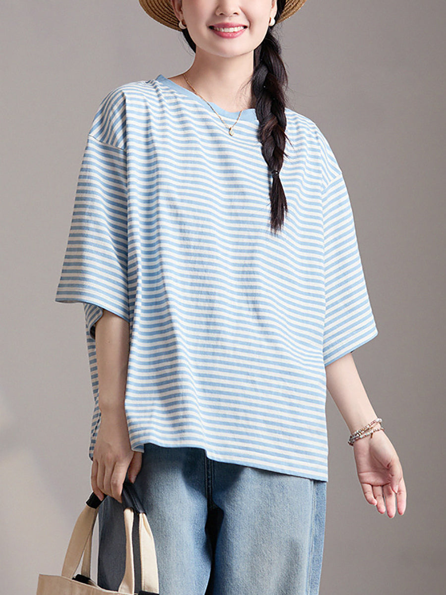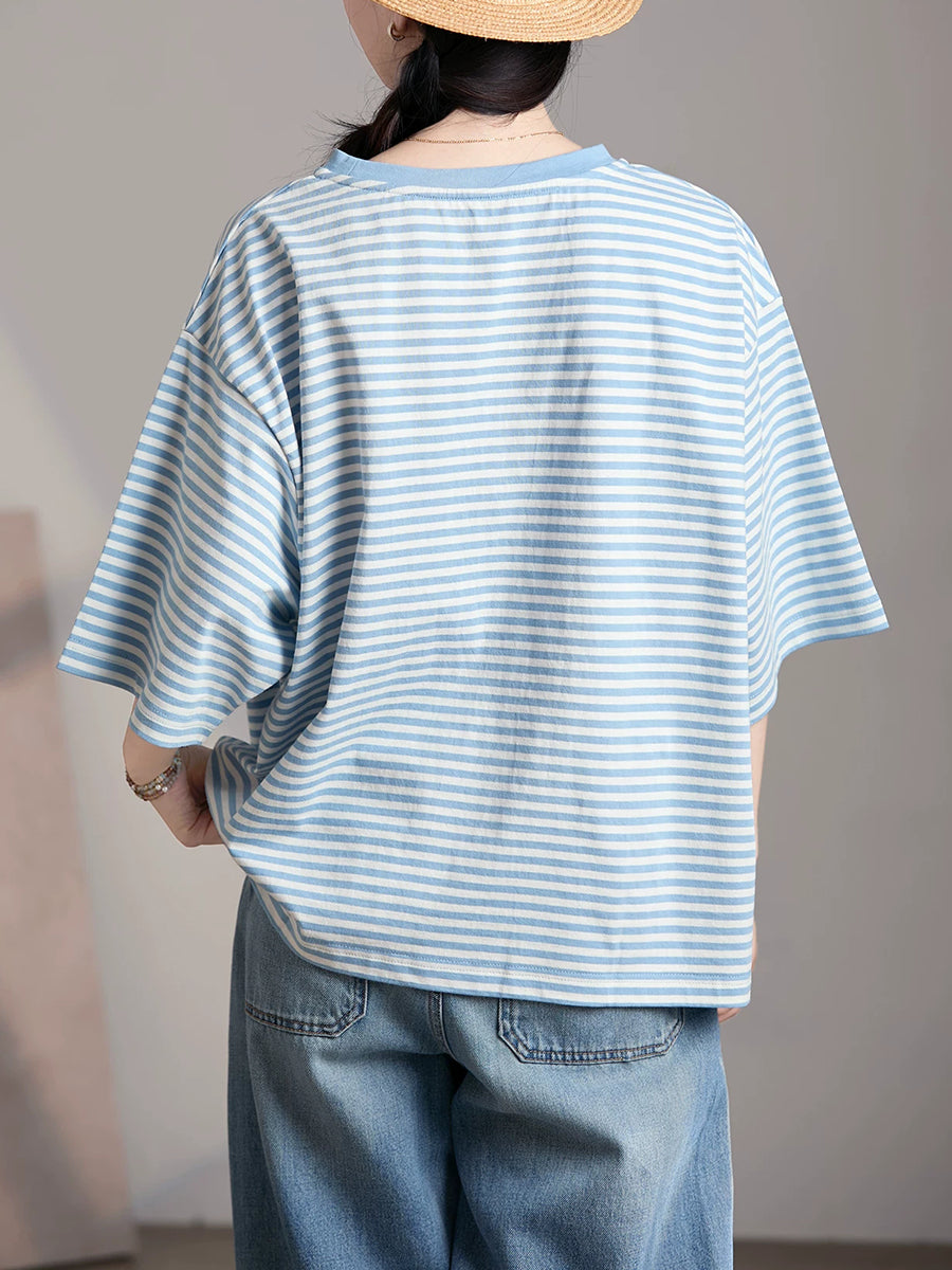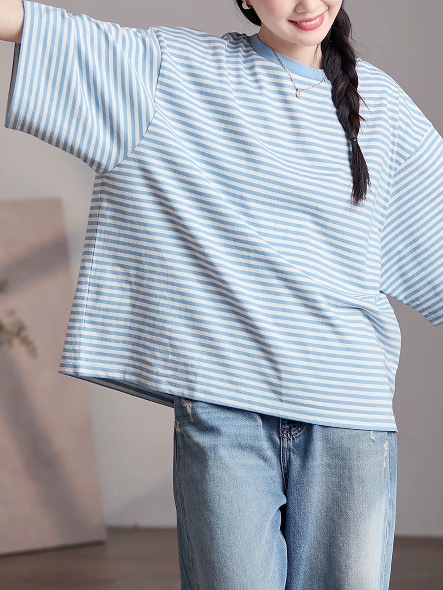 Women Summer Casual Stripe 100%Cotton T-Shirt