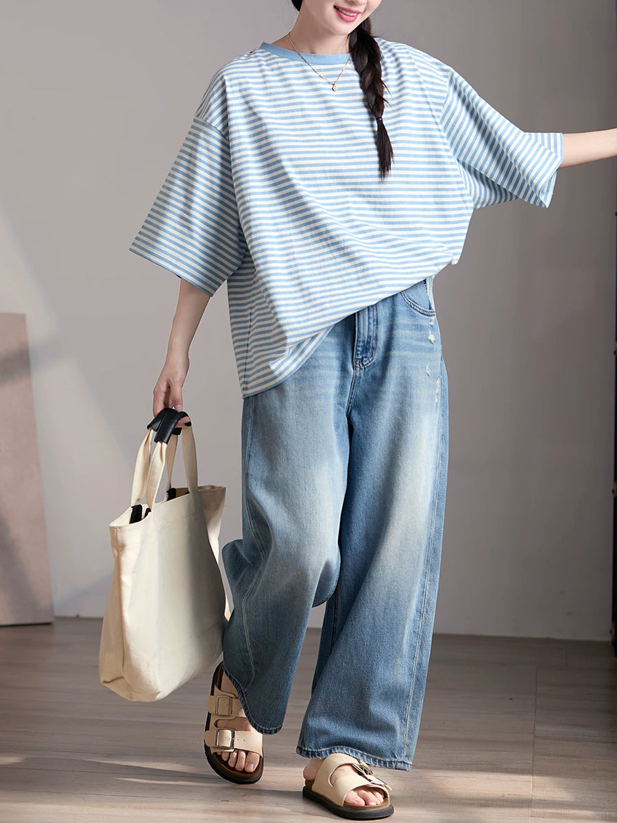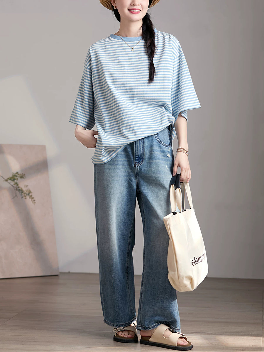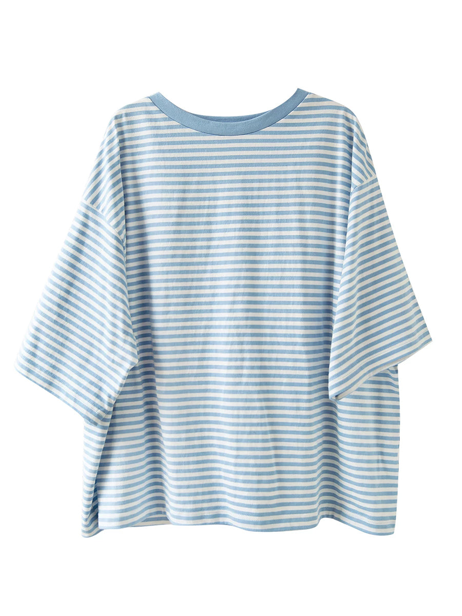 Women Summer Casual Stripe 100%Cotton T-Shirt